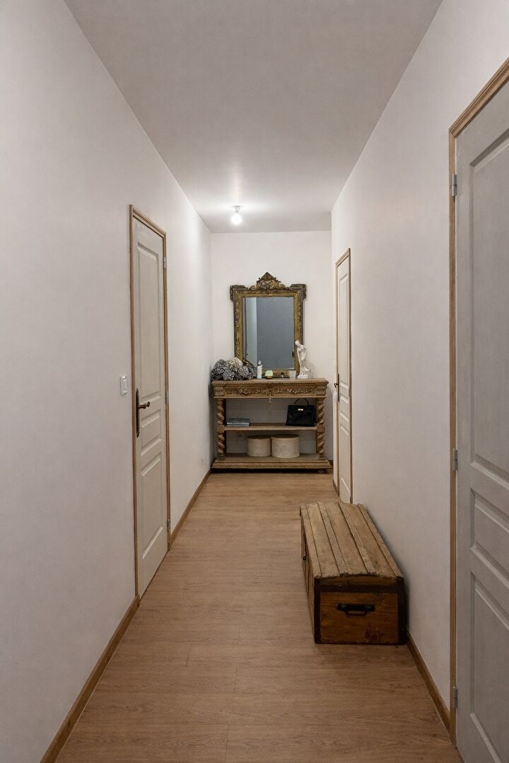 Bienvenue au Theil, dans un environnement rural préservé, au calme et sans vis-à-vis, cette propriété indépendante se distingue par un ensemble rare : maison en excellent état à partir d'une grange entièrement rénovée en 2023 et 24, dépendances et fort potentiel d'agrandissement, le tout sur un terrain de 4 600 m². Cadre de vie La commune du Theil offre un cadre naturel recherché, propice à une vie paisible tout en restant accessible. Ici, l'espace, la tranquillité et la qualité de vie priment. L'absence de mitoyenneté et la configuration de la parcelle renforcent le sentiment de liberté. Nous sommes en présence d'une habitation avec grange entièrement rénovée, développant 102,6 m² habitables pour 182 m² construits, implantée sur un terrain arboré de 4 600 m². Elle propose 4 pièces confortables, dont 3 chambres, un double séjour lumineux de 40,16 m² exposé Sud-Est, une cuisine équipée, 1 salle d'eau et 1 WC, un 2nd WC étant prévu au 1er étage. Dès l'arrivée, l'architecture affirme son identité : volumes francs, lignes simples, toiture neuve, proportions équilibrées. A l'intérieur, le coup de coeur opère immédiatement, porté par la qualité des finitions et un agencement fluide qui donne du sens à chaque espace. Le double séjour de plus de 40 m², constitue le coeur de la maison. Lumineux et convivial, il s'organise autour du poêle à bois, véritable point central de la vie quotidienne. La lumière naturelle et les volumes ouverts créent une atmosphère chaleureuse et immédiatement rassurante. La cuisine équipée s'intègre naturellement dans la continuité de l'espace de vie, favorisant les moments de partage. La salle d'eau, qui offre un receveur de plain-pied séparé de la pièce par une cloison ornée de métal, offre un cachet important à la pièce. Les trois chambres, situées à l'étage, bien proportionnées, offrent calme et intimité. Un couloir avec une ouverture prévue sur le haut de la grange, offre un potentiel agrandissement appréciable. L'un des grands atouts de cette grange rénovée réside dans son potentiel d'évolution. Le bâti intègre : - environ 75 m² de dépendances au sol, faisant partie intégrante de la construction. - environ 50 m² de surface aménageable ou plus, permettant d'envisager un agrandissement, un espace garage, un atelier ou un projet complémentaire, en cohérence avec l'existant. L'ensemble prend place sur une grande parcelle de 4 600 m², rare par sa superficie, sans vis-à-vis important, offrant de multiples possibilités d'aménagements extérieurs, dans un environnement naturel préservé. Sur le plan technique, la rénovation s'est concentrée sur les fondamentaux, gages de sérénité : - toiture neuve - électricité et plomberie neuves - assainissement individuel neuf et conforme ? fosse toutes eaux 2023 - isolation par les murs et la toiture - menuiseries PVC et hybride aluminium, Velux occultant à l'étage. - chauffage poêle à bois complété par climatiseur réversible (chauffage) programmable à distance. Ces choix de rénovation cohérente, finalisés entre 2023 et 2024 se traduisent par un DPE classé C et GES A, un classement très favorable pour une grange rénovée, avec des dépenses énergétiques estimées entre 1 080 euros et 1 520 euros par an. Quelques finitions extérieures telles que la façade ou une terrasse aménagée, ainsi qu'une porte de grange, restent à prévoir, laissant à l'acquéreur la liberté de personnaliser l'esthétique finale sans remettre en cause la qualité structurelle ni le confort intérieur. Ce qu'on en pense chez IMMOZAP Une grange rénovée comme on les aime : saine, cohérente, performante et encore évolutive. Un bien de caractère, rare sur le secteur, qui déclenchera des coups de coeur, conjuguant cachet, confort et potentiel pour un projet de vie durable au Theil à proximité de Saint-Pourçain-sur-Sioule.