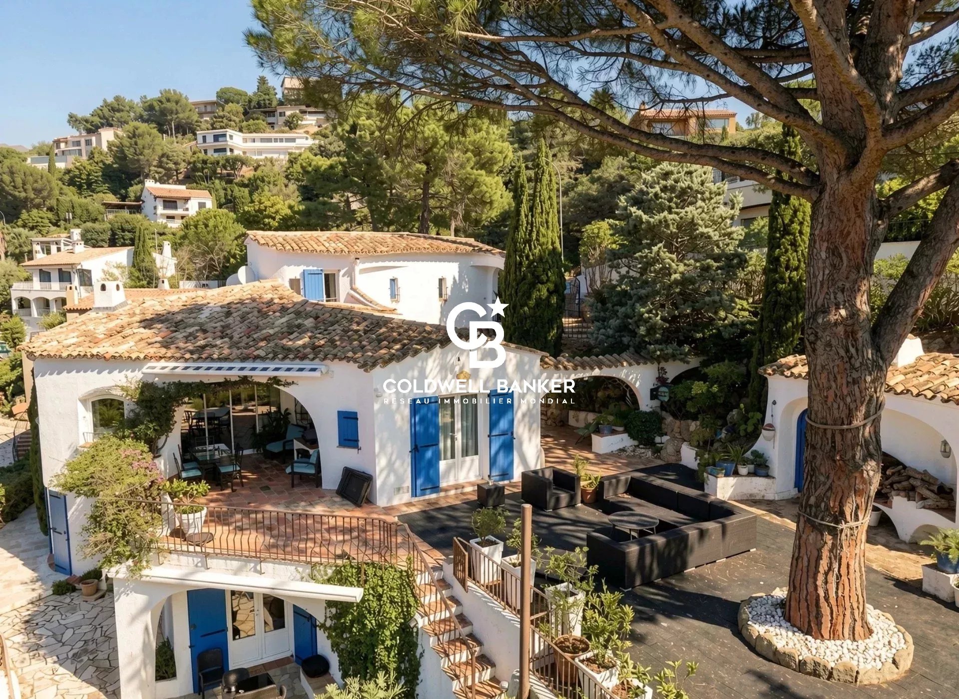 Les Issambres - Vue Mer Construite en 1969, cette élégante maison d’architecte d’inspiration espagnole développe une surface habitable de 192 m², implantée sur un magnifique terrain de 1 300 m². Rez-de-chaussée • Spacieux salon / salle à manger • Cuisine entièrement équipée • Une suite avec salle de douche • Un espace nuit parental comprenant une chambre et une salle de douche à l’italienne avec double vasque Premier étage • Une agréable terrasse tropézienne • Une chambre Rez-de-jardin • Un studio avec entrée indépendante et salle de douche • Un appartement comprenant deux chambres et une salle de douche à l’italienne en travertin Extérieurs La maison est entourée de nombreuses terrasses permettant de profiter pleinement de la vue mer. Le terrain accueille une piscine chauffée au chlore en forme de haricot, un terrain de pétanque ainsi qu’un espace barbecue, idéal pour les moments de convivialité. Végétation : Le jardin est joliment arboré de pins, figuiers, orangers et éffiguer japonais, offrant un cadre verdoyant et méditerranéen. Équipements • Stores bannes électriques • Climatisation réversible dans toutes les chambres ainsi que dans le salon • Volets en aluminium teintés dans la masse Annexes • Un garage électrique • Deux places de stationnement • Une cave