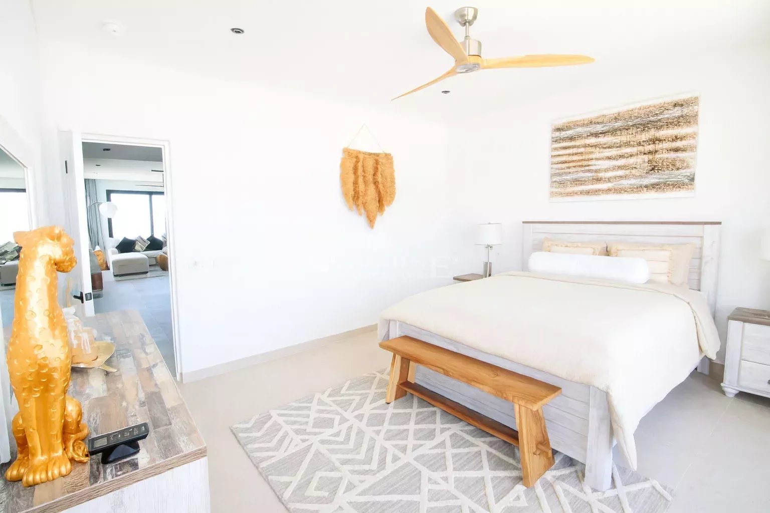 Retirez-vous dans l'une des chambres modernes et spacieuses, dotées de dressings communicant avec la salle de bains attenante. La chambre principale est pourvue d'une grande porte qui s'ouvre sur le balcon d'où vous pourrez admirer la vue imprenable sur l'océan.