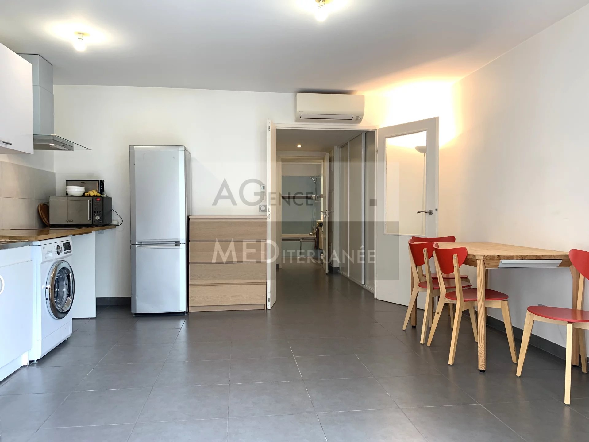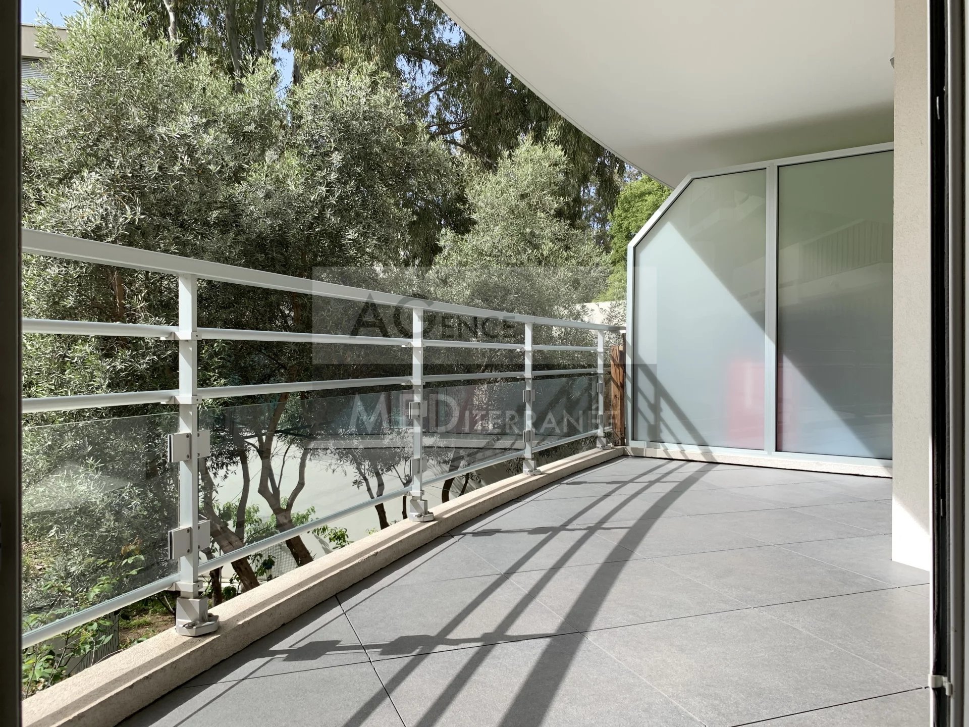 JUAN LES PINS - centre : Dans un immeuble récent (2011) 2 PIECES de 41 m² avec belle terrasse de 9 m² + parking privatif en sous-sol. Climatisation réversible. Au calme et pourtant à proximité de la gare de Juan les Pins, des commerces et des plages. Cet appartement est proposé à la vente avec un locataire en place (bail vide - loyer 890 € charges comprises - échéance 02/06/2027).