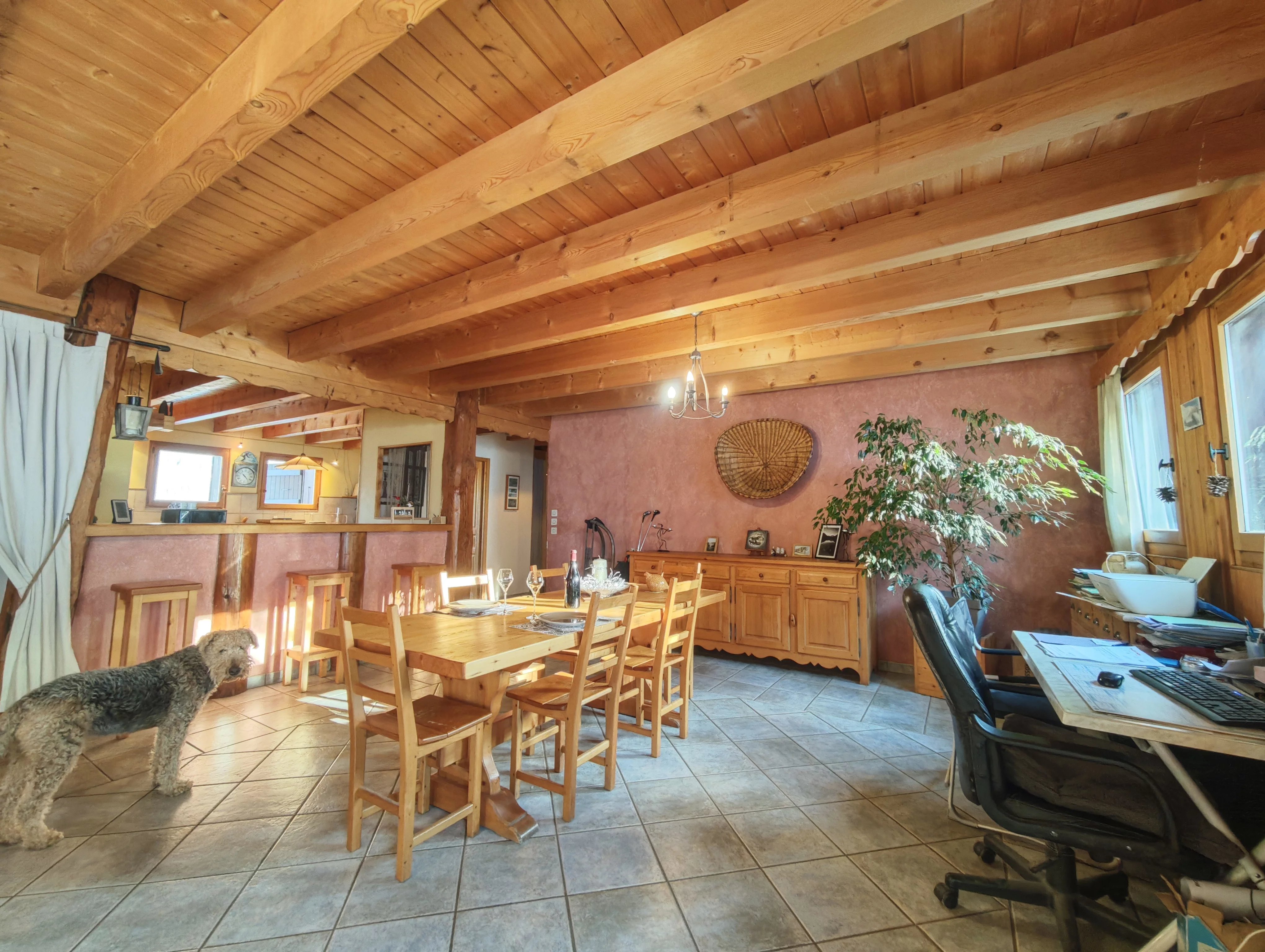 Offrez vous un nouveau projet de vie avec cette ferme traditionnelle "La Grangette" de 300m2 habitables, située à proximité des commodités dans un écrin de nature sur 1000m2 avec une vue 360 sur les montagnes. La ferme propose deux habitations indépendantes : Face Est, on retrouve le gîte avec à l'entrée sa courtine sublimée par des pierres de taille. Ce gîte propose actuellement une grande cuisine, un salon avec cheminée et salle à manger, 3 chambres et une grande salle de bain. Côté Sud, le haut de la bâtisse dispose de deux étages et d'une grande terrasse. On y trouve une pièce de vie de 50m2 équipée d’une cheminée dans la partie salon et d'un bel espace salle à manger, une cuisine toute équipée avec cellier attenant, une grande chambre double avec balcon, une salle de bain et douche, ainsi que de nombreux espaces de stockage comme un vestiaire et une pièce technique avec la chaufferie (chaudière fuel de moins de 10 ans) et buanderie. A l’étage, 4 chambres avec une mezzanine ouverte, une salle d’eau avec un sauna. Cette bâtisse de caractère a la particularité d'être est localisée sur la piste Doina du GRAND MASSIF équipée de canons et ouverte selon l’enneigement. Elle dispose également d'un parking extérieur, d'un carport et d'un local technique pour stocker skis et vélos. Charges annuelles fioul + électricité en résidence principale 4330€. Une opportunité rare dans un cadre d'exception à découvrir sans hésiter !