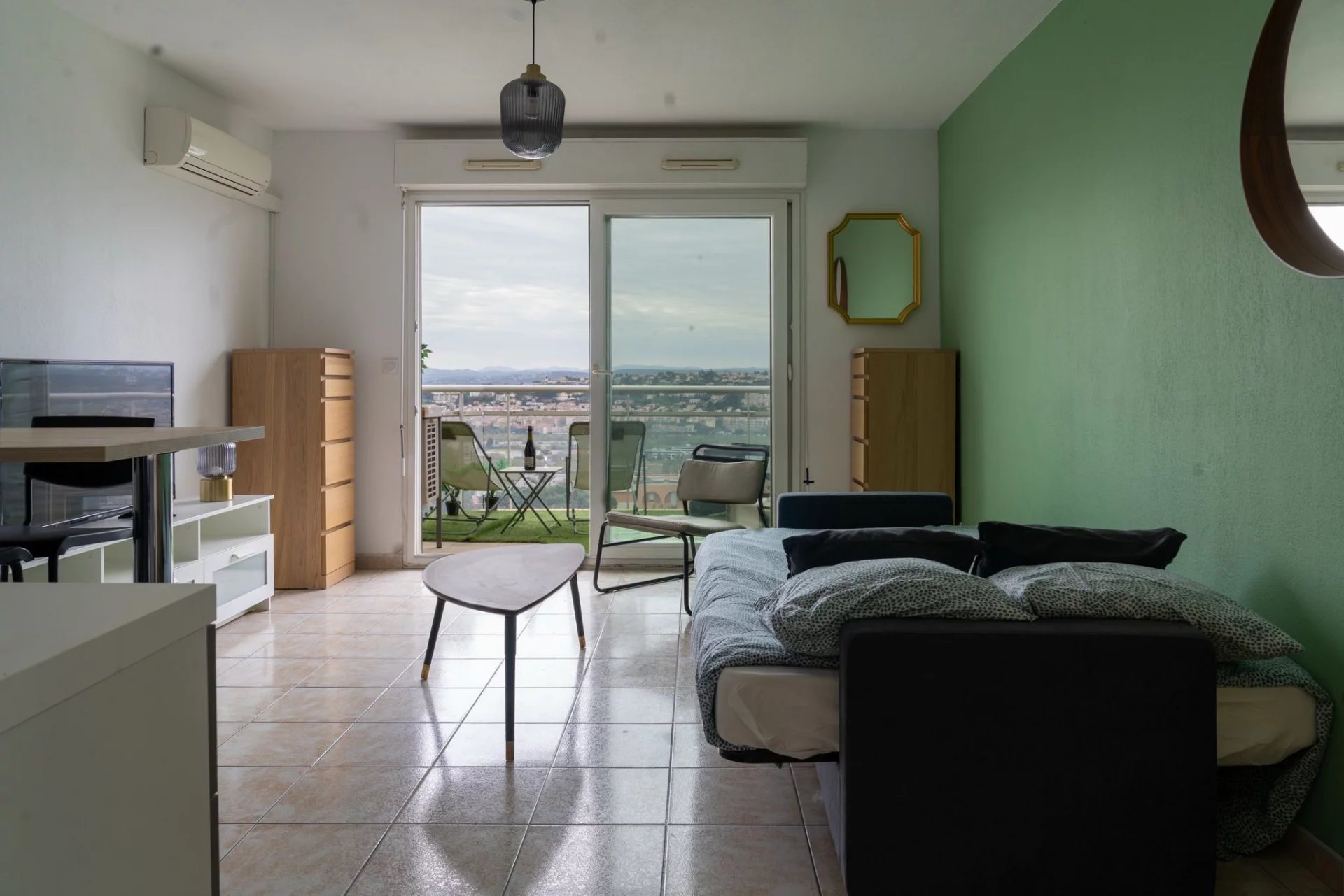 LOCATION ETUDIANTE OU BAIL DE MOBILITE 01/02/2026 AU 30 JUIN 2026 NICE OUEST - 94 CORNICHE FLEURIE- RESIDENCE AVEC PISCINE Dans belle résidence sécurisée avec piscine et terrain de jeux " Les Horizons " Venez découvrir ce studio meublé situé au 3ème étage avec ascenseur, composé d'une entrée avec un placard, d'une salle de douche avec WC, d'un beau séjour cuisine toute équipée donnant sur une belle terrasse avec vue de 9m². Climatisation réversible. Place de parking.