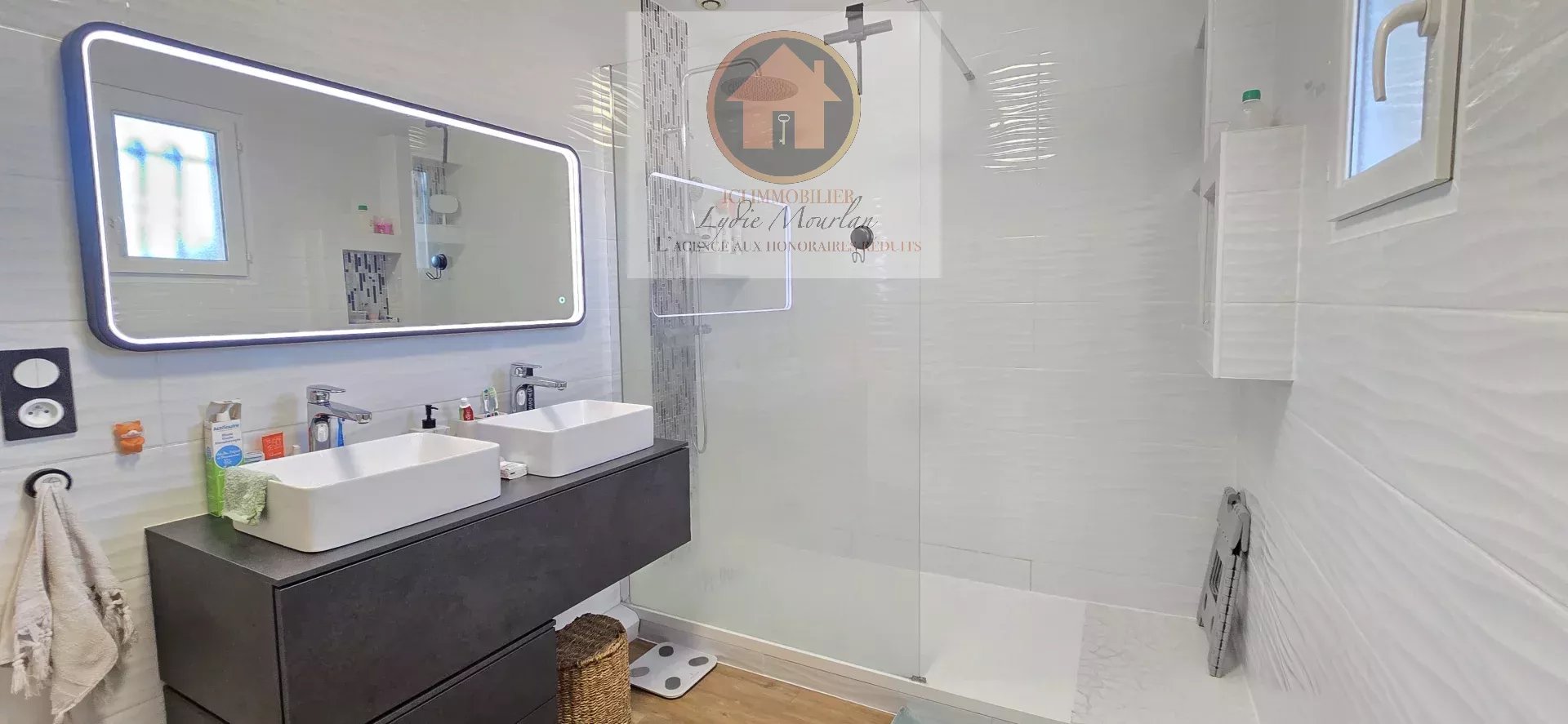 L’espace nuit, à l'étage, se compose de 3 chambres avec placards, de toilettes et d’une grande salle d’eau, fonctionnelle et moderne.