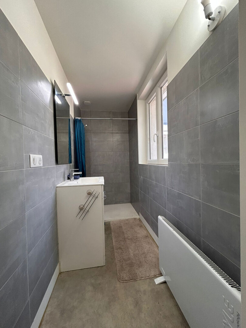 À l'étage : un appartement plain-pied desservi par un escalier commun, avec une vaste entrée, une pièce de vie avec cuisine ouverte aménagée et équipée, un salon avec insert, une chambre, une salle d'eau et des toilettes séparés, donnant sur une terrasse ouverte et privative pour une surface d'environ 54m2.