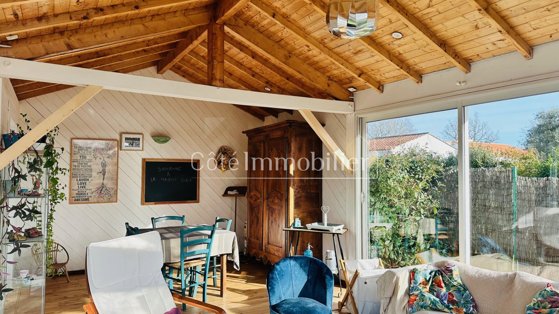 COTE IMMOBILIER VILLENEUVE EN RETZ COUP DE COEUR ASSURÉ Emplacement de choix - sur les hauteurs - dans une rue calme / quartier privilégié Laissez-vous séduire par cette maison atypique et spacieuse, aux volumes généreux et à la luminosité remarquable. Dès l'entrée, vous découvrirez un hall avec placards menant à une pièce de vie traversante Nord/Sud, baignée de lumière, comprenant un séjour convivial et une cuisine aménagée et entièrement équipée. Le rez-de-chaussée propose également une suite parentale avec salle d'eau privative et dressing, un bureau pouvant faire office de chambre, ainsi qu'une véranda verrière ouverte sur le jardin (piscine possible), véritable espace de détente et de ressourcement. A l'étage, une mezzanine offrant une très belle vue dessert deux chambres avec placards intégrés et une salle d'eau. L'ensemble est complété par deux garages totalisant environ 68 m², un atout rare et recherché. A l'extérieur, vous profiterez d'un terrain clos et arboré, agrémenté d'une belle terrasse, idéal pour partager d'agréables moments en famille ou entre amis. Un bien unique, alliant charme, confort et fonctionnalité, à découvrir sans tarder. COTE IMMOBILIER BOURGNEUF EN RETZ 29 rue de la Taillée 44580 BOURGNEUF EN RETZ - VILLENEUVE EN RETZ Tél : 02.40.64.34.98 WWW.COTE-IMMOBILIER.COM (4.50 % honoraires TTC à la charge de l'acquéreur.)
