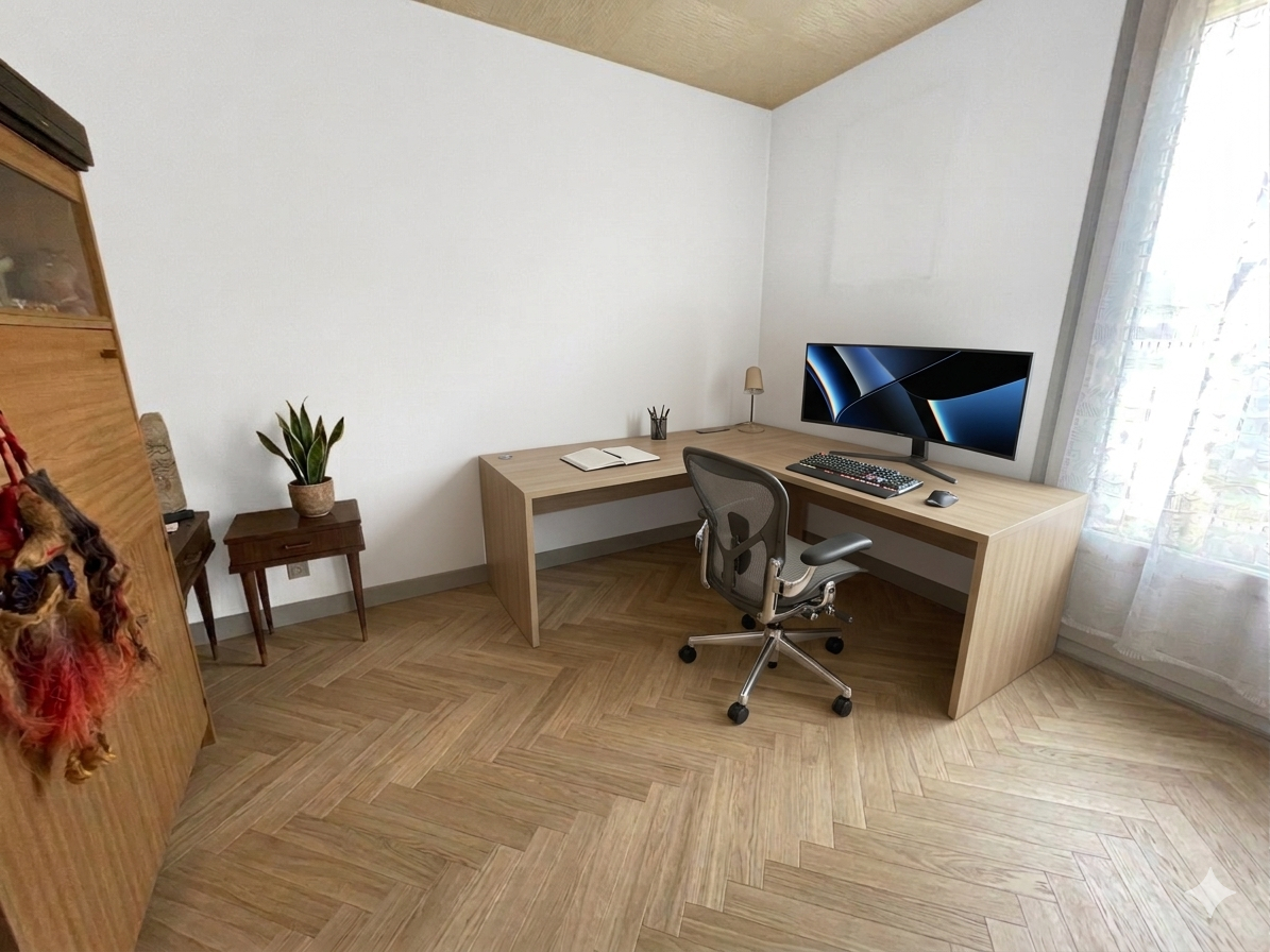 Située dans une impasse, proche des transports en communs et du centre ville, venez découvrir cette maison qui se compose au rez-de-chaussée : d'un séjour salon, d'une cuisine, WC. A l'étage : un palier qui dessert 3 chambres, 1 bureau, salle d'eau et débarras. Côté stationnement 1 garage et une place extérieur. Cette maison a été isolée par l'extérieur ainsi que par les combles, DPE D. Les photos avec la petite étoile sont une proposition de rénovation générée avec l'IA. Contactez nous pour visiter ! www.georisuqes.gouv.fr