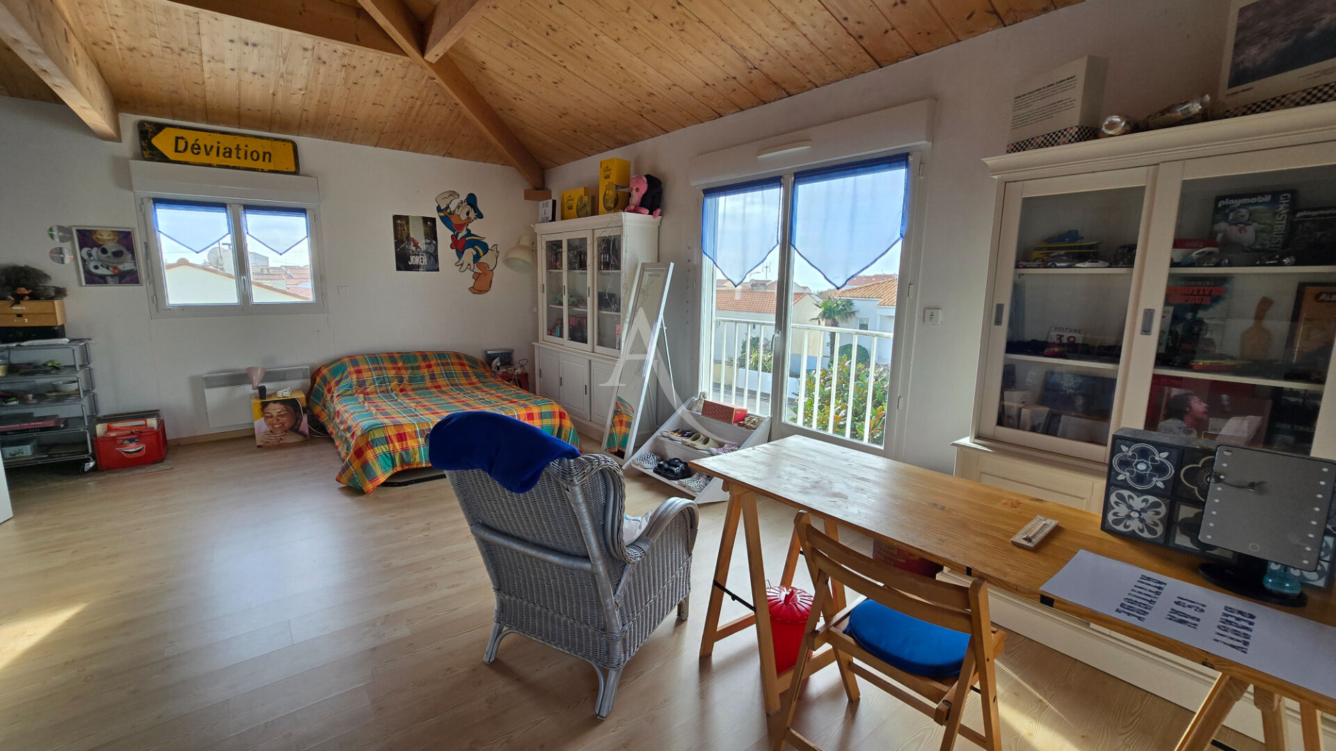 Dans le quartier prisé de La CHAUME, proche de la cote sauvage et des dunes, l'Adresse vous propose cette maison familiale offrant une belle pièce de vie prolonge par une véranda, d'une cuisine aménagée et équipée.4 chambres, deux salles d'eau, une vaste chambre avec vue dégagée. Au sous sol, vaste garage cellier et buanderie complètent les volumes! Le plus: une petite vue Mer!!!! Ref 8806CM