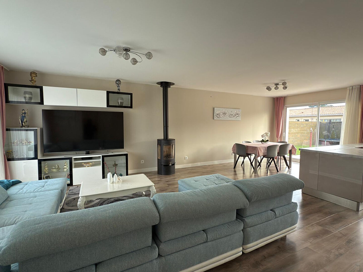 Maison de plain-pied de 95m² habitables sur une parcelle de 500m², située dans un lotissement récent et calme, dans le secteur de Paloumey, profitant des espaces naturels, de l'étang, des bois et des vignes, à proximité des commodités et des commerces de la zone d'activité du Leclerc du Pian Médoc. Cette maison, construite en 2013, en parfait état, se compose d'une grande pièce de vie traversante de 47m² avec cuisine équipée, une buanderie, un dégagement, un wc suspendu, une salle de bains avec baignoire et douche, 3 chambres avec placard. Un garage attenant de 23m² et une place de stationnement sur la parcelle complètent ce bien. Le jardin à l'arrière sans vis à vis, profite d'une exposition sud et permet l'implantation d'une piscine. (5.50 % honoraires TTC à la charge de l'acquéreur.)