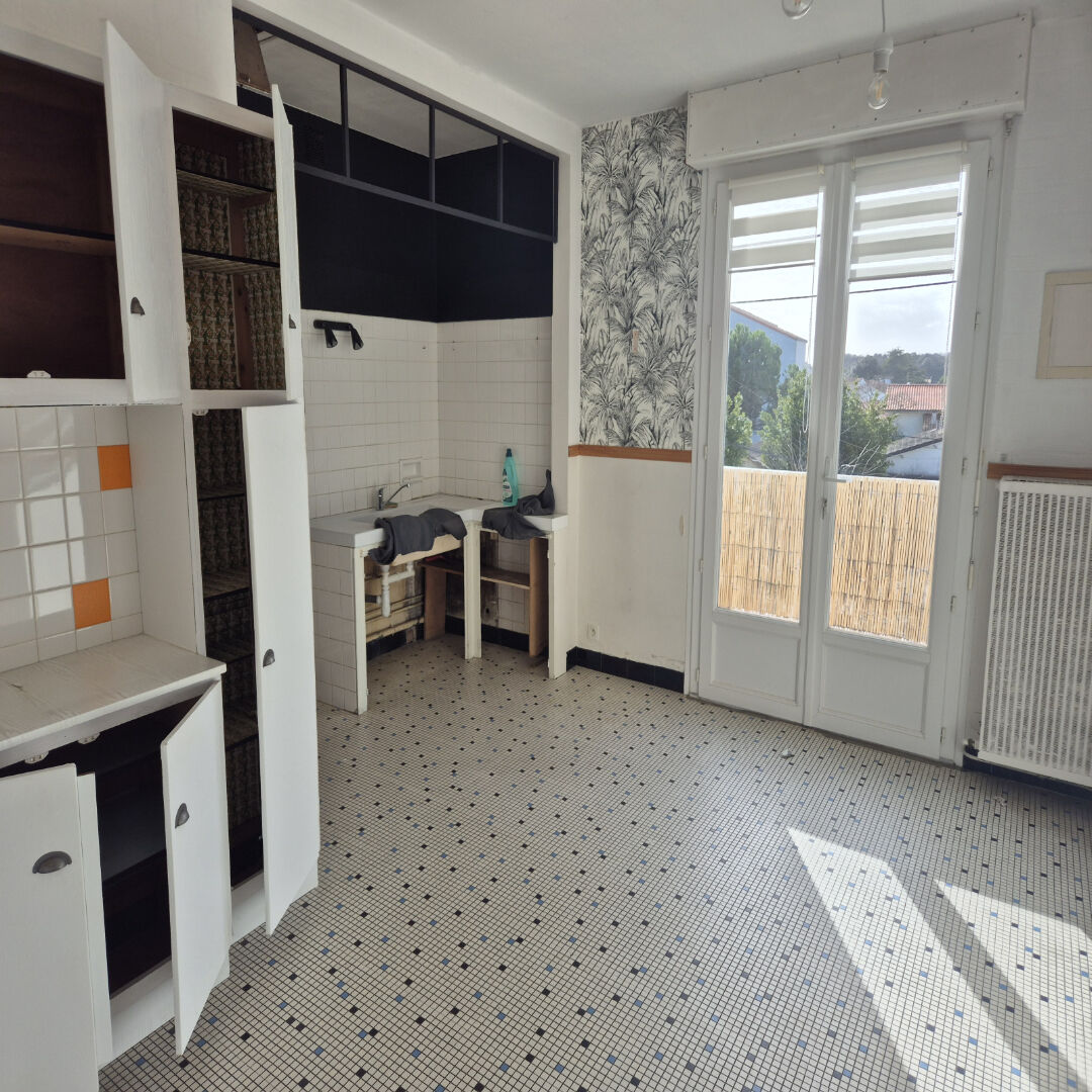 ROYAN SUR LES ARRIERES DE PONTAILLAC. Idéal artisan ou profession libérale. Maison individuelle composée d'un appartement à rénover de 88 m², 3 chambres, séjour salon ouvrant sur terrasse, cuisine, salle de bains, wc, buanderie. Garage de 100 m², sur une parcelle de 400 m². Les informations sur les risques auxquels ce bien est exposé sont disponibles sur le site géorisques : www.georisques.gouv.fr (4.84 % honoraires TTC à la charge de l'acquéreur.)