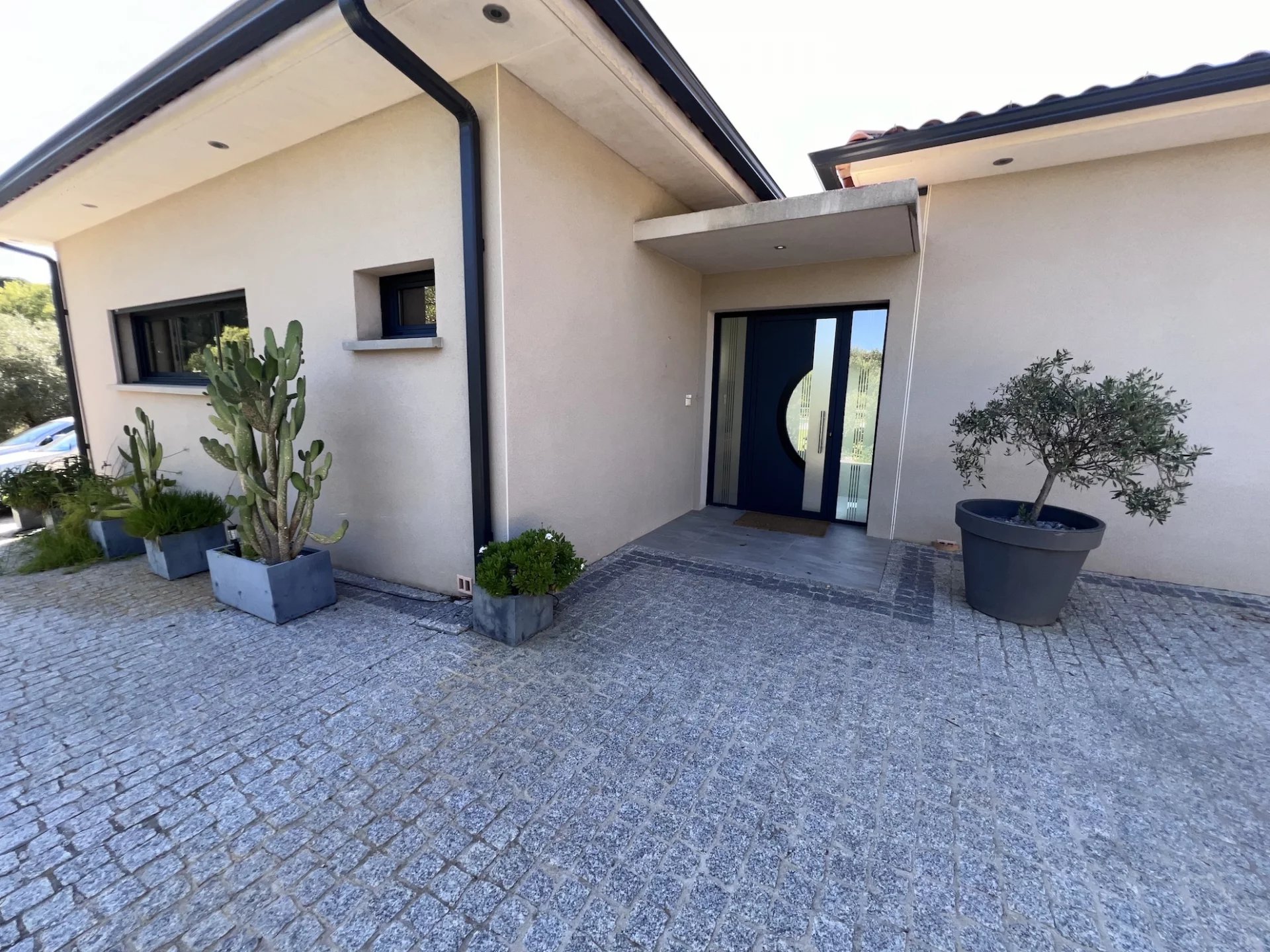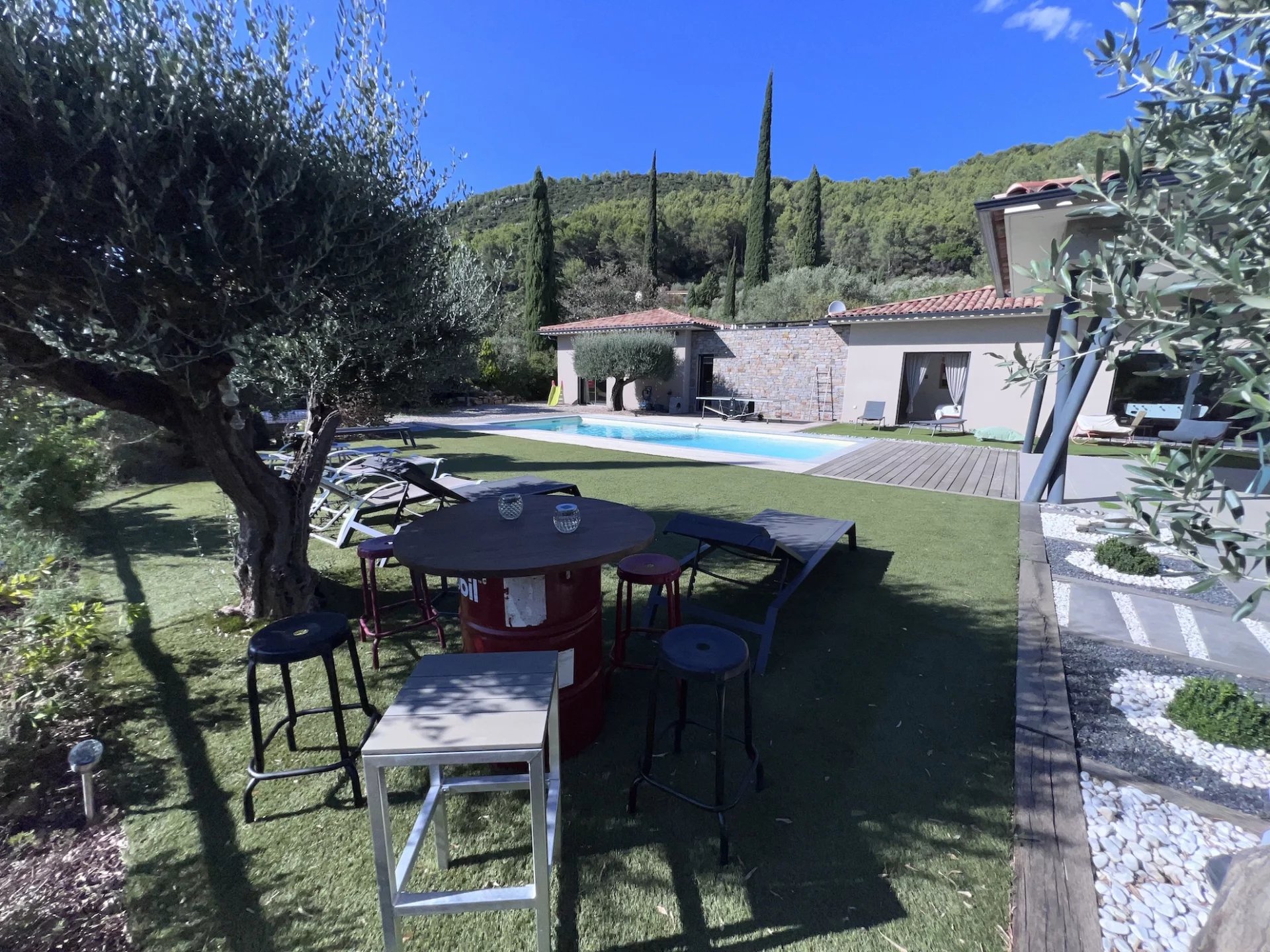 Laissez-vous séduire par cette maison d’exception située à Sollies Toucas, à 20 minutes de Toulon et Hyères. En position dominante, bénéficiant d’une situation exceptionnelle et unique c’est un véritable joyau qui offre une vue dégagée sur l’ensemble de la campagne environnante. Un spectacle permanent qui invite à la sérénité et au rêve. Implantée au cœur d’un terrain de 2 200 m² planté d’oliviers et d’essences méditerranéennes. Cosy et élégante, elle révèle des matériaux d’une grande qualité, choisis avec soin pour créer une atmosphère chaleureuse et raffinée. Une belle entrée avec dégagement accueille les visiteurs, espace vestiaire discret et fonctionnel, wc. Le salon, cosy et baigné de lumière s’ouvre sur une large terrasse ombragée et la piscine chauffée, véritable prolongement de la pièce de vie. Dans la continuité une cuisine ouverte avec espace repas au design contemporain parfaitement équipée. Un lieu idéal pour cuisiner, recevoir et partager. Elle s’ouvre par une large baie vitrée sur la terrasse et la piscine invitant à la détente et aux moments de convivialité. Élégante cuisine d’été parfaitement intégrée aux extérieurs, un véritable atout pour les beaux jours. Espace bureau parfaitement adapté au travail à domicile. Une confortable suite parentale, avec dressing, une jolie salle de bains et wc. Elle bénéficie d’un accès direct à la terrasse et la piscine. Une autre grande chambre lumineuse pouvant servir de salle de jeux, atelier d’artiste…, 2 autres chambres chacune avec salle d’eau privative idéales pour recevoir confortablement famille et invités, wc. Grand garage attenant, annexes de rangements. Chaque espace a été pensé pour offrir confort et bien-être tout en laissant entrer généreusement la lumière et le charme du paysage extérieur. Un lieu rare, où le luxe s’allie à la nature, où l’on vit dedans comme dehors, porté par la beauté environnante. Sans aucun doute votre prochain coup de cœur. Excellent rapport locatif saisonnier possible. LA MAISON SERA DISPONIBLE A PARTIR DE DÉBUT OCTOBRE 2026. Les informations sur les risques auxquels ce bien est exposé sont disponibles sur le site Géorisques : georisques.gouv.fr