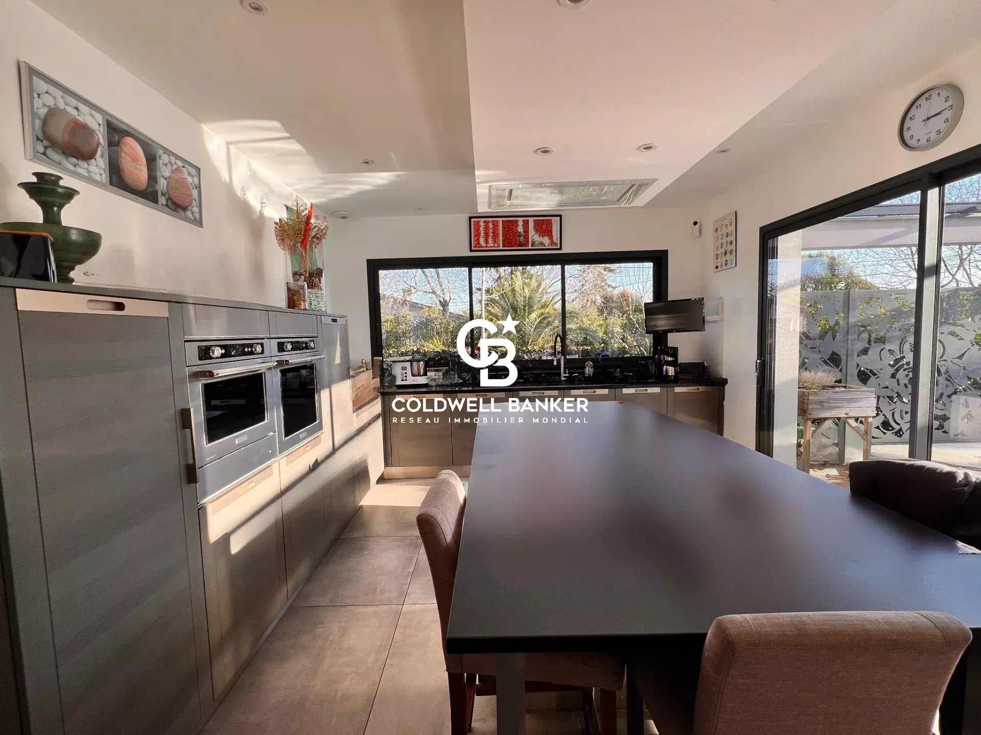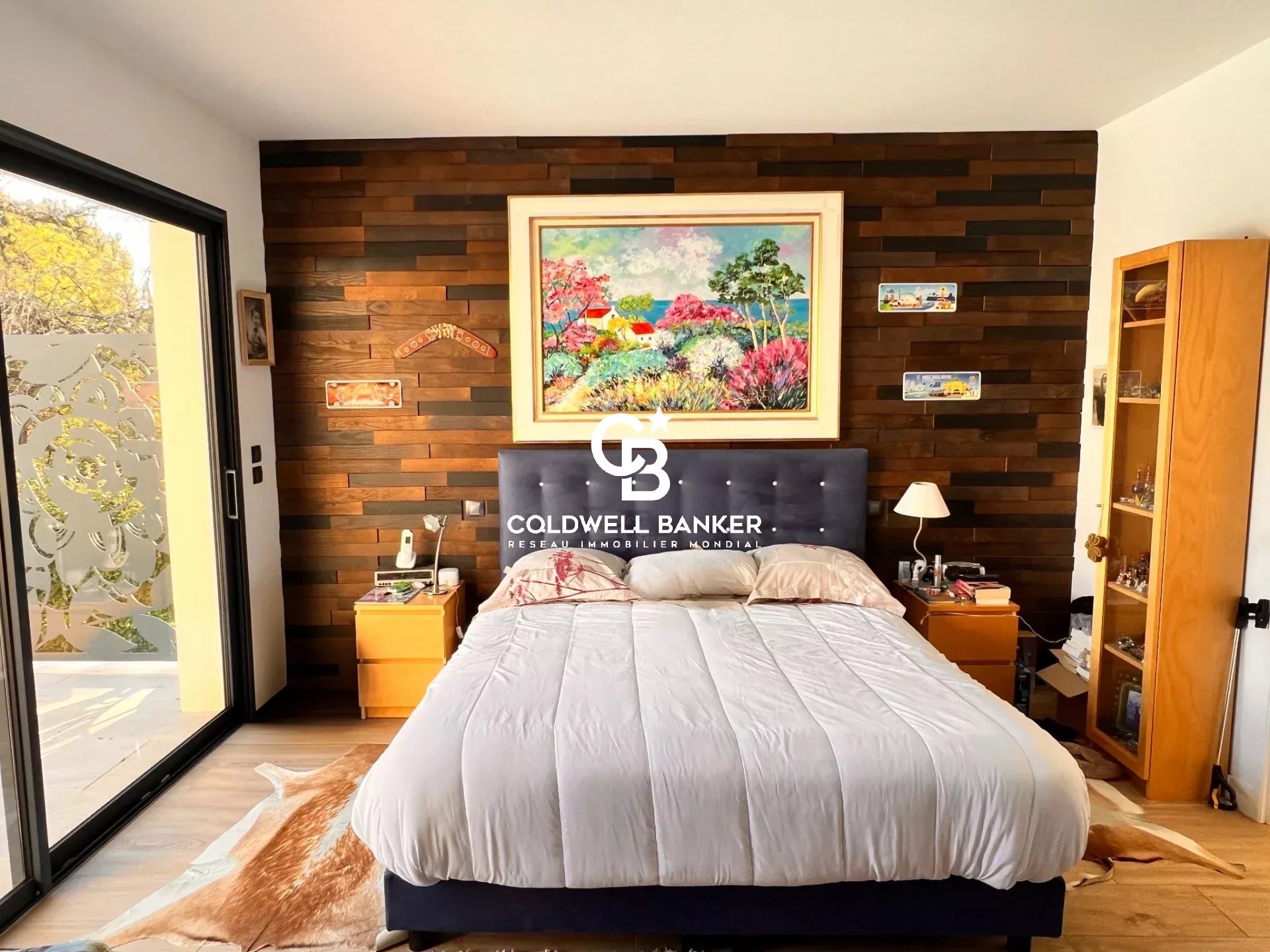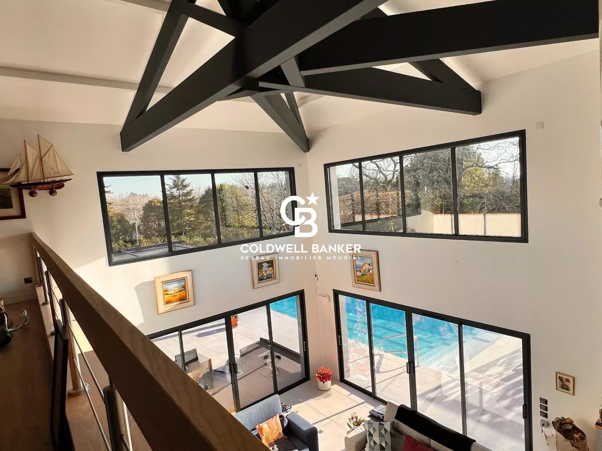 Implantée au cœur d’un grand terrain arboré de plus de 2800 m2 et soigneusement aménagé, cette maison récente séduit par la qualité de sa conception, ses volumes généreux et son confort de vie. Située dans une village pittoresque seulement à quelques minutes de Latresne, tout près d'une étape de route de vin et seulement à 20 minutes de la gare St Jean. Les lumineux et spacieux espaces de réception, prolongent naturellement la maison vers une magnifique terrasse avec la piscine face à la nature. Des magnifiques stores, faites sur mesure, apportent le confort et l'abri. L’agencement intérieur offre trois suites, un grand bureau de la taille d'une chambre, ainsi qu’une mezzanine aux volumes remarquables, créant une atmosphère à la fois moderne et chaleureuse. Les prestations sont au gout de jour, pensées pour un usage quotidien confortable et fluide, avec des espaces annexes discrets et fonctionnels. C'est un havre de paix idéale pour ceux qui recherchent calme, modernité et qualité de vie. Pour plus de renseignements, contactez Anastasiya GRALLIEN Agent Commercial Indépendant N° RSAC 881094221 N° RCP 127100479 DPE A (59 kWhEP/m2.an). GES A (2 kgeqCO2/m2.an) Estimation des coûts annuels : entre 1 250 € et 1 770 € par an Retrouvez tous nos biens sur IMMOBA Les informations sur les risques auxquels ce bien est exposé sont disponibles sur demande ou sur le site Géorisques :www.georisques.gouv.fr