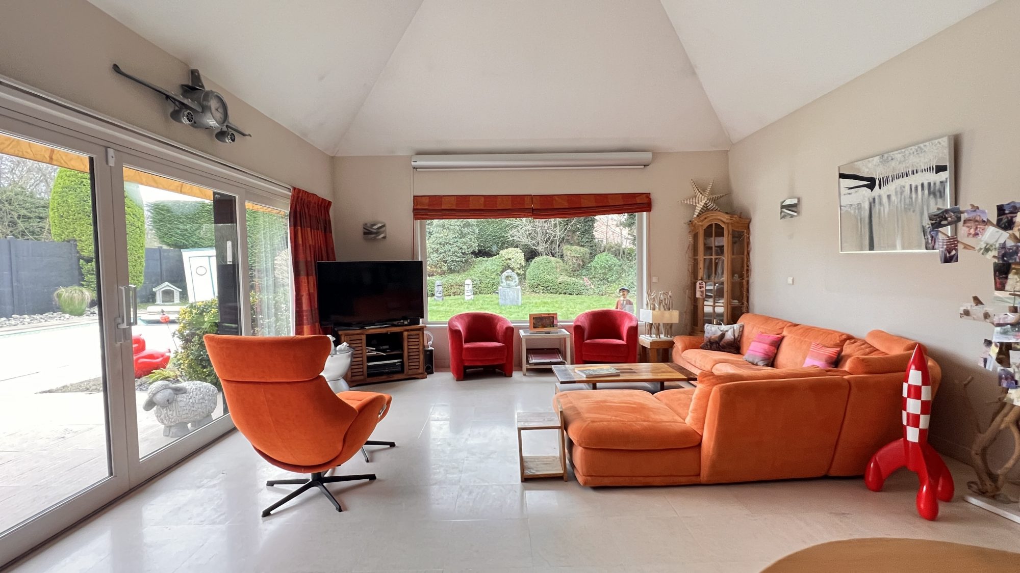 Profitez d'un jardin luxuriant de 1187 m², parfait pour les enfants ou pour organiser des barbecues entre amis. La terrasse et la piscine au brome ajoutent une touche de luxe et de détente à votre quotidien. La vue dégagée sur les environs et l'exposition sud-ouest garantissent une luminosité optimale tout au long de la journée.