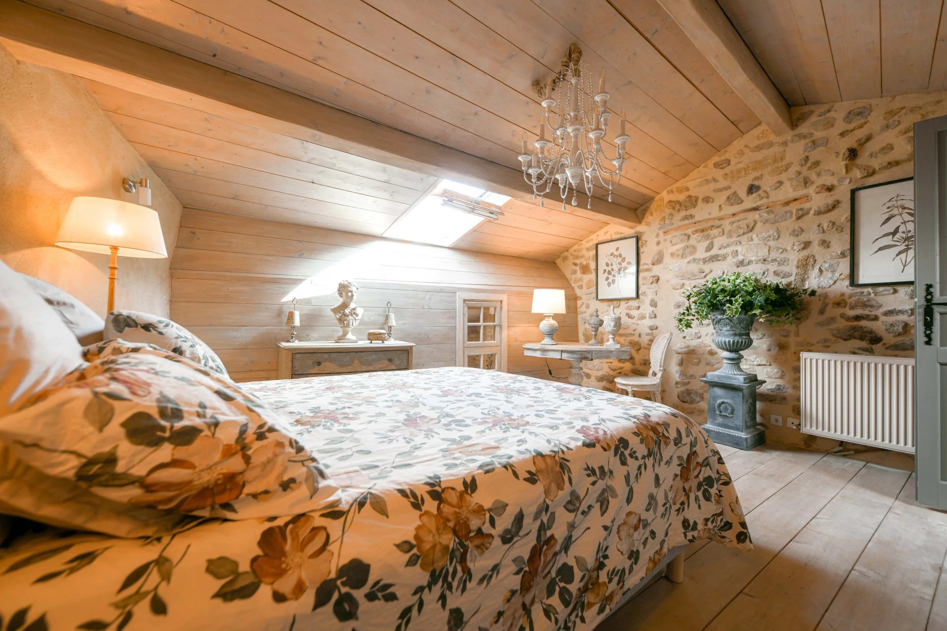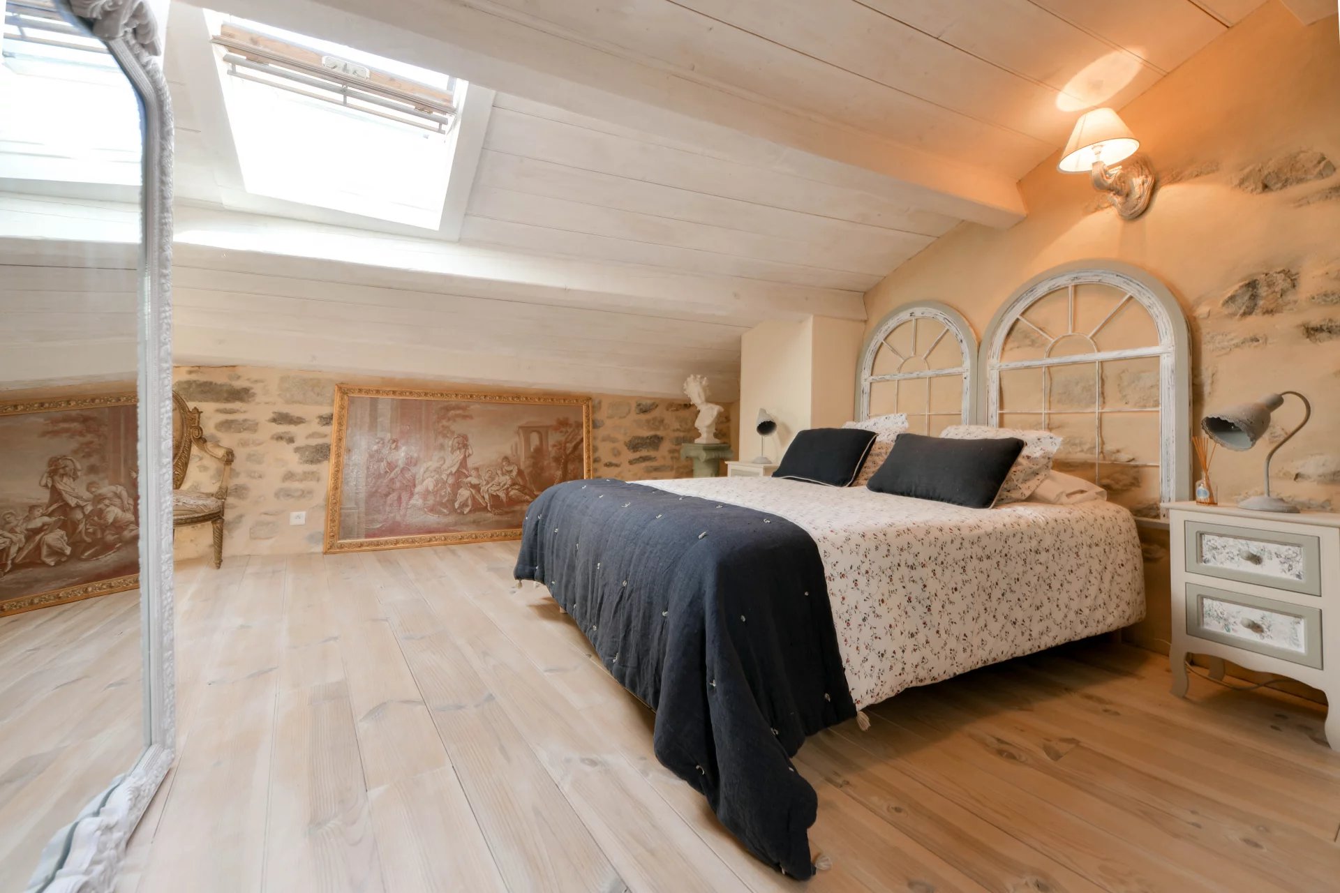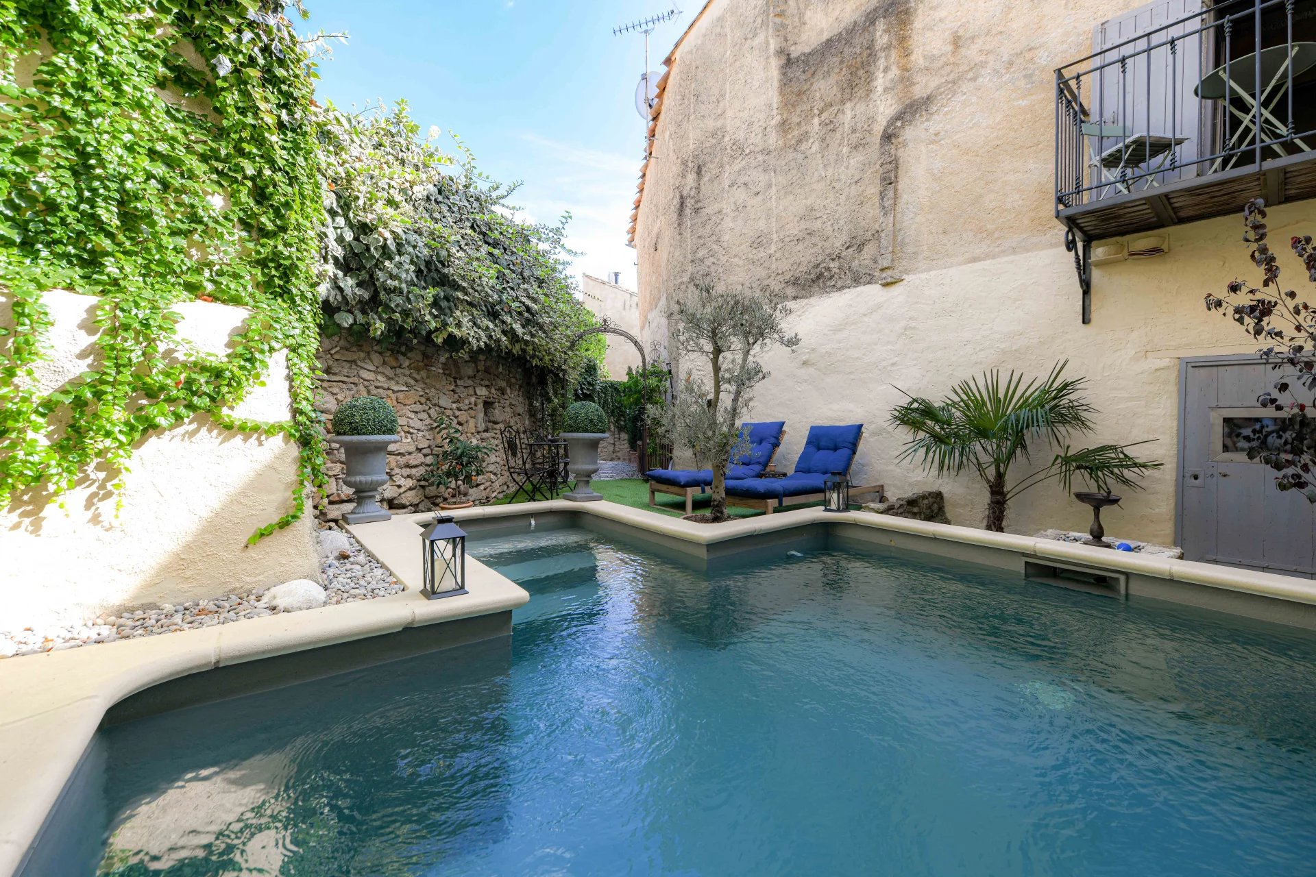Élégante restauration, charme et authenticité Pièce de réception avec cheminée, cuisine de 23 m² 3 chambres, 2 salles de bains, bureau ou 4ème chambre Charmant espace extérieur intime avec bassin