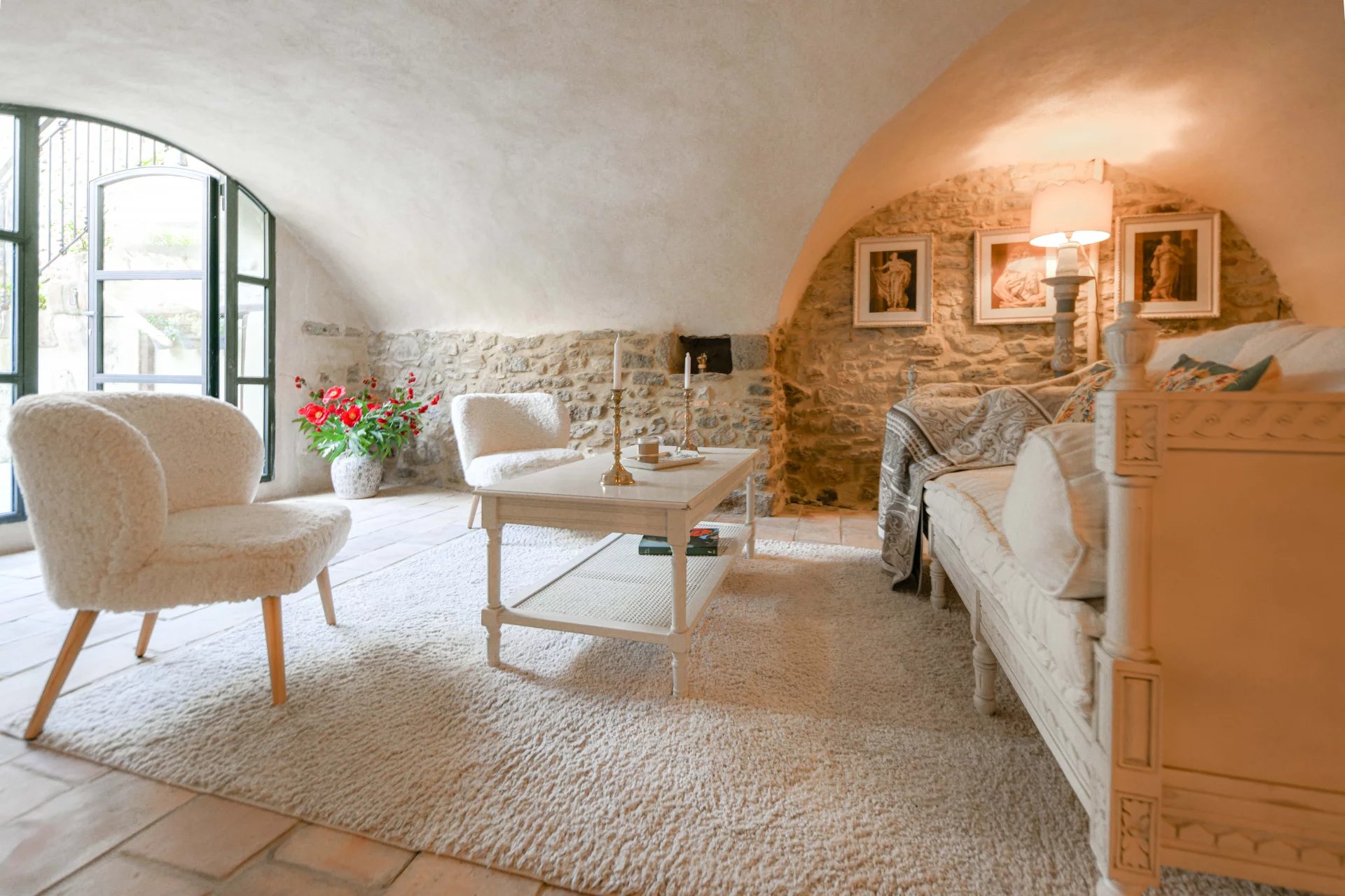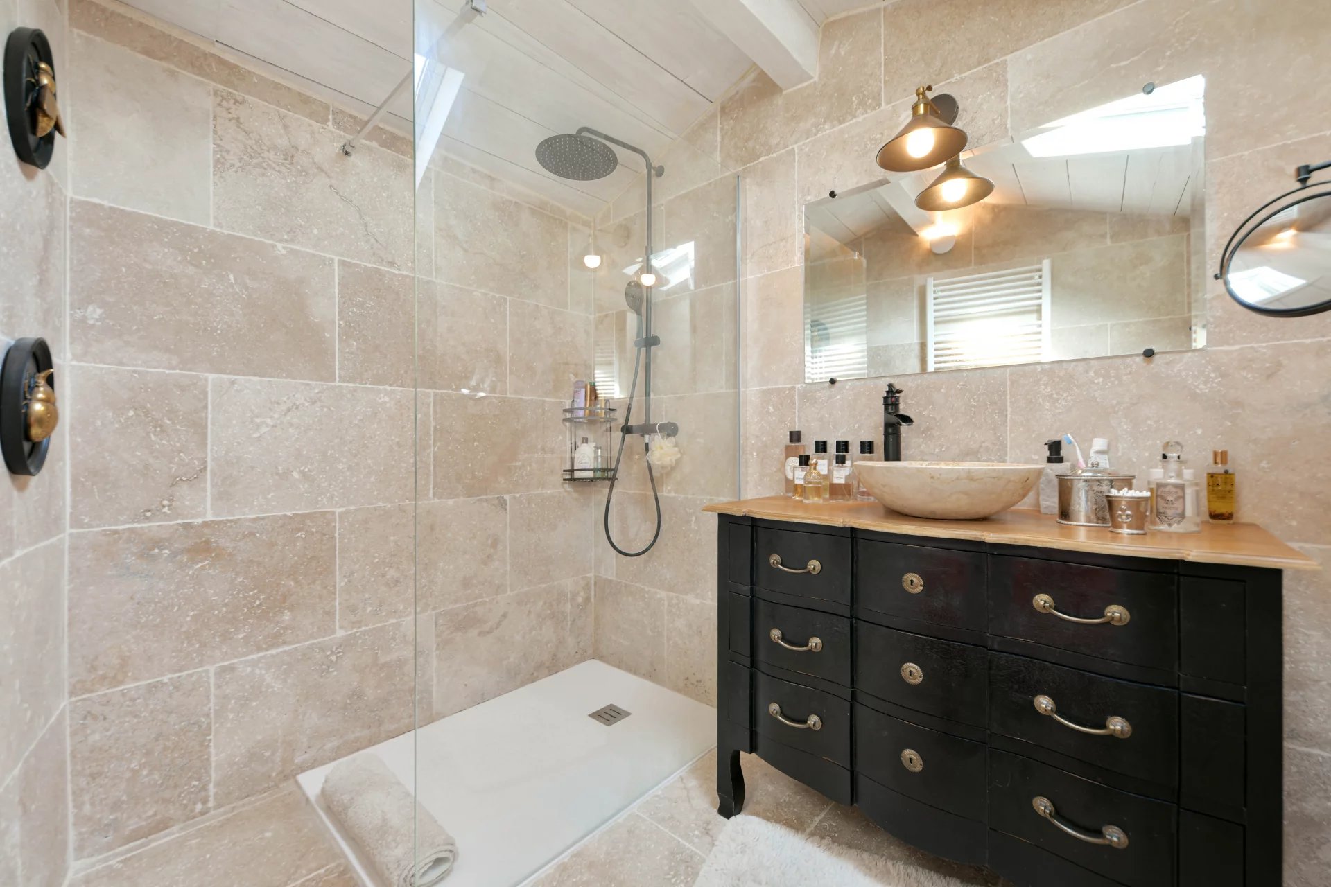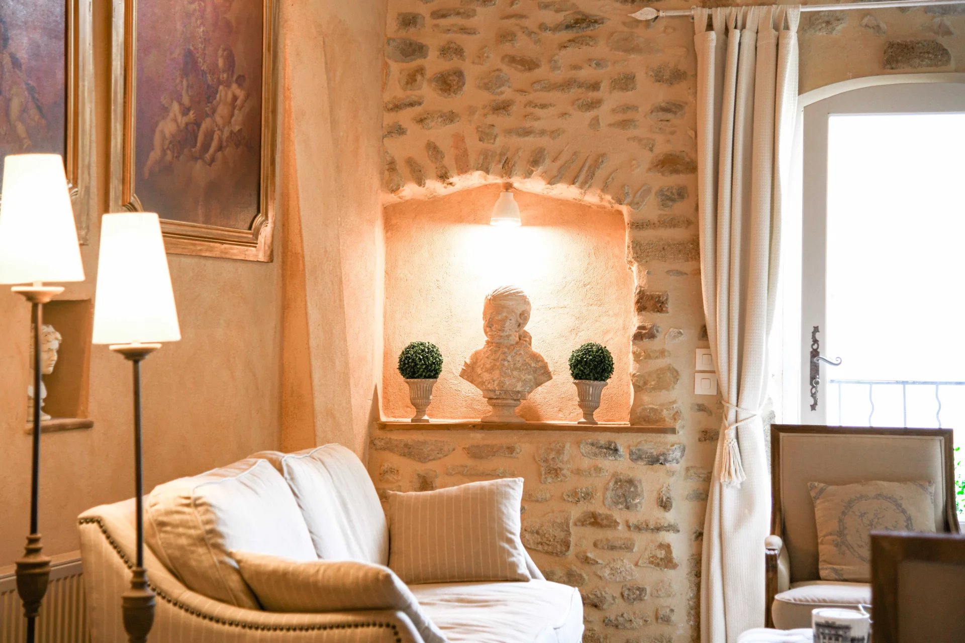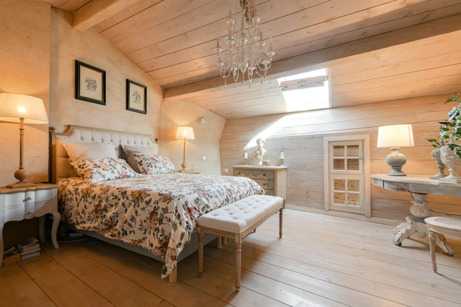 Élégante restauration, charme et authenticité Pièce de réception avec cheminée, cuisine de 23 m² 3 chambres, 2 salles de bains, bureau ou 4ème chambre Charmant espace extérieur intime avec bassin