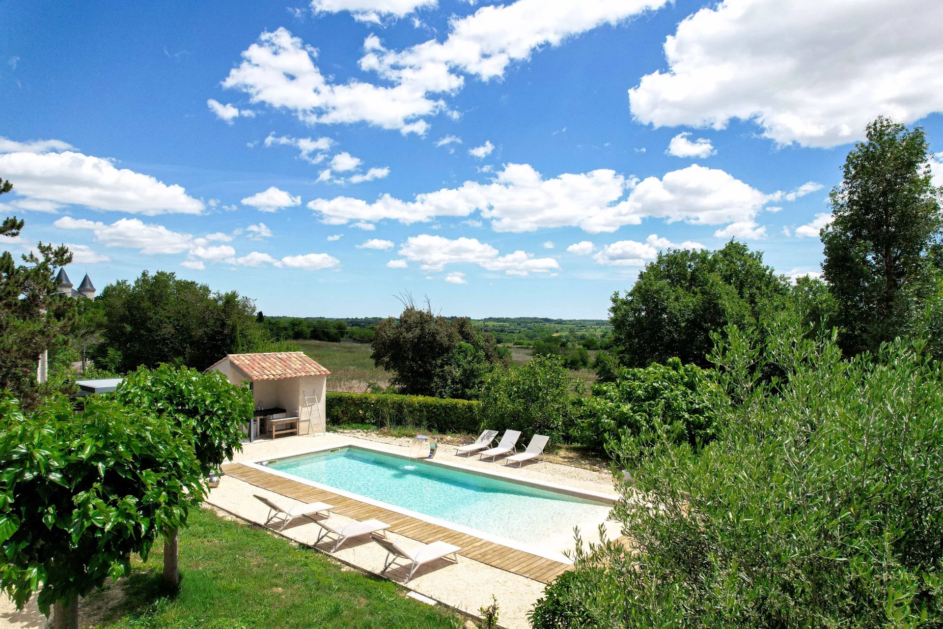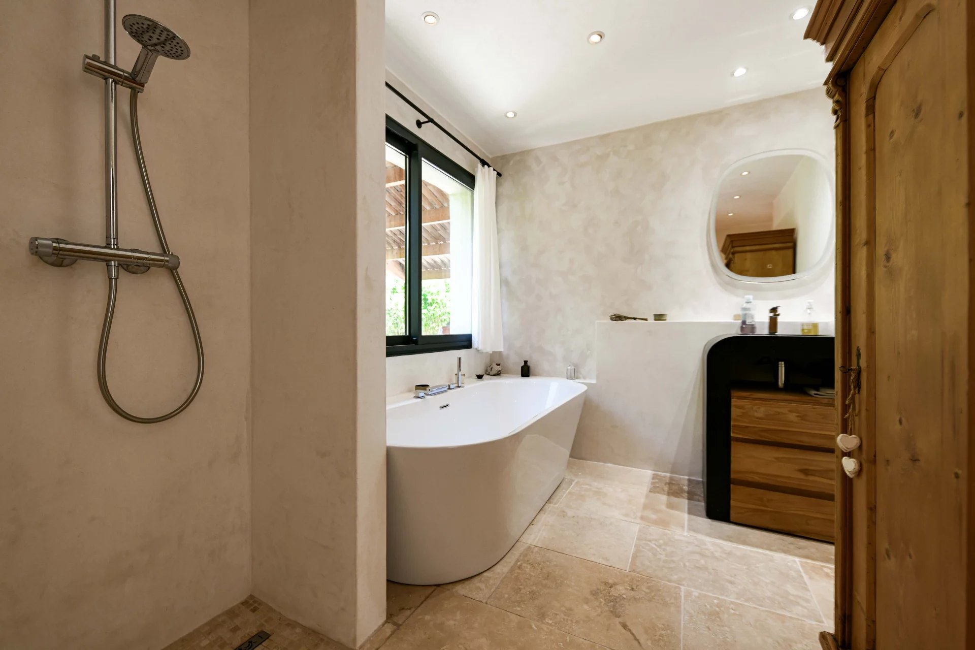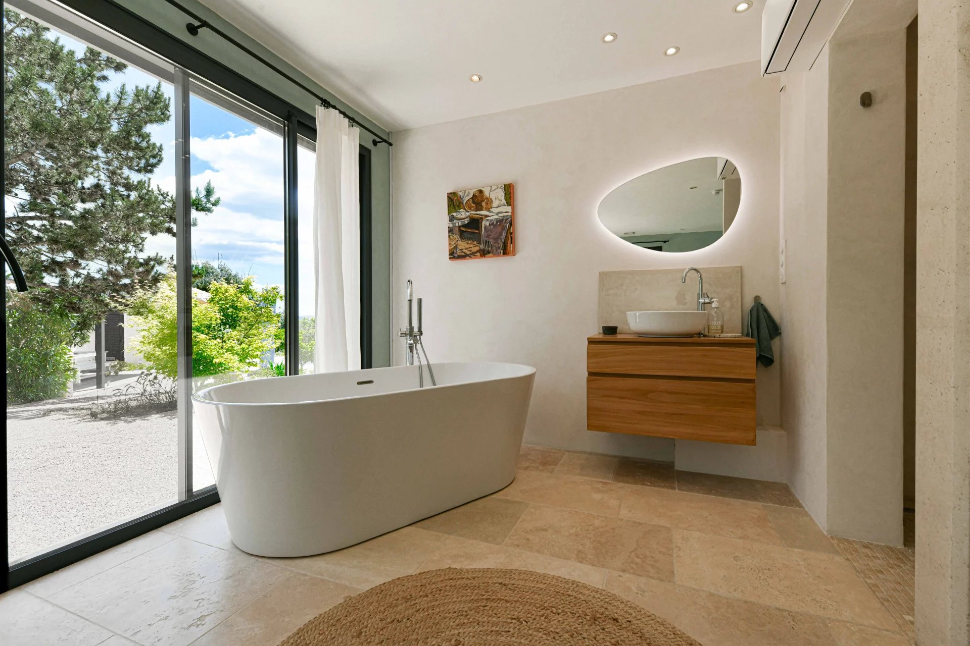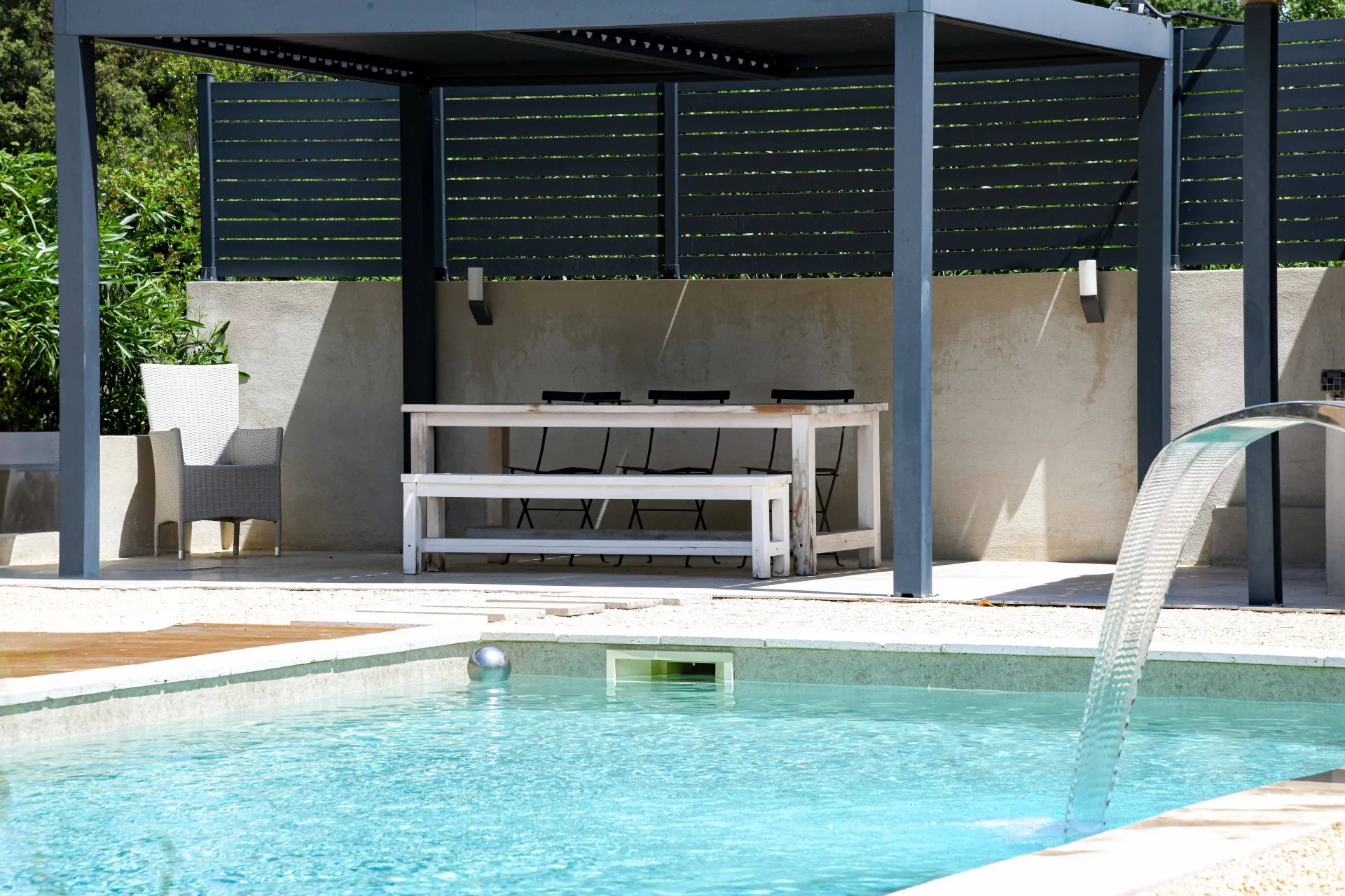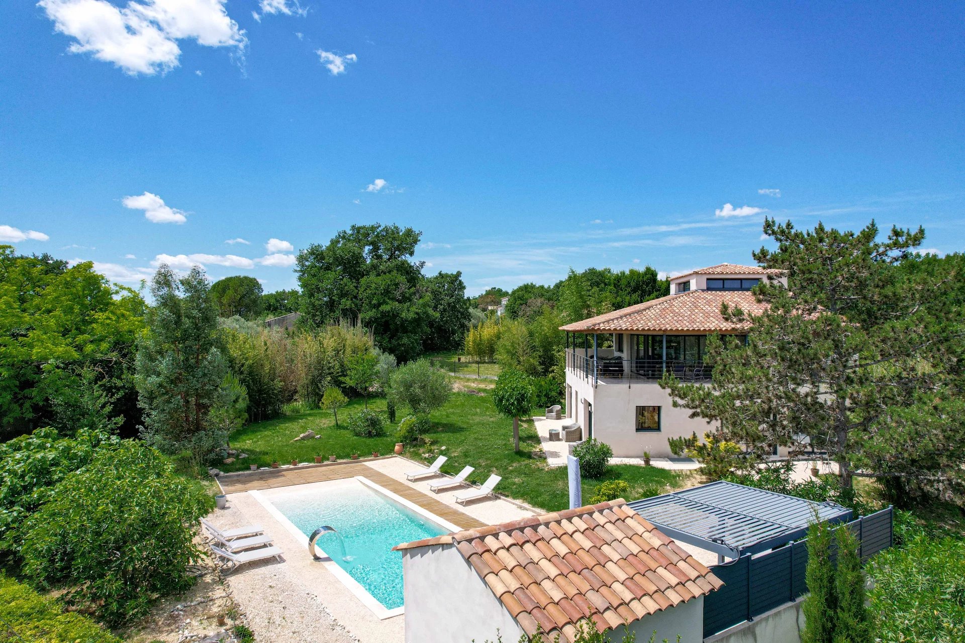 Superbe ensemble de réception ouvert sur une terrasse avec vue panoramique. 3 chambres, 4 salles de bains, large bureau ou salon de télévision. Parc arboré offrant de nombreux espaces. Piscine et pool house. Matériaux de grande qualité. Double carport, atelier