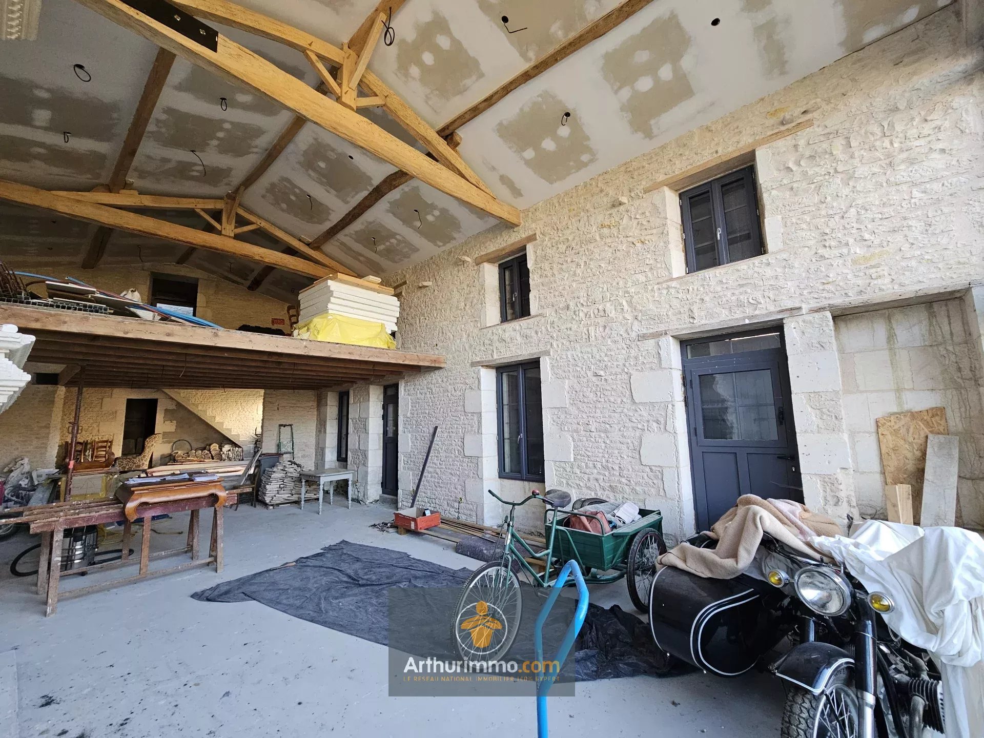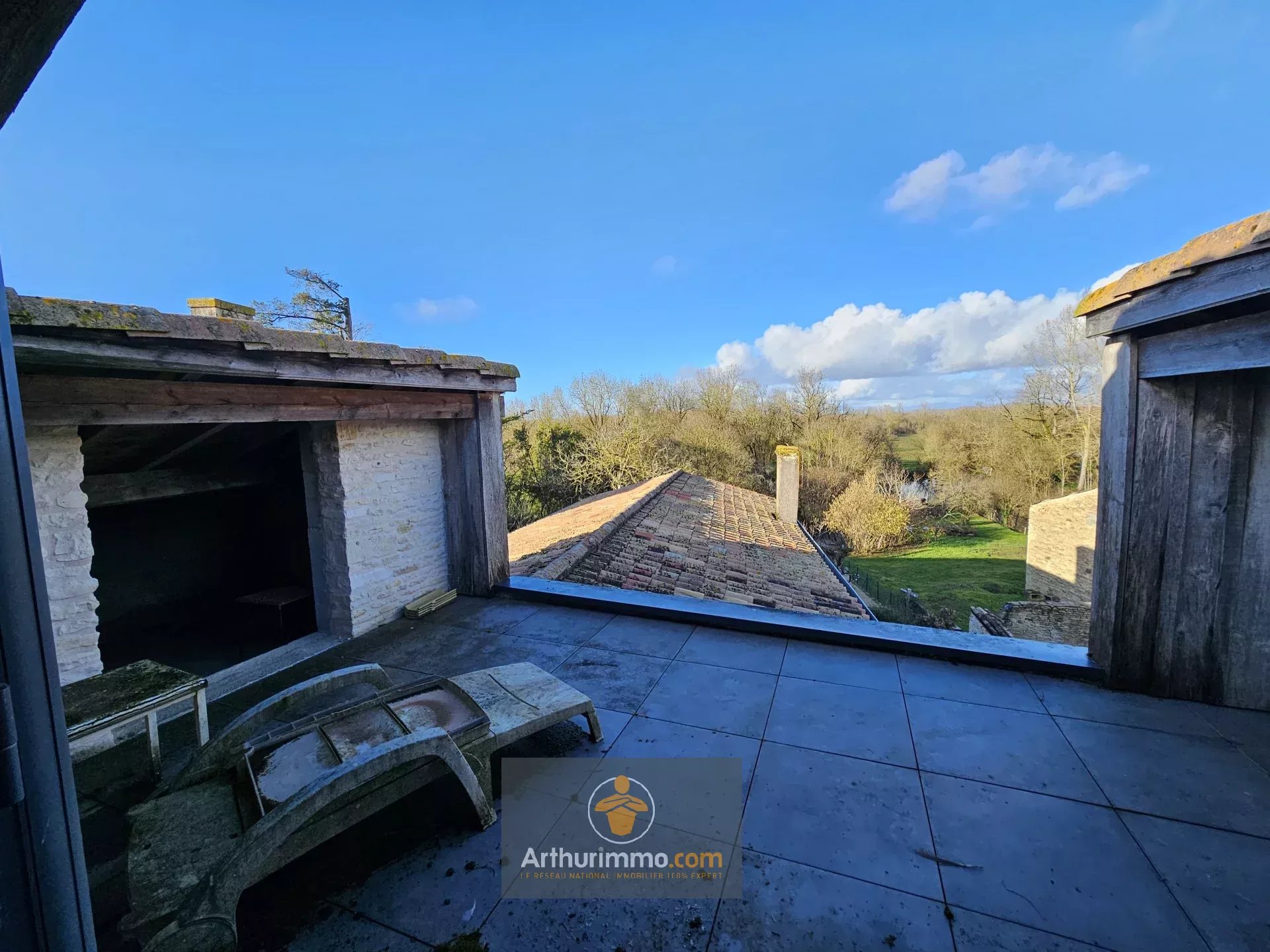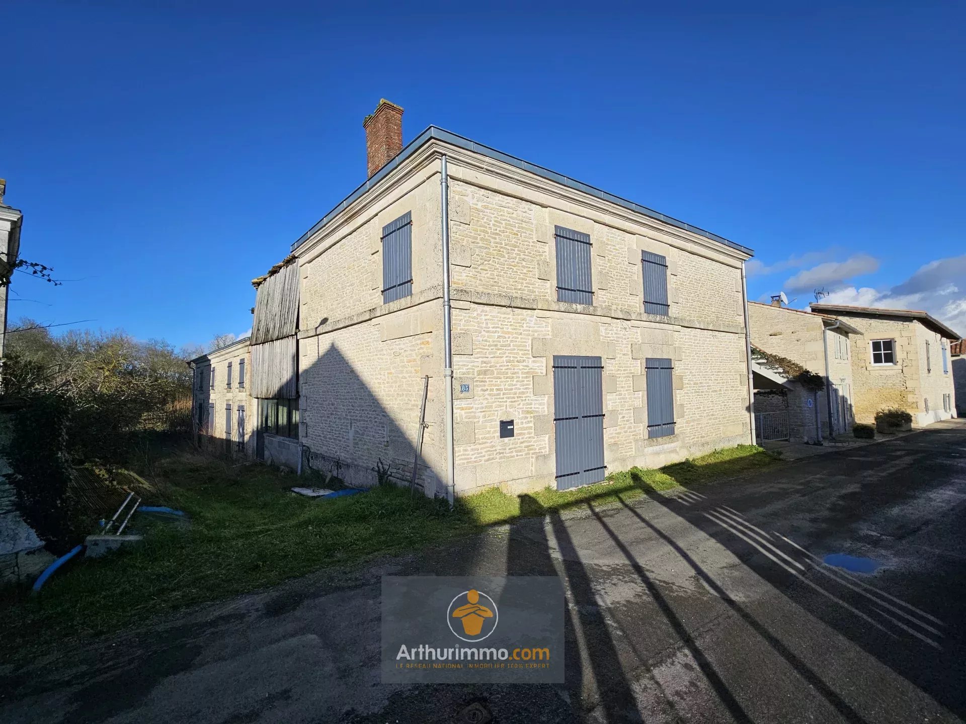 Belle et grande maison située à Arçais sur un terrain de plus de 600 m², constructible et piscinable, avec accès au bief de la Garenne, cave et toit-terrasse. Cette maison pleine de charme, avec ses beaux volumes et son plafond cathédrale, est à terminer : fenêtres en alu double vitrage, raccordée au tout-à-l’égout, installations prévues pour le chauffage au sol, électricité et plomberie. Au rez-de-chaussée, vaste entrée, une cuisine ouverte sur un magnifique salon avec cheminée ouverte et plafond cathédrale, accès cave par la cuisine, une chambre avec salle de bain, et un WC. À l'étage, une chambre avec dressing et salle d'eau, un second dressing et une salle de bain, une pièce donnant sur le séjour pouvant servir de troisième chambre, bureau ou coin lecture...Accès toit terrasse avec vue sur le jardin. Le jardin est à aménager, piscinable avec accès au port. Stationnement sur la parcelle. Contactez votre agence immobilière Arthurimmo.com Courçon (17170), idéalement située au cœur du Marais Poitevin ! À seulement 20 minutes de La Rochelle (17000) et 25 minutes de Niort (79000). Village dynamique avec écoles, collège, activités sportives, marché et commerces. Accès direct à la voie rapide. À 5 minutes de Ferrières d'Aunis (17170) et de sa zone commerciale. À 15 minutes de Surgères (17700) et de sa gare TGV. Pour toutes vos transactions immobilières, contactez-nous dès aujourd'hui !