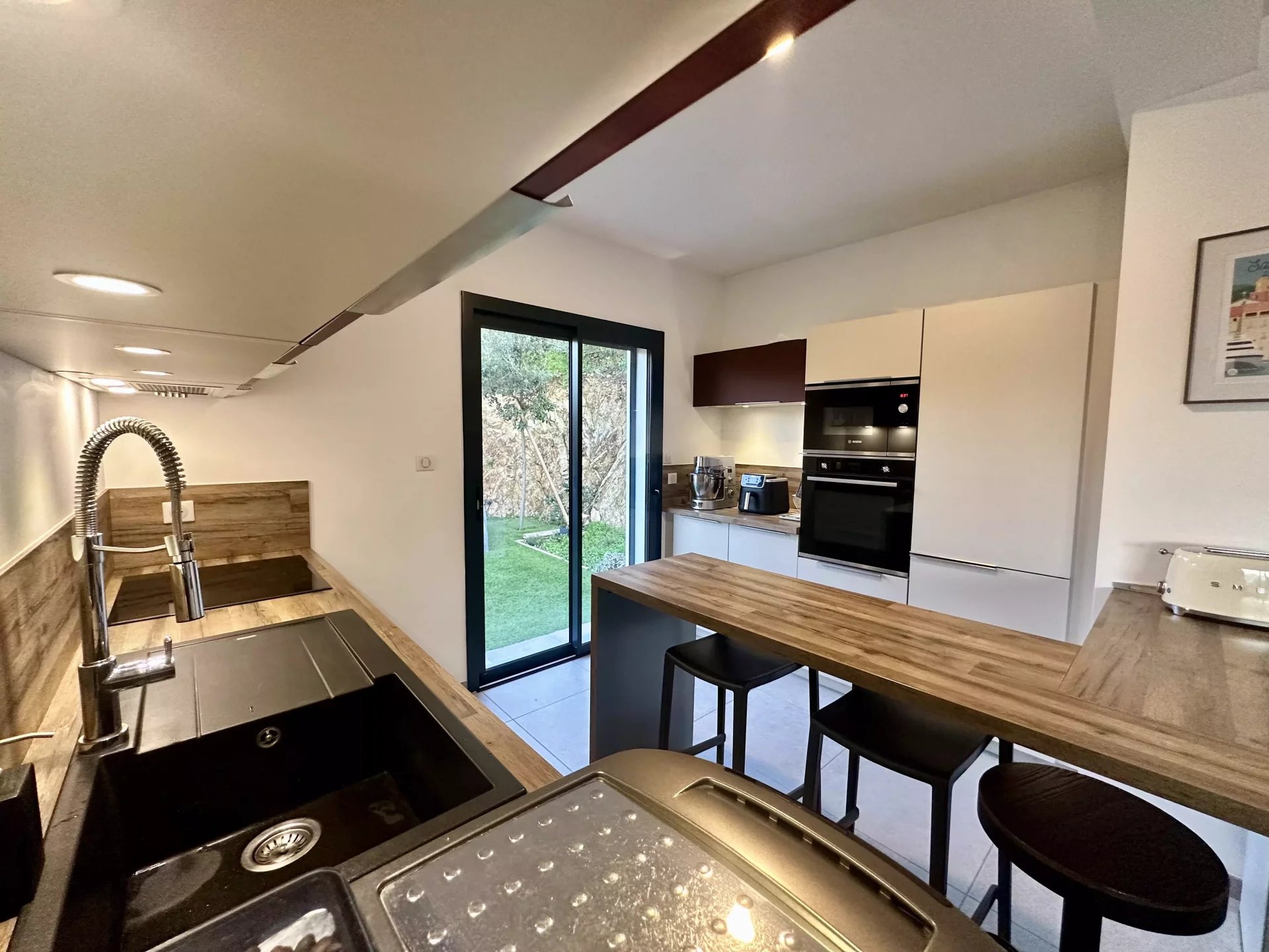 Maison coup de cœur, à deux pas du centre-ville, dans une petite copropriété au calme. Cette maison moderne, mitoyenne d’un côté, séduit par ses prestations de qualité, sa vue dégagée et son agencement fonctionnel. Elle offre une belle pièce de vie lumineuse avec poêle, cuisine ouverte contemporaine et climatisation gainable. À l’étage, trois chambres, une salle de bain avec douche et un WC indépendant. Vous bénéficiez d’un garage de 38 m², d’une cave et de deux places de parking privatives dont une couverte. À l’extérieur, une terrasse de 38 m² avec pergola bioclimatique, un jardin aménagé et un spa pour un véritable espace de détente. Aucun travaux à prévoir. Bien rare dans un secteur recherché, idéal en résidence principale ou secondaire. 📞 07 66 67 67 25