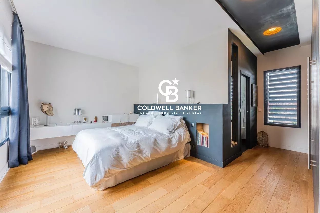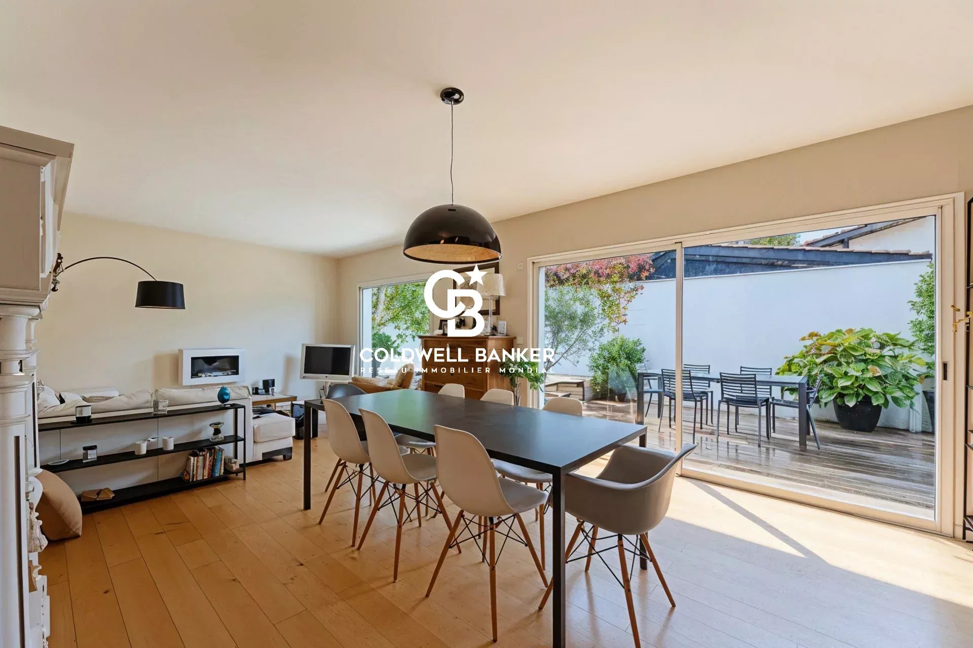 Située dans une rue calme à proximité de l’école Lafont Féline, cette maison récente de 135 m² combine élégance et confort. Au rez-de-chaussée, un grand espace de vie s’ouvre sur la terrasse et la piscine. La cuisine moderne s’intègre naturellement à la pièce principale, créant un lieu convivial et lumineux. L’entrée dispose de rangements et un garage attenant permet un accès direct à la maison. À l’étage, une suite parentale spacieuse avec dressing et salle d’eau privative assure l’intimité des parents. Trois autres chambres et un espace bureau complètent la partie nuit. L’extérieur propose une terrasse en bois, une piscine chauffée et un jardin d’accueil permettant le stationnement d’un véhicule. Points forts : Piscine chauffée Panneaux solaires et borne de recharge Garage + stationnement privé Quartier recherché, calme et familial Un bien rare alliant design et confort dans un secteur recherché du Bouscat. DPE D / GES B Estimation des coûts annuels d'énergie du logement 2410 - 3290 euros Prix du bien : 798000 euros HAI honoraires d'agence à la charge du vendeur. Pour plus d’informations merci de contacter Laura Fornes Agent commercial RSAC 522410877- RCP 62571004 Retrouvez tous nos biens sur immoba.fr