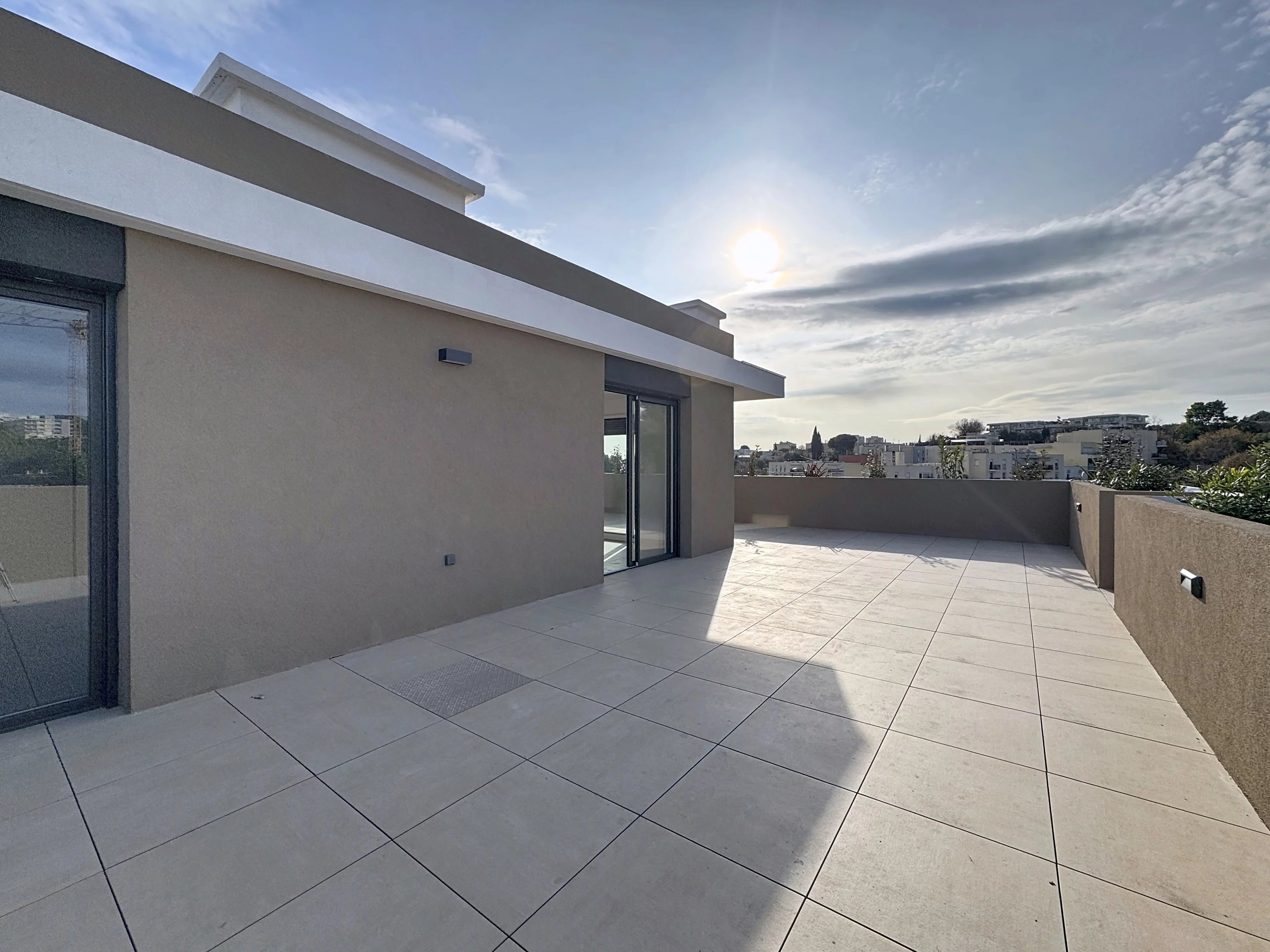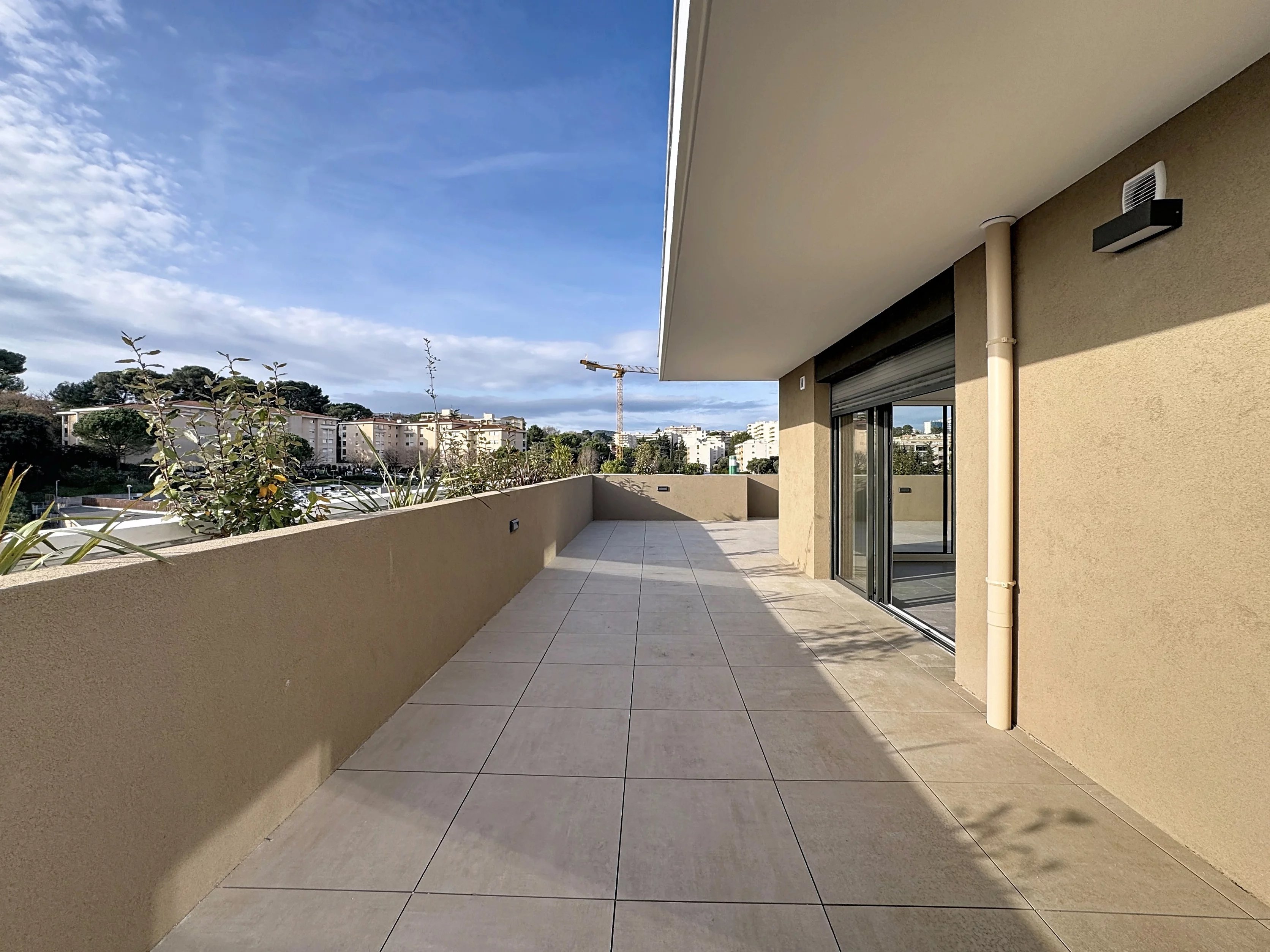 Trilocale all'ultimo piano con una grande terrazza di 71,5m2 (rinforzo per la prevista vasca idromassaggio) L'appartamento è molto luminoso nel centro città. I negozi sono vicini, con facile accesso alle strade principali e a Sophia Antipolis. Sviluppatore rinomato. Garanzie obbligatorie e standard costruttivi termici e acustici di ultima generazione. Nuova residenza. Da non perdere.