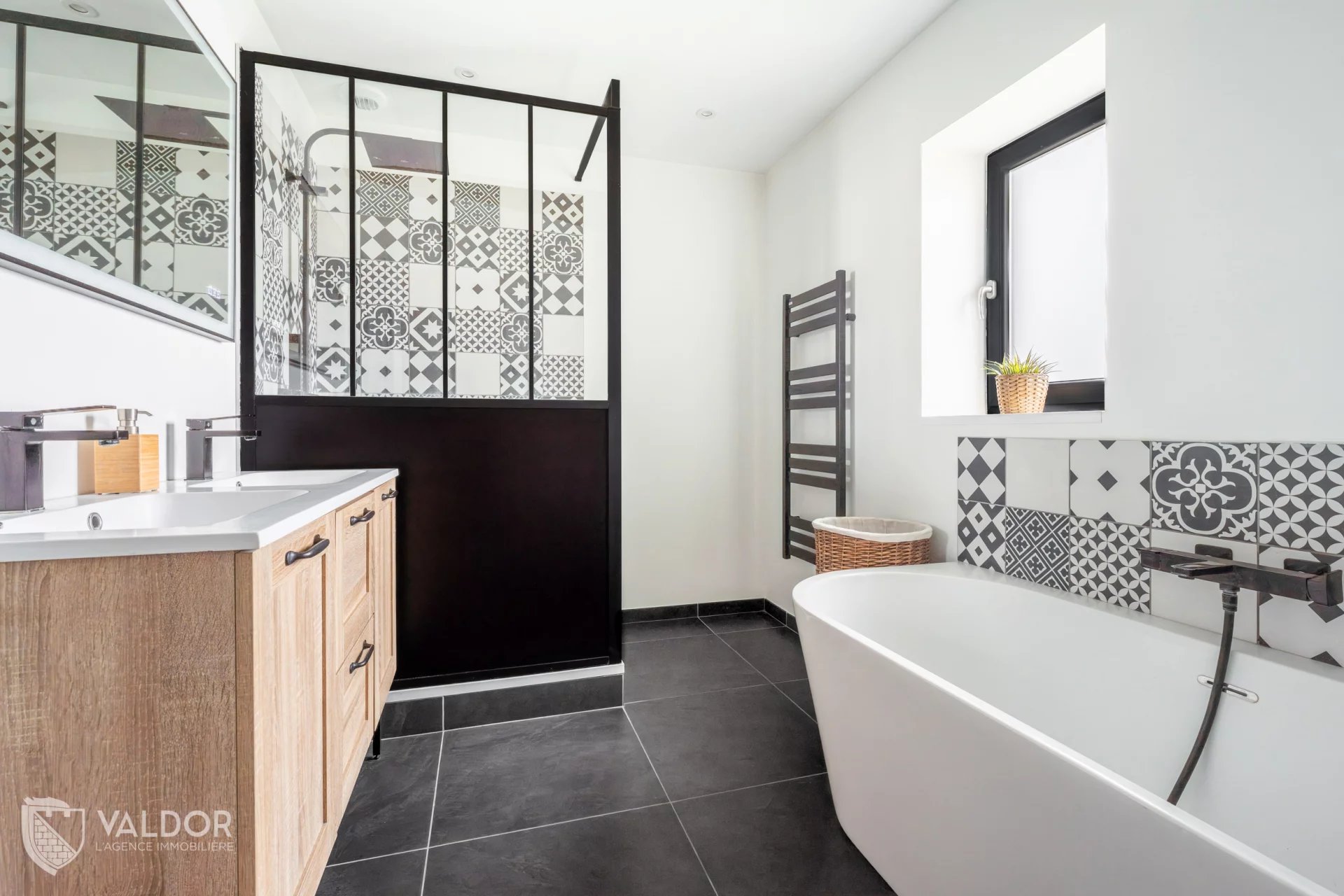 A l'étage, vous bénéficierez de 3 chambres, un toilette séparé et une salle de bains avec douche et baignoire.