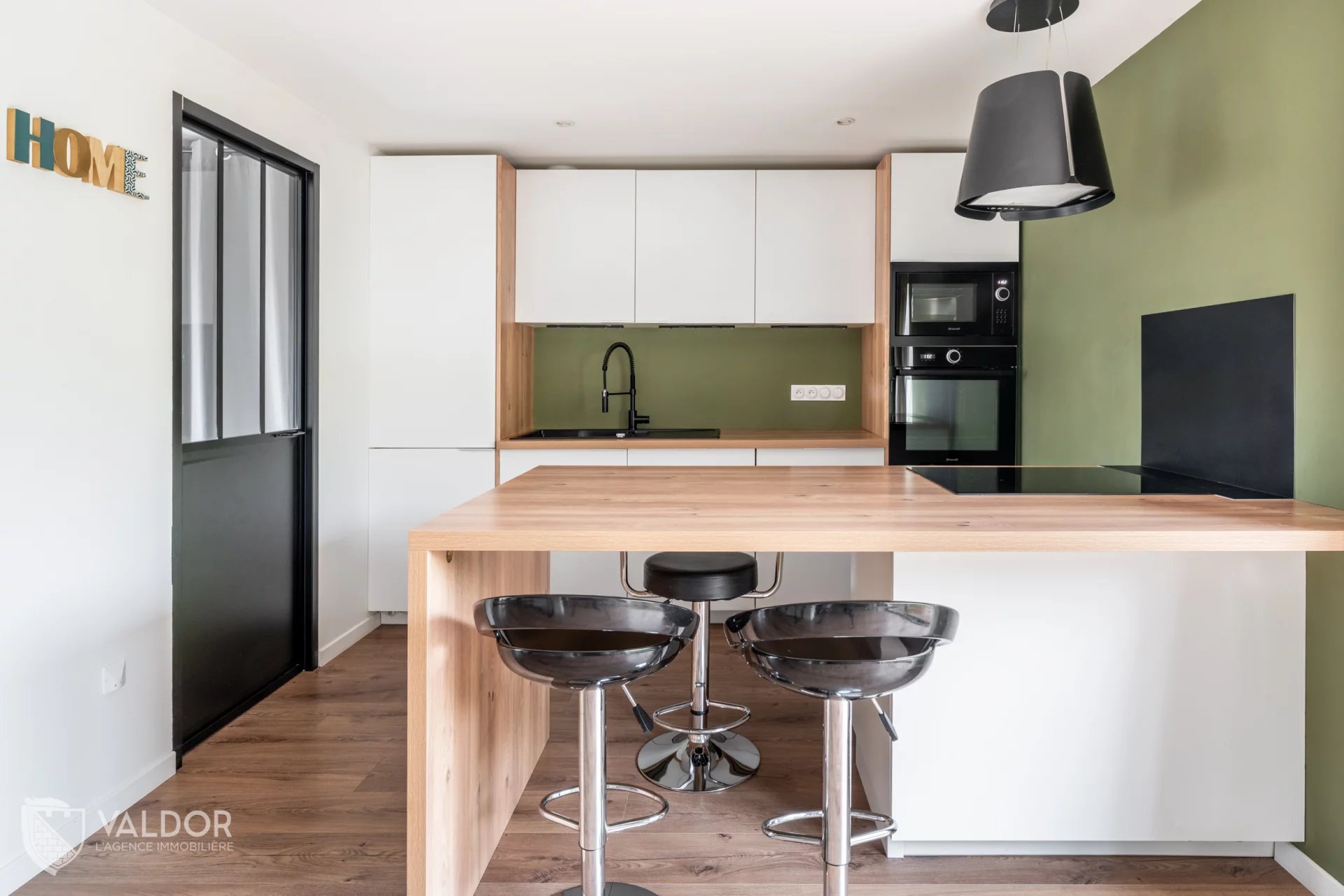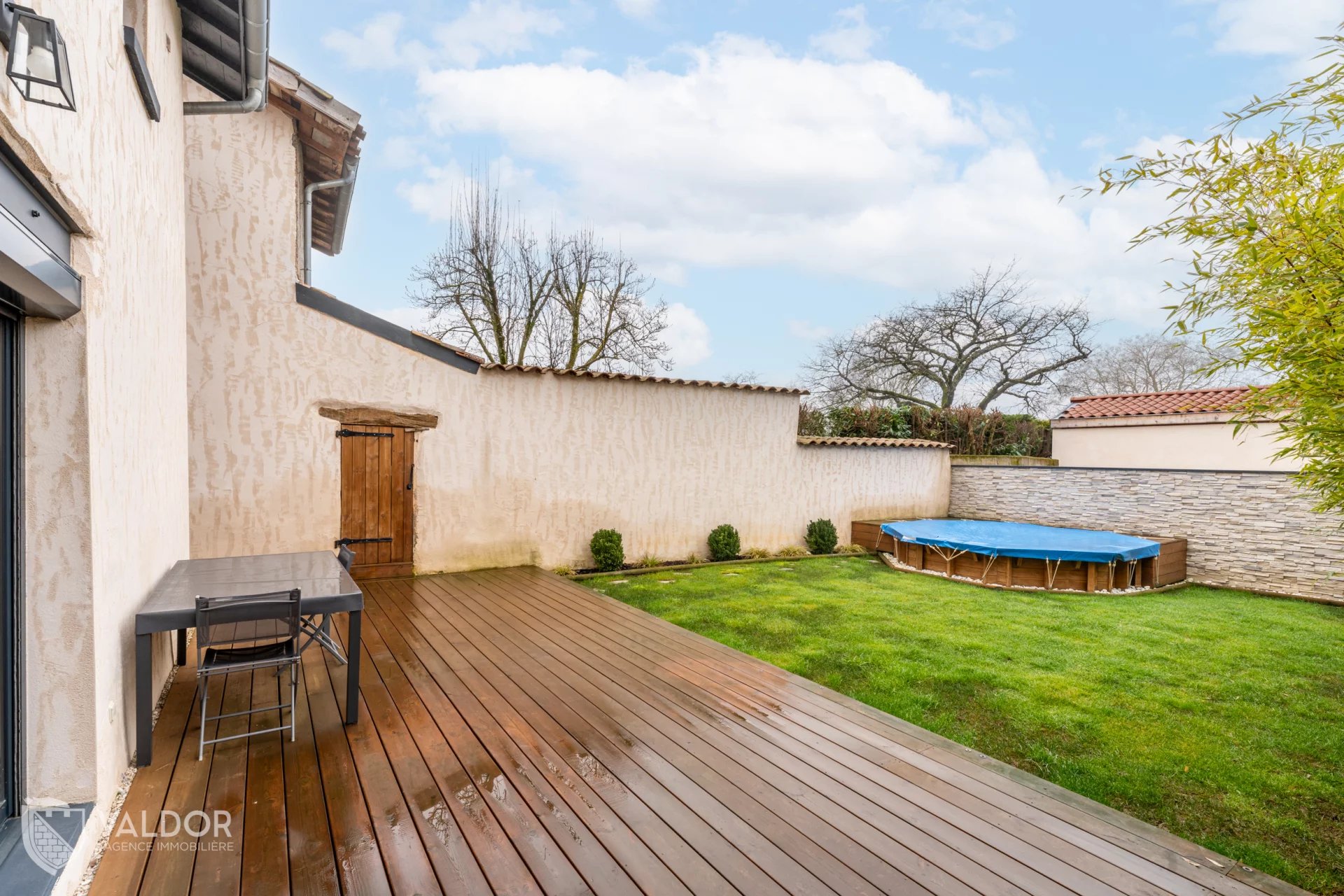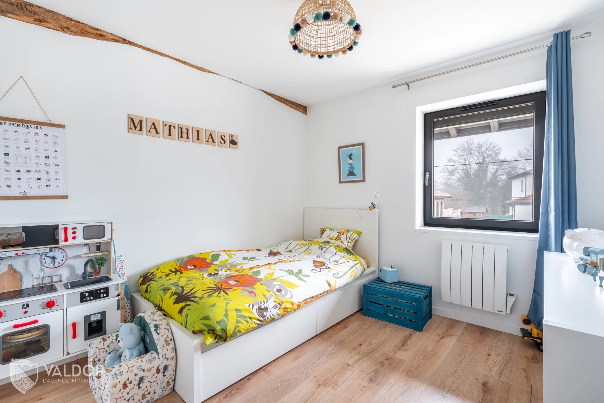 De plain-pied, vous profiterez d'une entrée desservant la cuisine ouverte, le séjour ainsi que la buanderie et les toilettes séparé. Un accès direct mène à la terrasse et au jardin.