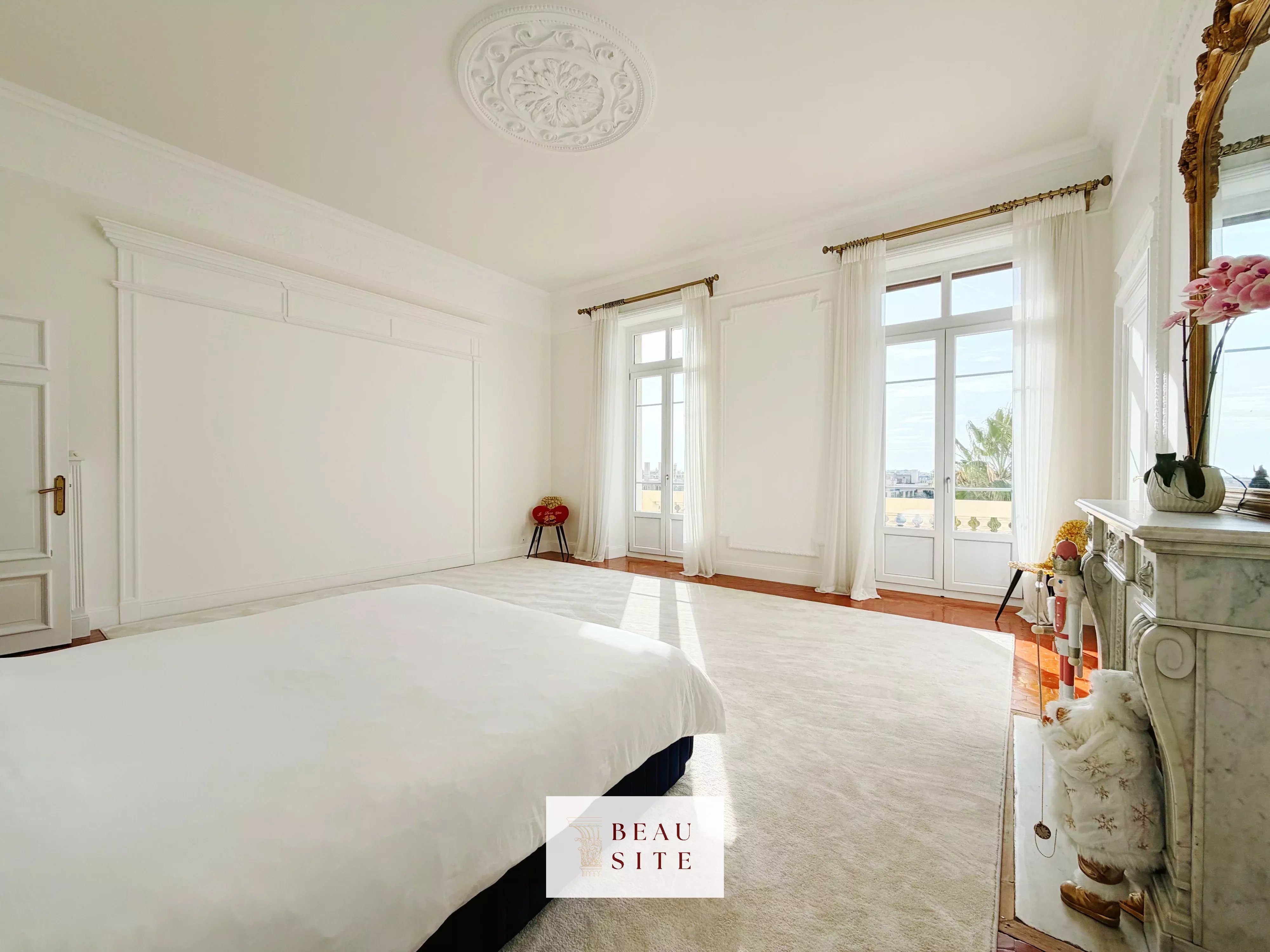 Nice - Cimiez : Appartement bourgeois 4 pièces d’exception EXCLUSIVITÉ. Situé au cœur du très recherché quartier de Cimiez, au sein du prestigieux Palais Majestic, classé monument historique, cet appartement bourgeois de 190 m² séduit par son élégance intemporelle et la qualité de ses prestations d’origine remarquablement conservées. Conçu par Jules Febvre en 1906, le Majestic est le plus grand hôtel de Nice, grâce à ses 175 mètres de long, 44 mètres de haut et 9 étages. Transformé en résidence en 1947, il reste l’un des palaces Belle époque les plus emblématiques de la ville de Nice. Dès l’entrée de l'appartement, vous serez séduit par les volumes généreux, la belle hauteur sous plafond (environ 4 mètres), les moulures et les cheminées, conférant à ce bien un cachet rare et authentique. L’appartement se compose d’une vaste entrée desservant une cuisine moderne indépendante, un salon de réception de 38 m², baigné de lumière grâce à ses larges fenêtres en arrondie, une suite parentale avec sa propre salle de bains, douche et toilettes, ainsi que deux autres grandes chambres de plus de 25 m2 chacune bénéficiant d’une seconde salle de douche avec toilettes. L'appartement bénéficie d'une luminosité remarquable grâce à sa vue dégagée en position dominante et son exposition plein SUD. Deux balcons filants accompagnent ce bien d'exception. Une buanderie complète cet espace avec praticité. À proximité immédiate du centre-ville et des commerces, et à seulement 20 minutes à pied de la Promenade des Anglais, ce bien offre un cadre de vie privilégié, alliant calme, prestige et accessibilité. Une grande cave saine vient parfaire ce bien d’exception. Les informations sur les risques auxquels ce bien est exposé sont disponibles sur le site Géorisques : georisques.gouv.fr