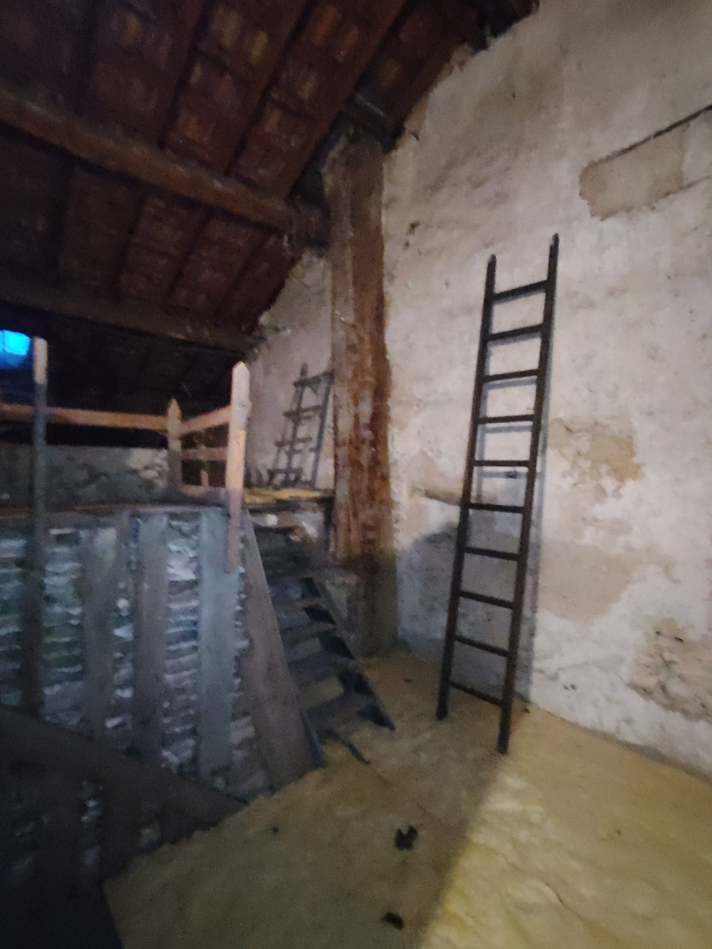 Maison de ville avec garage et terrain comprenant au rez de chaussée: un garage une cave et une piéce d'eau, sur le premier niveau spacieuse piéce de vie permettant un acces direct sur la terrasse et le terrain , une salle d'eau, une chambre, à l'étage superieur deux chambres et un grenier