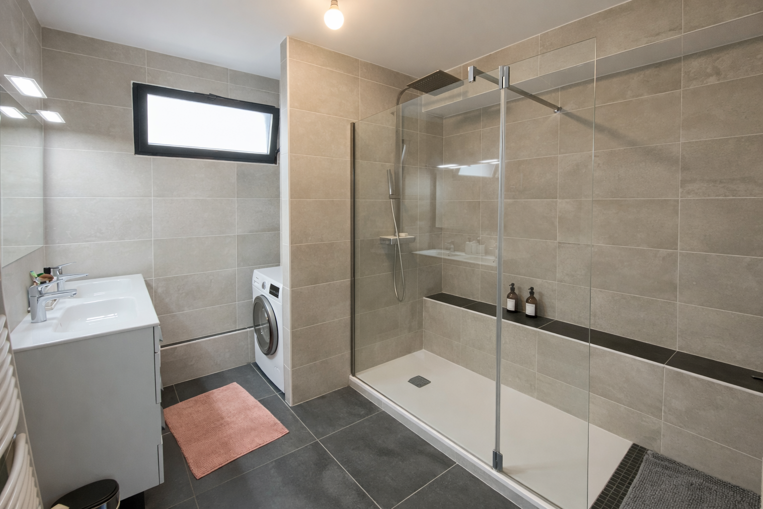 Vous bénéficierez également d'une salle de bain moderne de 8 m2, avec douche à l'italienne, ainsi que de WC séparés.