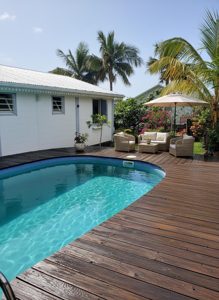 À La Possession, secteur Boeuf Mort, maison F4 avec piscine bâtie sur un terrain clos et arboré de 576 m2, comprenant au rez-de-chaussée un séjour de 33 m2, une cuisine aménagée, 2 chambres, une salle d'eau, un WC, une terrasse de 21 m2 et au niveau inférieur, totalement indépendant, une chambre de 21 m2 avec salle d'eau et WC et une surface habitable de 45 m2 à aménager.