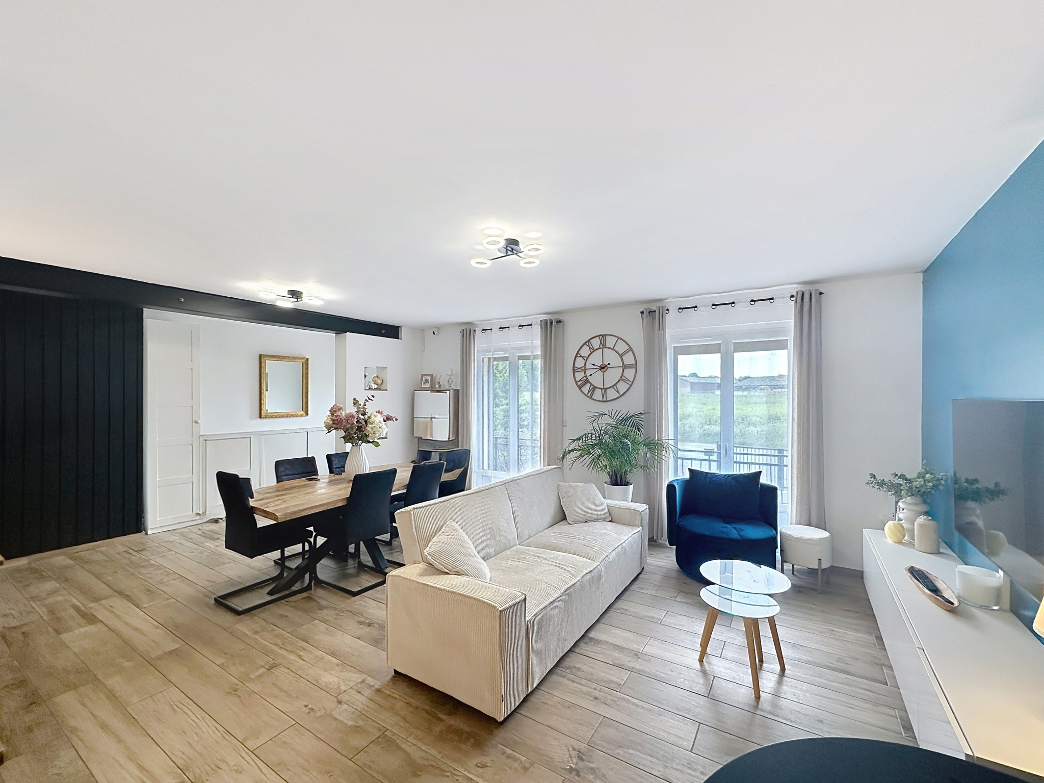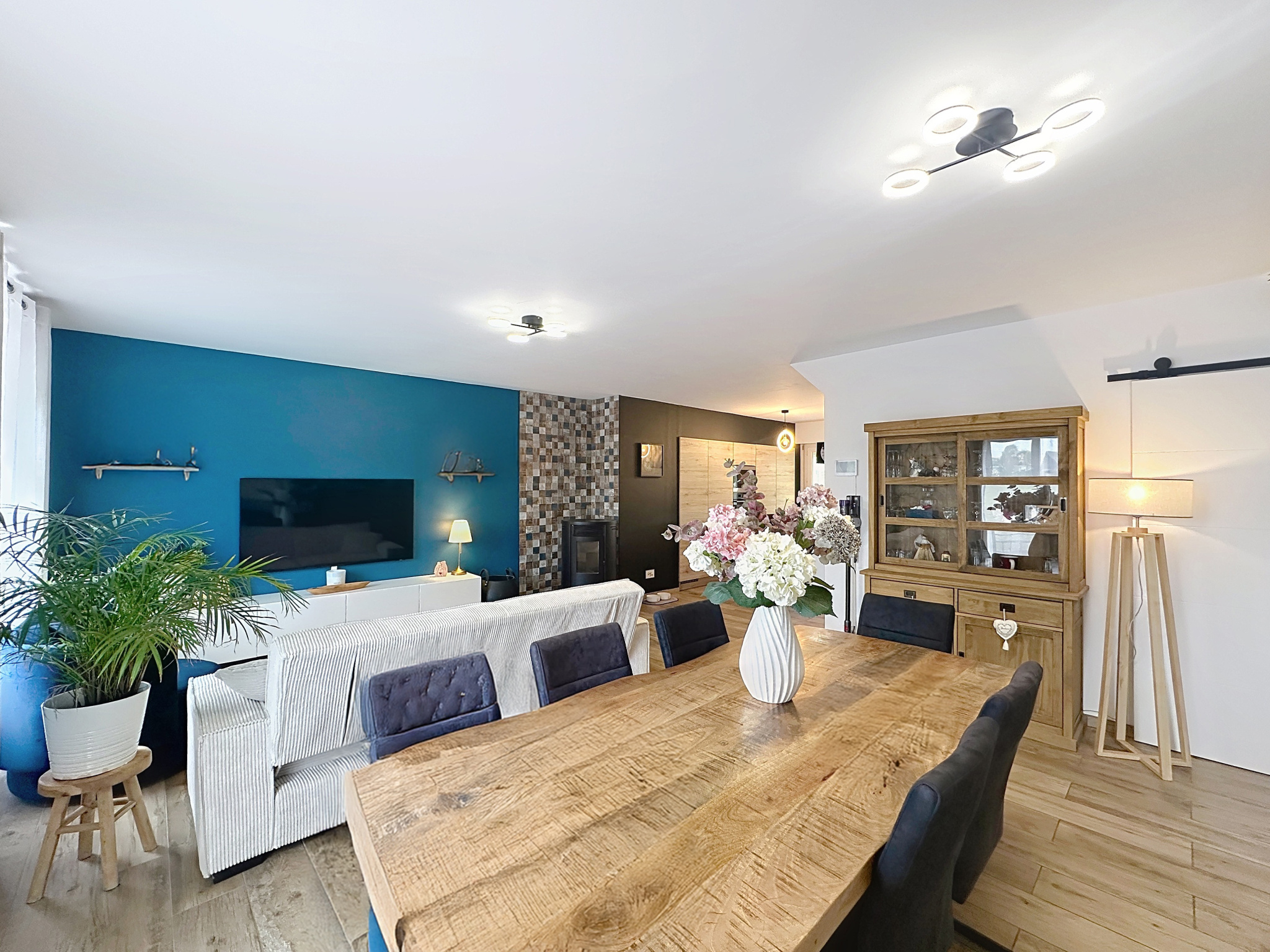 Dès l'entrée, vous serez immédiatement séduit par un spacieux séjour baigné de lumière, ouvert sur une cuisine moderne, aménagée et entièrement équipée de la marque Ixina, offrant un espace de vie convivial et chaleureux. Dans le prolongement, une véranda de 43m2 vient compléter le rez-de-chaussée, idéale pour profiter de la luminosité naturelle en toute saison.