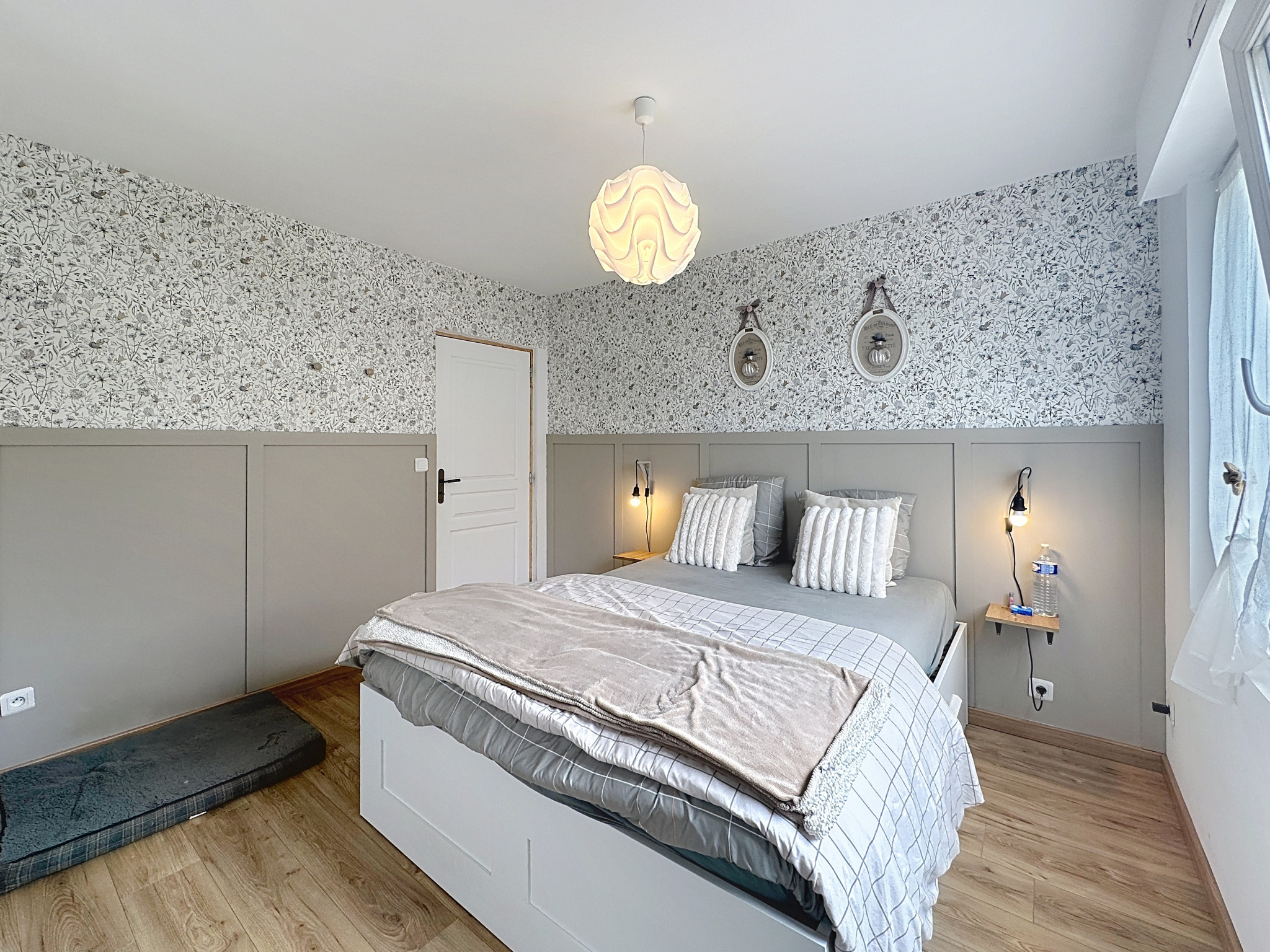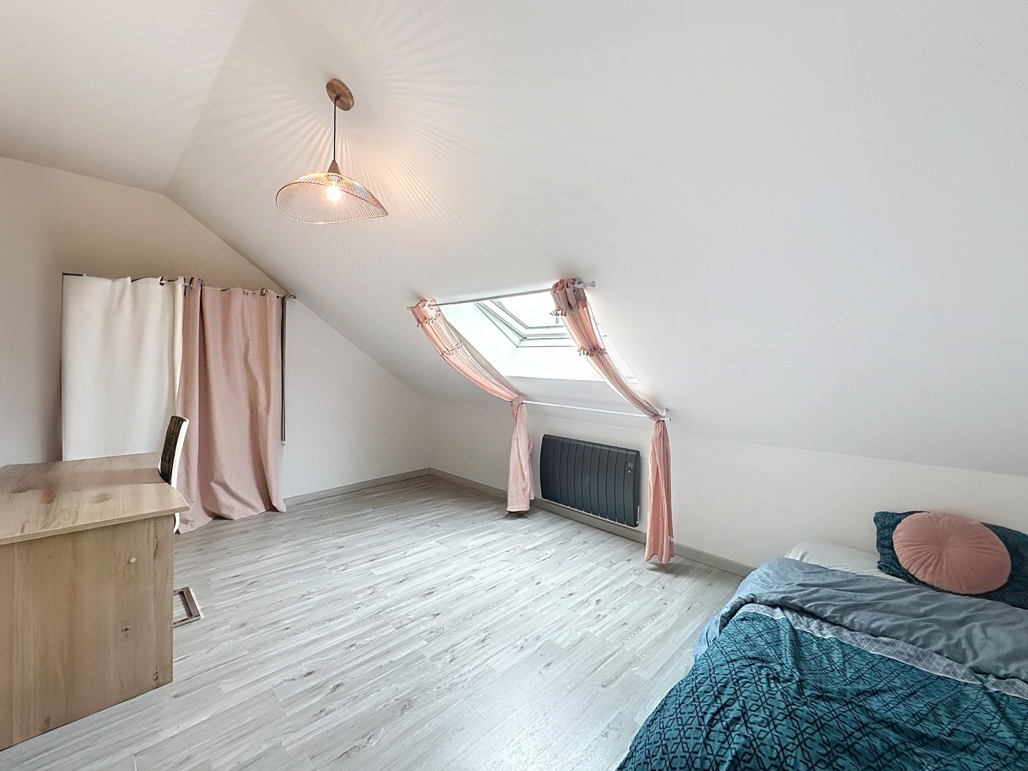 A l'étage, un large palier pouvant aisément faire office de bureau ou d'espace de détente dessert deux autres chambres de 12m2, toutes deux équipées de dressings intégrés, ainsi qu'une salle de bains confortable.