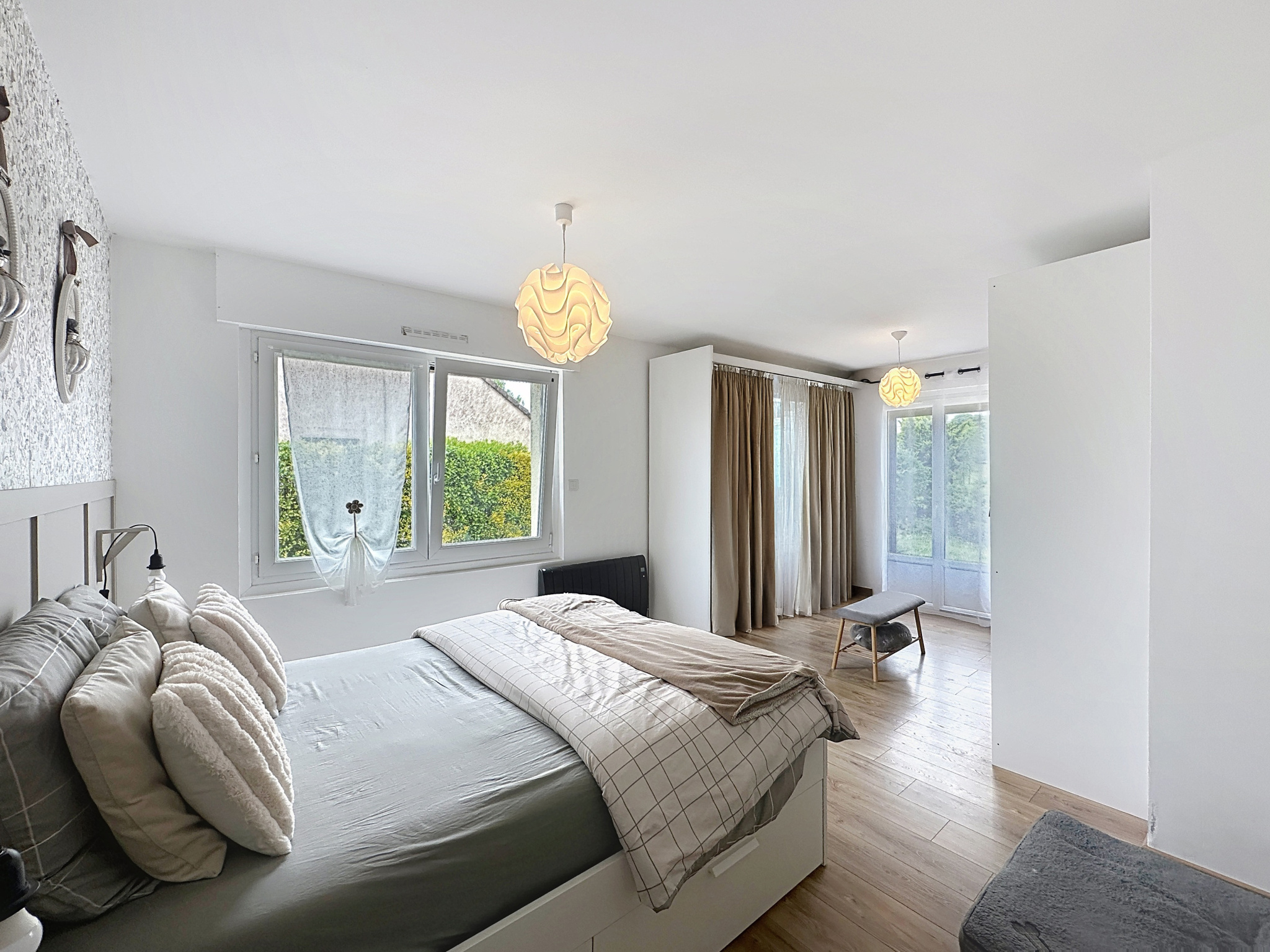 Le rez-de-chaussée dispose également d'une salle d'eau, d'un wc séparé, ainsi que de deux chambres de 19m2 et 10m2, dont une avec dressing, permettant une vraie vie de plain-pied.