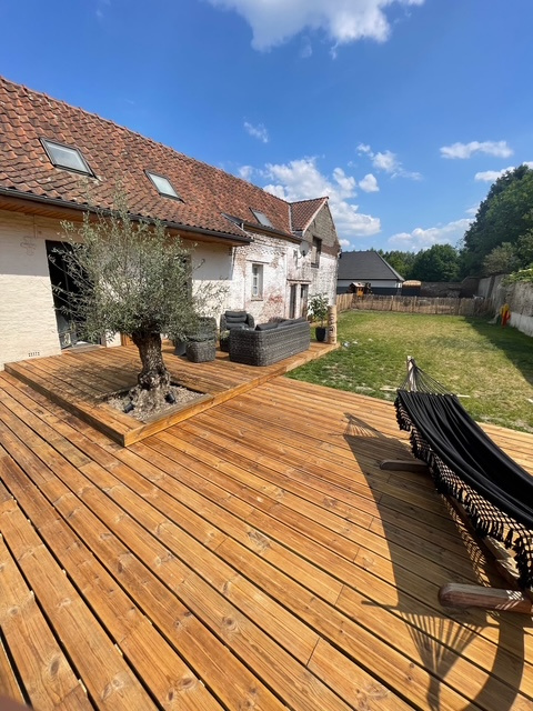 A l'extérieur une grande terrasse en bois donnant sur un vaste jardin vous permettront de réaliser d'agréables moments en famille.