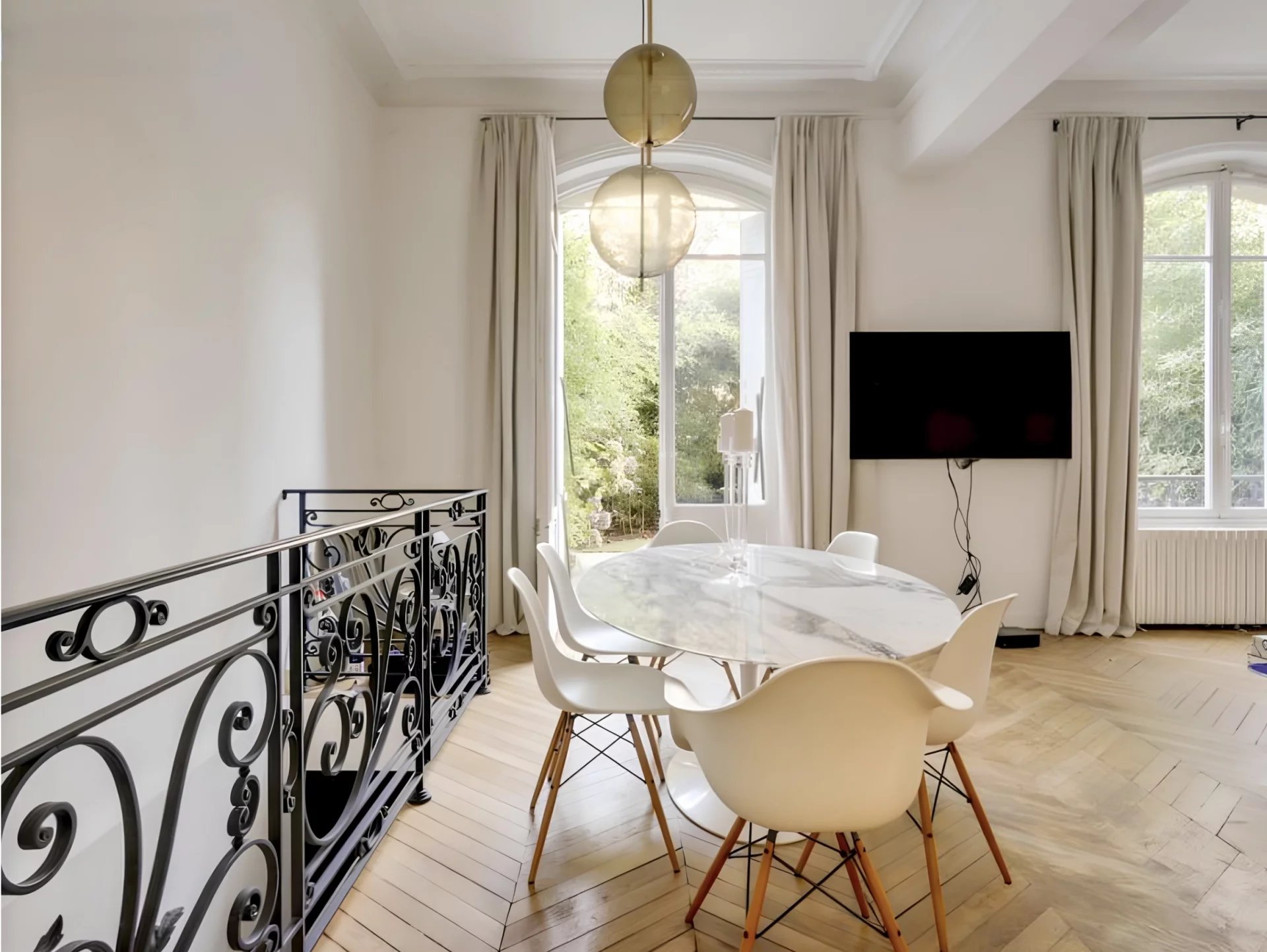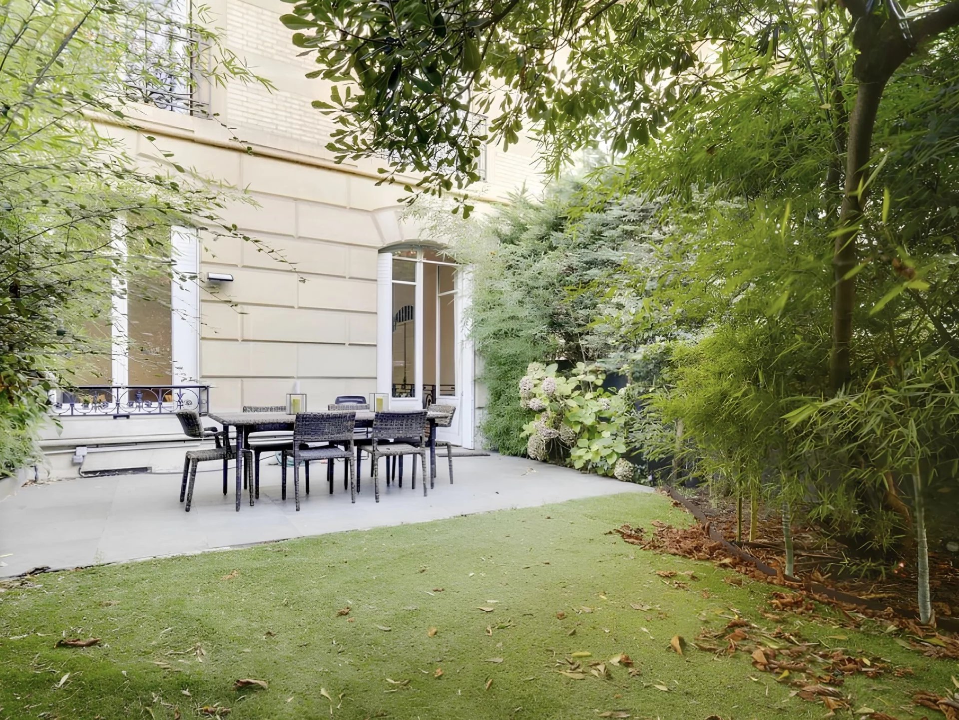 Appartement d'exception Avenue Georges Mandel - Rez-de-jardin - 70 m² + 96m² de jardin Situé au rez-de-jardin d'un immeuble haussmannien, en plein cœur du 16ème arrondissement, à proximité directe de la Place Trocadéro et de la Tour Eiffel. Sectorisation rare et très demandée. L'appartement de 3 pièces est composé d'un vaste double séjour de plus de 42m² donnant sur un beau jardin arboré et très bien entretenu. Le bien dispose également d'une galerie d'entrée, une chambre, une cuisine équipée. Au souplex nous retrouvons un dressing, une salle de bain, ainsi que des toilettes séparées. En excellent état, l'appartement a été refait à neuf. Calme et lumineux, il est à proximité immédiate des commerces et des transports. Sensation d'être dans une véritable maison en plein Paris. La copropriété est saine, avec des parties communes biens entretenues et de bon standing. Gardien présent dans l'immeuble. Une cave complète ce bien. Copropriété : Aucune procédure en cours.