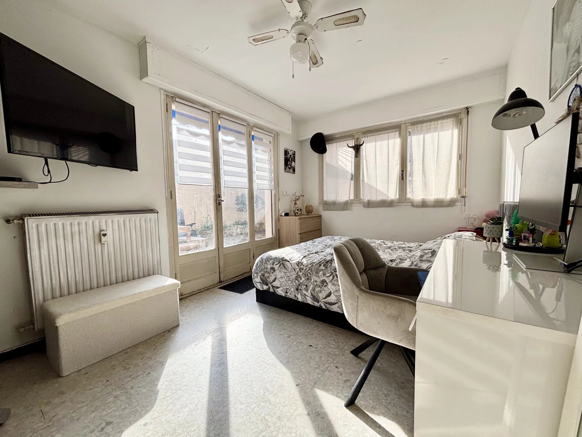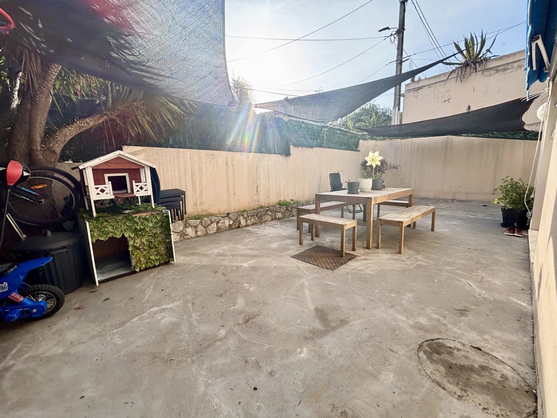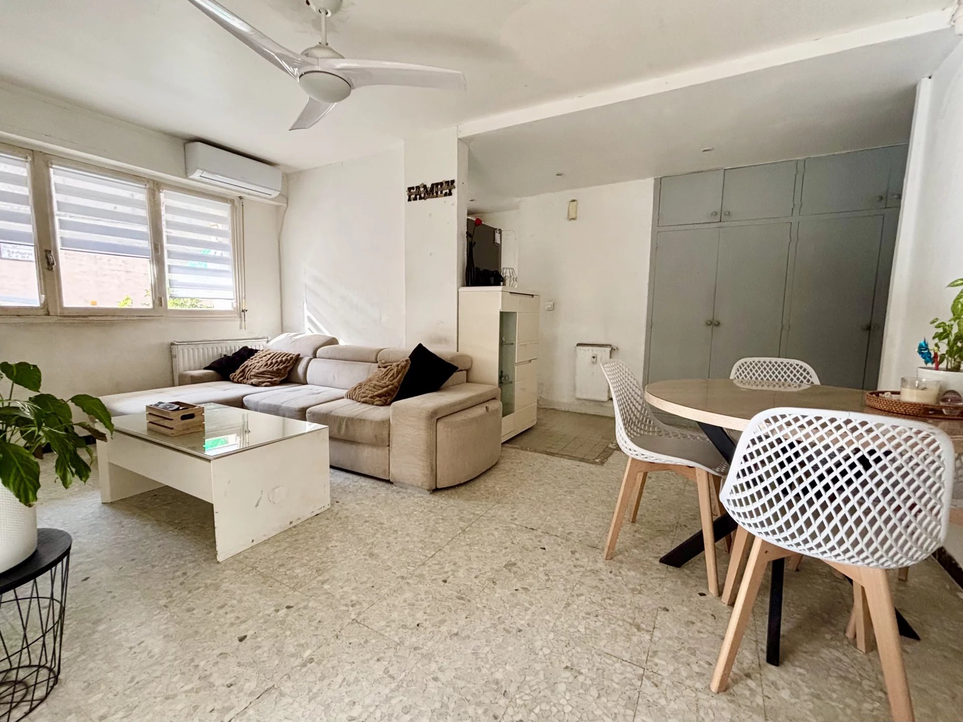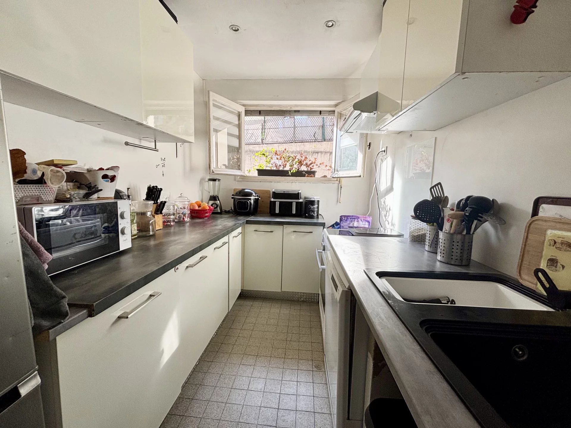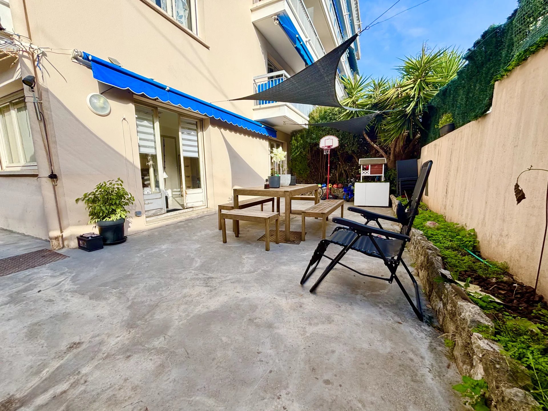 Idéalement situé à Antibes, à seulement quelques minutes à pied du centre-ville et à proximité immédiate des commerces et commodités au calme, découvrez cet appartement 3 pièces en rez-de-jardin, en angle et bénéficiant d’une exposition sud et sud-ouest, offrant une belle luminosité tout au long de la journée. Il se compose d’une entrée, d’un séjour avec cuisine ouverte, de deux chambres, d’une salle de bains ainsi que d’un WC indépendant avec coin buanderie. Le véritable atout de ce bien : une terrasse/jardin d’environ 75 m², idéale pour profiter du soleil, recevoir vos proches ou créer un espace détente au calme. Des travaux de rafraîchissement sont à prévoir, offrant un beau potentiel de personnalisation selon vos goûts et vos envies. Côté stationnement, vous bénéficiez de deux places de parking ainsi que d’un garage, un confort rare dans le secteur. Un appartement fonctionnel, lumineux et parfaitement situé, idéal pour une résidence principale comme pour un investissement locatif. À visiter sans tarder ! Bien en copropriété de 144 lots. Aucune procédure en cours. Les informations sur les risques auxquels ce bien est exposé sont disponibles sur le site GéoRisques : georisques.gouv.fr