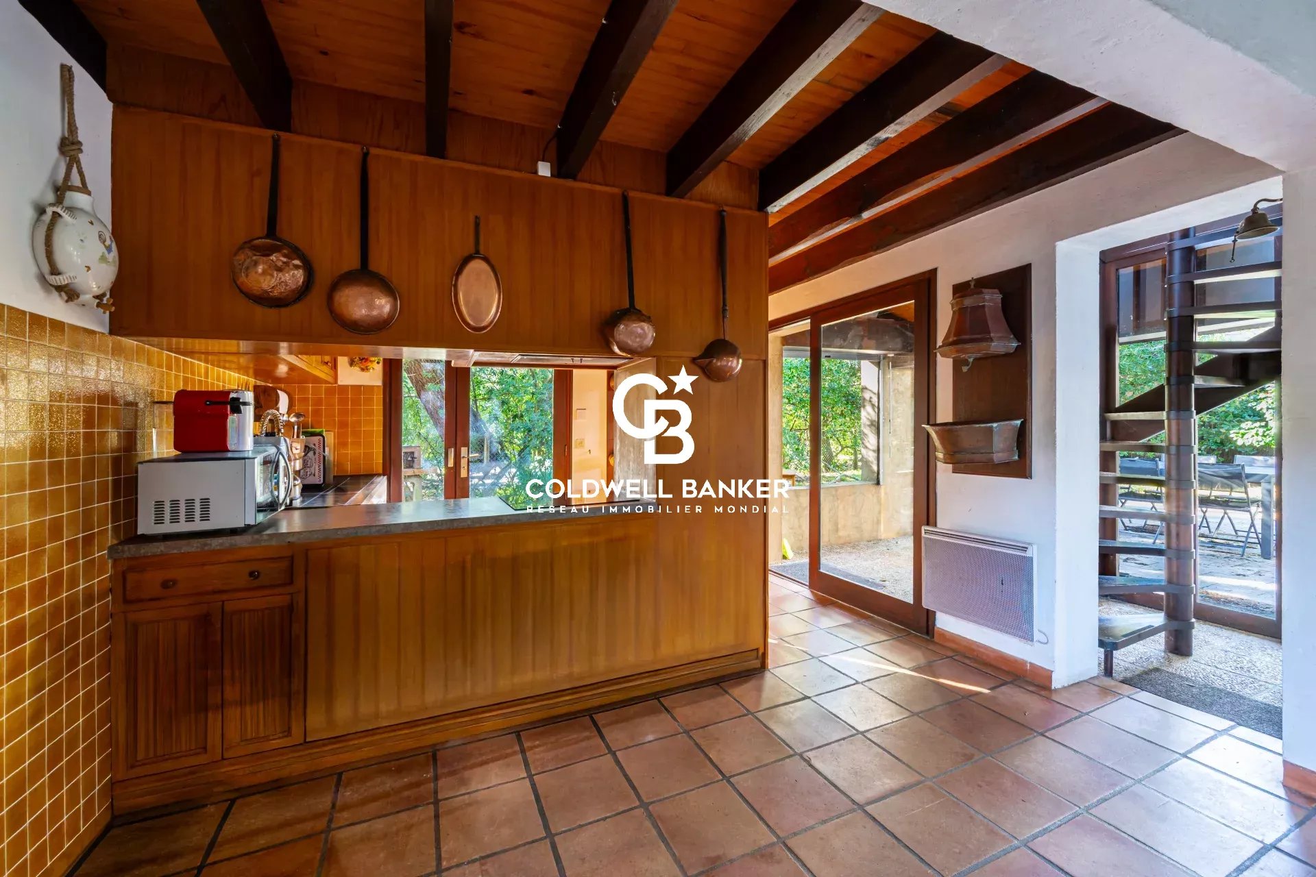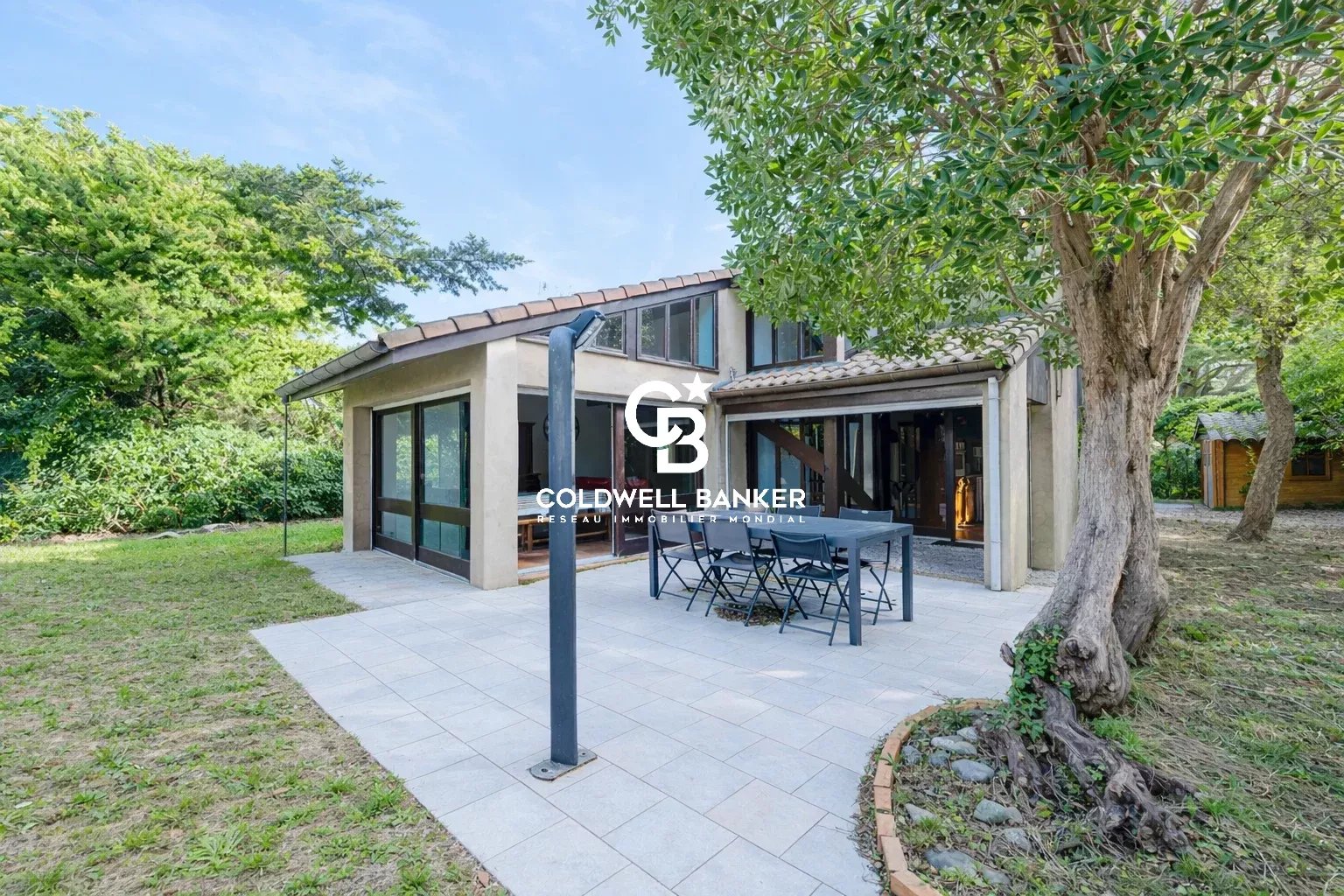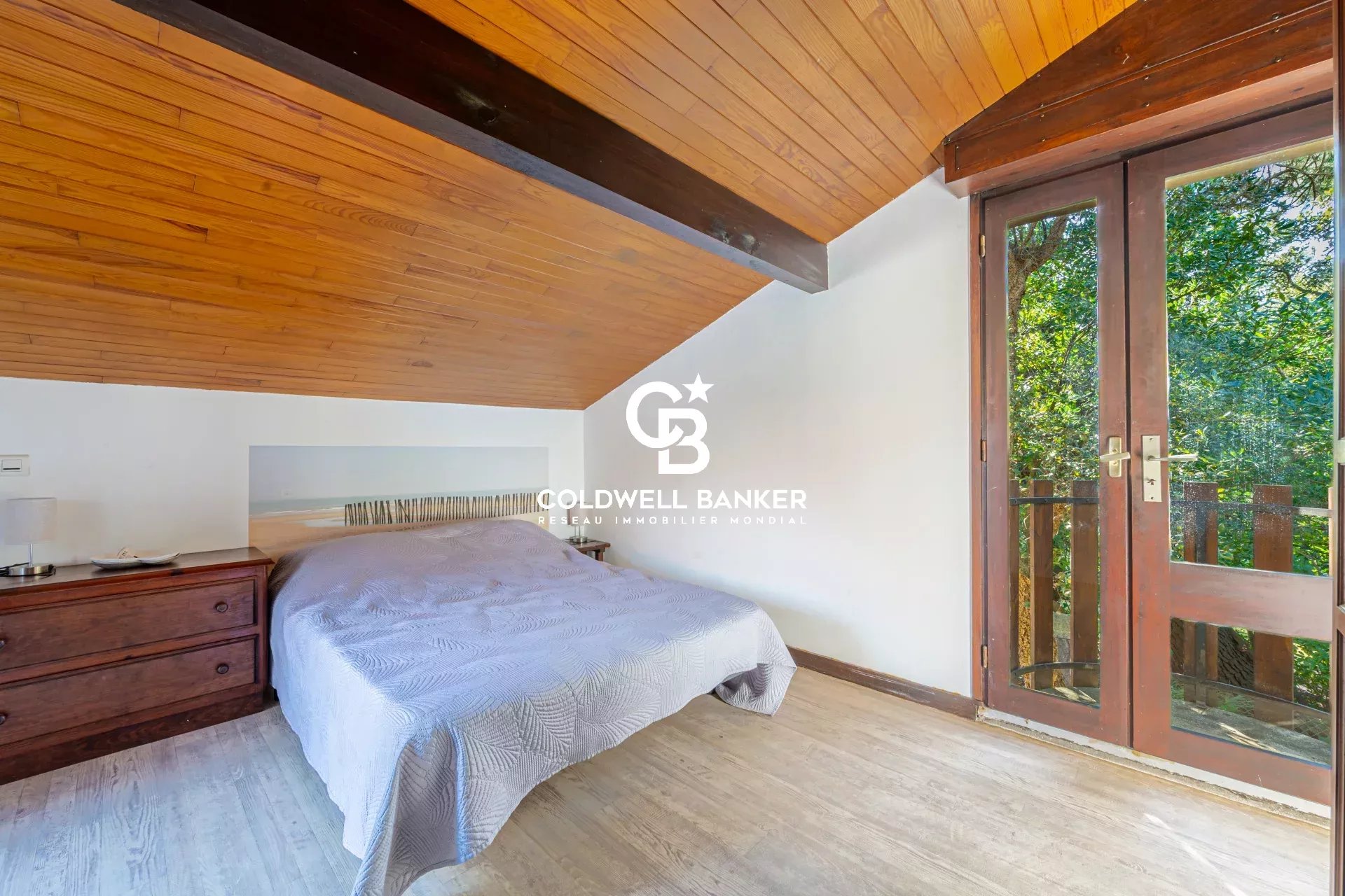 Idéalement située dans l’un des quartiers les plus recherchés d’Hossegor, à quelques pas de la plage, du centre et du lac, cette élégante villa d’architecte de 1977 offre un cadre de vie privilégié. D’environ 97 m², elle propose au rez-de-chaussée une lumineuse pièce de vie ouverte sur une vaste terrasse, une petite cuisine ouverte, une chambre et une salle d’eau. Un patio intimiste mène à un cellier, facilement aménageable en chambre supplémentaire. À l’étage, trois chambres avec balcons, deux salles d’eau ainsi qu’un comble offrant un espace de rangement complètent l’ensemble. Le jardin clos de 450 m², parfaitement à l’abri des regards, permet de profiter pleinement de moments en extérieur dans un environnement calme et préservé. Vous apprécierez la situation exceptionnelle de cette maison, entre canal et océan, avec un accès direct à pied aux plages, aux commerces et aux pistes cyclables. Adaptée à une résidence principale comme à une maison de vacances, elle accueille idéalement famille et amis dans un cadre rare. Ce bien vous est proposé par Emma MARTIN, Consultant en Immobilier de Prestige (RSAC 522 318 312) Prix de vente : 1 259 000 HAI honoraires inclus et à charge acquéreur pour un montant de 59 000 euros soit 4,92 %. Prix hors honoraires : 1 200 000€. DPE E (318) GES B (10) Estimation des coûts annuels d'énergie du logement entre 2350€ et 3210€. Les informations sur les risques (naturel, miniers, technologiques) auxquels ce bien est exposé sont disponibles sur le site Géorisques : www.georisques.gouv.fr Retrouvez tous nos biens sur hossegor.immoba.fr