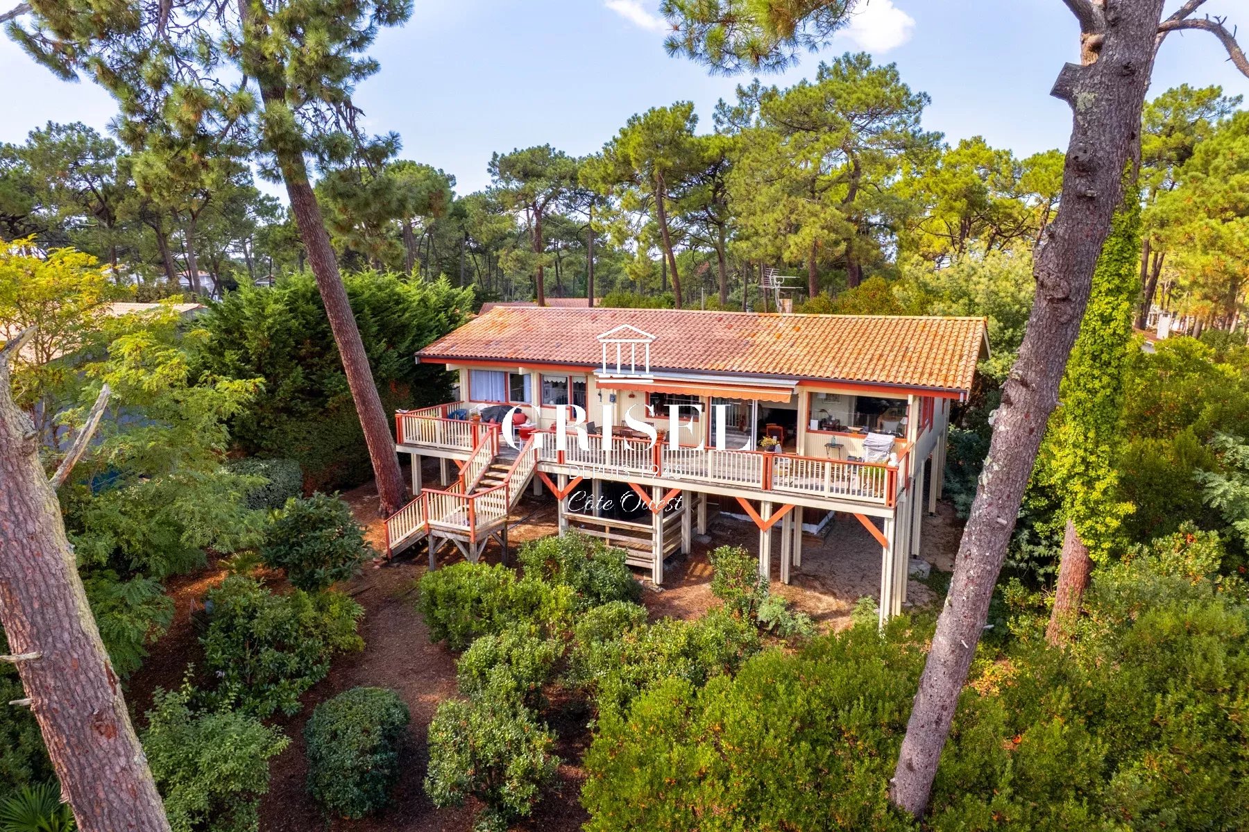 Découvrez cette magnifique villa nichée à Lège-Cap-Ferret, offrant un cadre de vie unique au cœur de la nature. Un espace généreux et lumineux Avec ses 8 pièces dont 6 chambres, cette demeure séduit par ses volumes spacieux et sa luminosité naturelle. Le séjour avec cheminée invite à partager des moments chaleureux en famille ou entre amis. Un extérieur préservé et convivial À l’extérieur, un jardin soigneusement entretenu grâce à son système d’arrosage intégré assure une végétation luxuriante toute l’année. Une vaste terrasse en bois domine la nature environnante et offre un aperçu sur le bassin, idéale pour des instants de détente ou de convivialité. Le terrain piscinable permet d’imaginer un espace supplémentaire de bien-être et de loisirs, parfaitement intégré à ce cadre privilégié. Un cadre paisible et rare Implantée dans un environnement calme et verdoyant, cette villa conjugue élégance et sérénité. Sa proximité avec la nature et son architecture raffinée en font une opportunité rare sur le marché immobilier local. Une demeure d’exception à découvrir sans tarder : alliance parfaite entre confort, espace et art de vivre au Cap-Ferret.