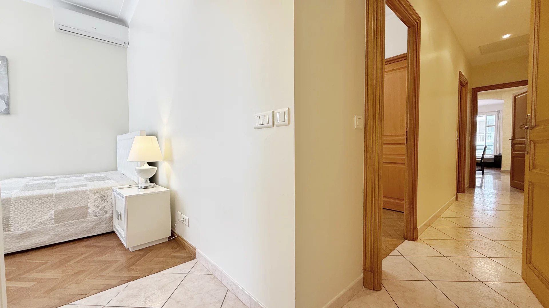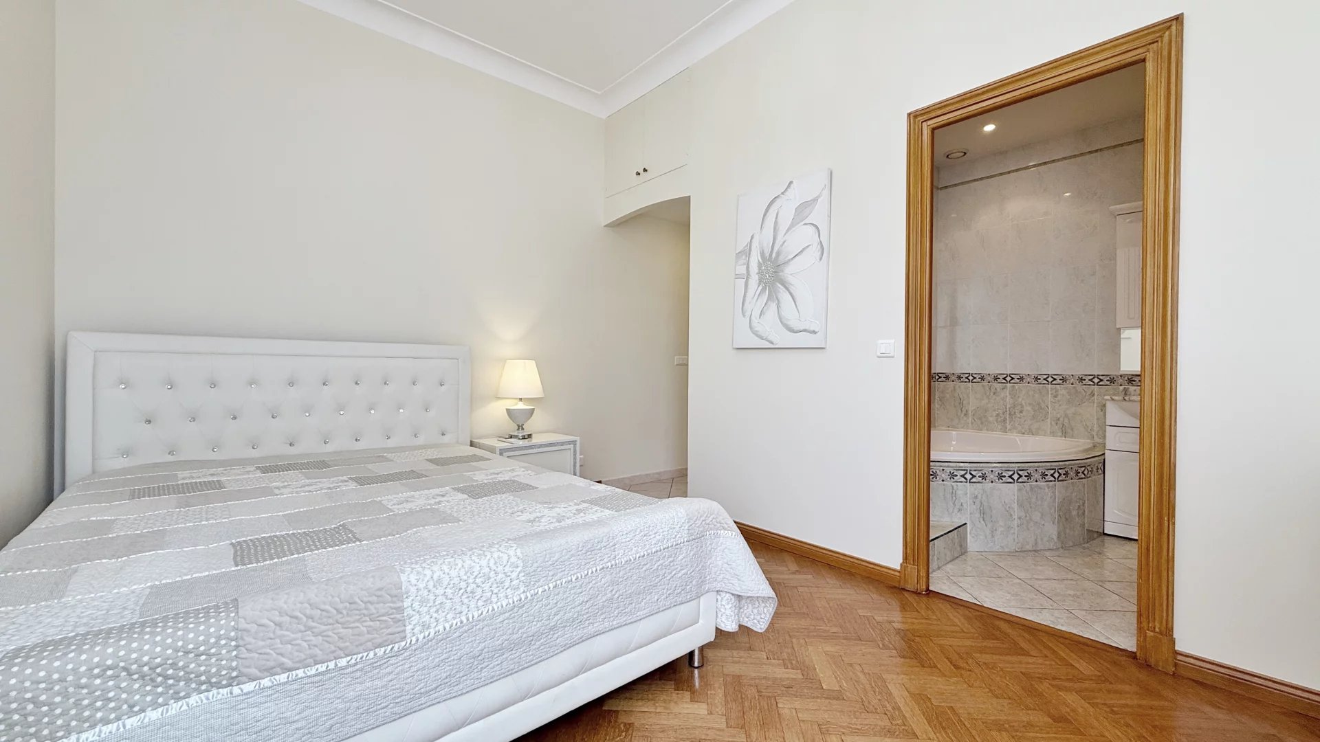 L’espace nuit propose deux grandes chambres au calme, propices au repos, ainsi que deux salles de bains et deux WC, apportant un réel confort de vie. Les prestations mettent en valeur le charme de l’ancien tout en intégrant des équipements contemporains : parquet en point de Hongrie, hauts plafonds, climatisation dans chaque pièce, double vitrage assurant une excellente isolation. L’ensemble se situe dans un immeuble de standing, sécurisé et avec gardien.
