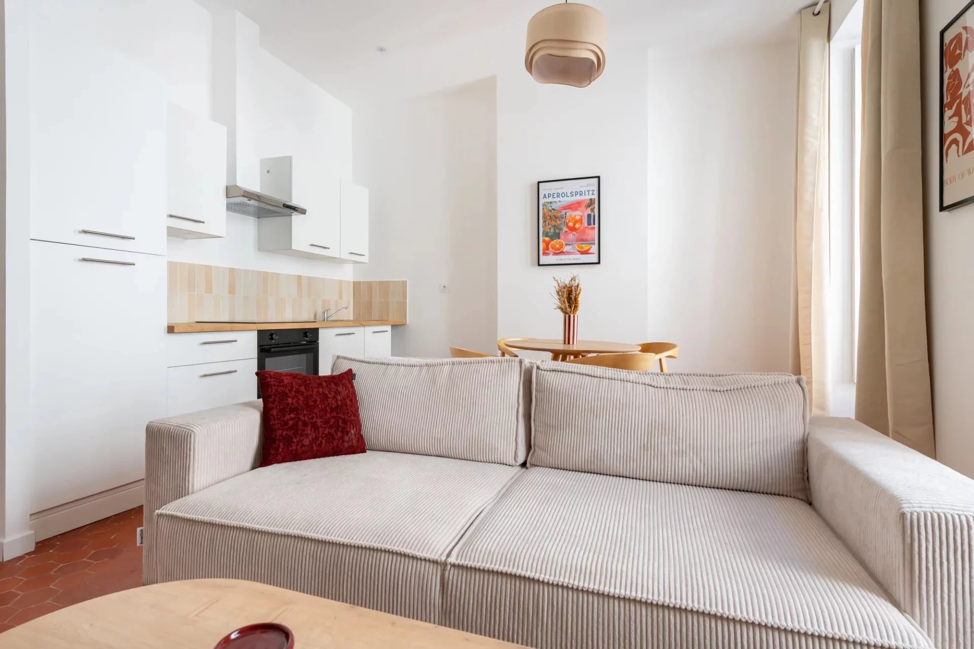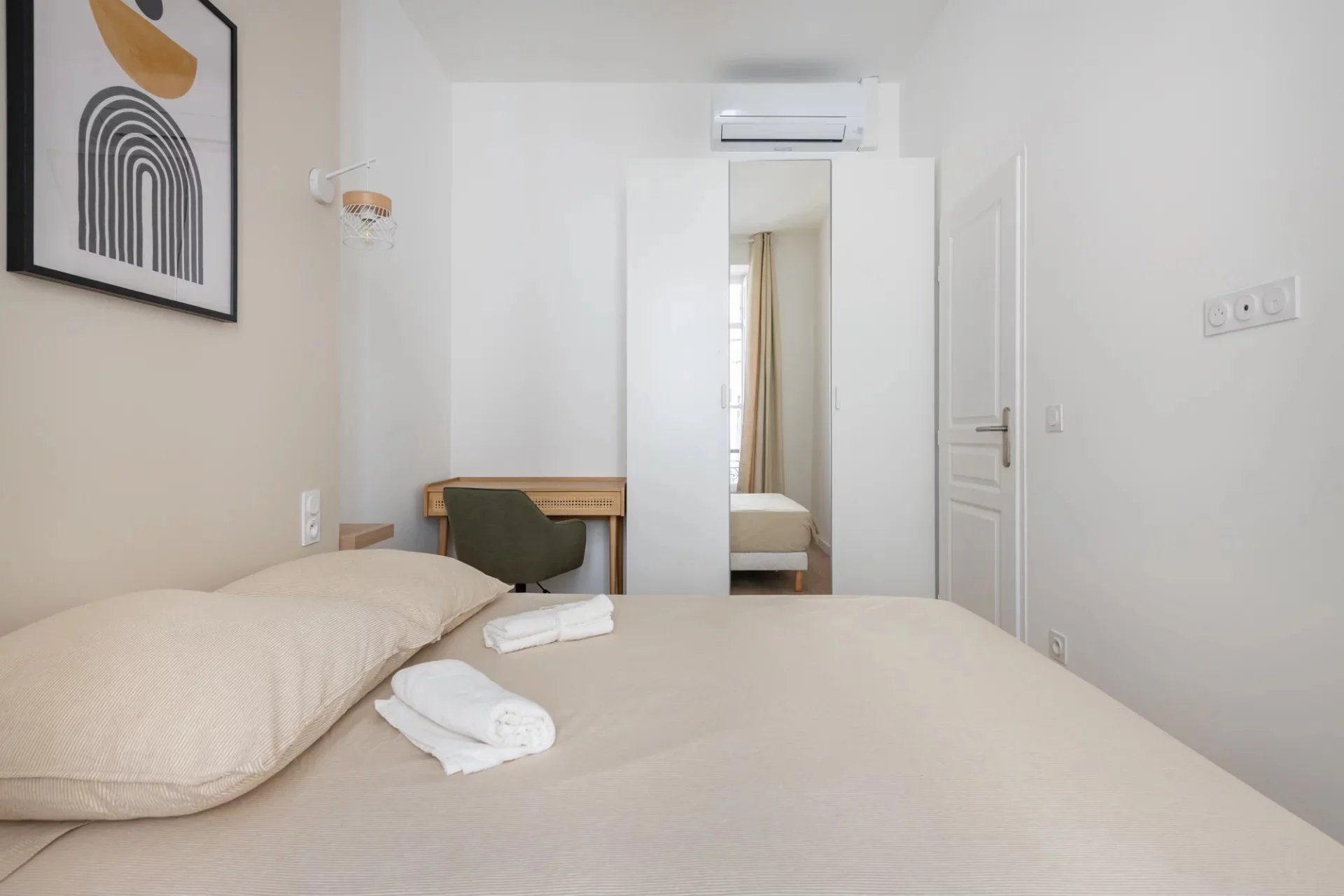 Vestizy vous propose A Louer Castellane/Prado 13006 Marseille un sublime T3 de 55m2 entièrement refait à neuf et meublé au goût du jour au premier étage coté cour au calme. Cet appartement "coup de coeur" entièrment climatisé alliant le charme de l'ancien et le contemporain se compose de deux belles chambres, d'un grand séjour , d'une cuisine ouverte entièrement aménagée et équipée ainsi que de WC indépendants. Cet appartement a été rénové aux dernières normes (œuvre - plomberie - électricité). Les matériaux et la décoration ont étés soigneusement sélectionnés et conçus par un architecte d'intérieur. Par ailleurs il est baigné de lumière et possède de beaux volumes. L'appartement se situe dans le très prisé quartier de Castellane / Paradis, proche de toutes les commodités, universités, des commerces, du centre ville et des accès routiers à proximité directe de l’appartement de la nouvelle Place Castellane ainsi que du tramway. Ce bien est équipé de : Séjour : - Canapé 3 places - Table basse - Tapis - Table + 4 chaises - TV LED 4K 108cm - Lustre et spots Chaque chambre dispose de : - Lit 2 places 140x200 avec housse de lit protectrice deux oreillers une couette 240x200 (draps fournis) - Placards de rangements - 1 bureau et sa chaise - Fenêtre double vitrage et climatisation Cuisine : - Plaque 4 feux vitrocéramique - Réfrigérateur / congélateur grand format encastré - Four chaleur tournante - Four micro-ondes - Lave Vaisselle - Hotte - Jeu d'ustensiles de cuisine complet Salle de bain : - Douche - Vasque - Sèche-serviettes - Machine à laver Des draps et serviettes sont fournis lors de votre arrivée vous n'avez donc plus qu'à poser vos valises et vous installer! Bien situé, au 1er étage d'un immeuble marseillais. Eau froide, entretien des communs inclus dans les charges, il est disponible le 25/01/2026 Vous serez séduits par les prestations de ce bien exceptionnel et rare à la location dans se secteur privilégié. Honoraires de location : 715€ TTC dont 165€ pour l'état des lieux.