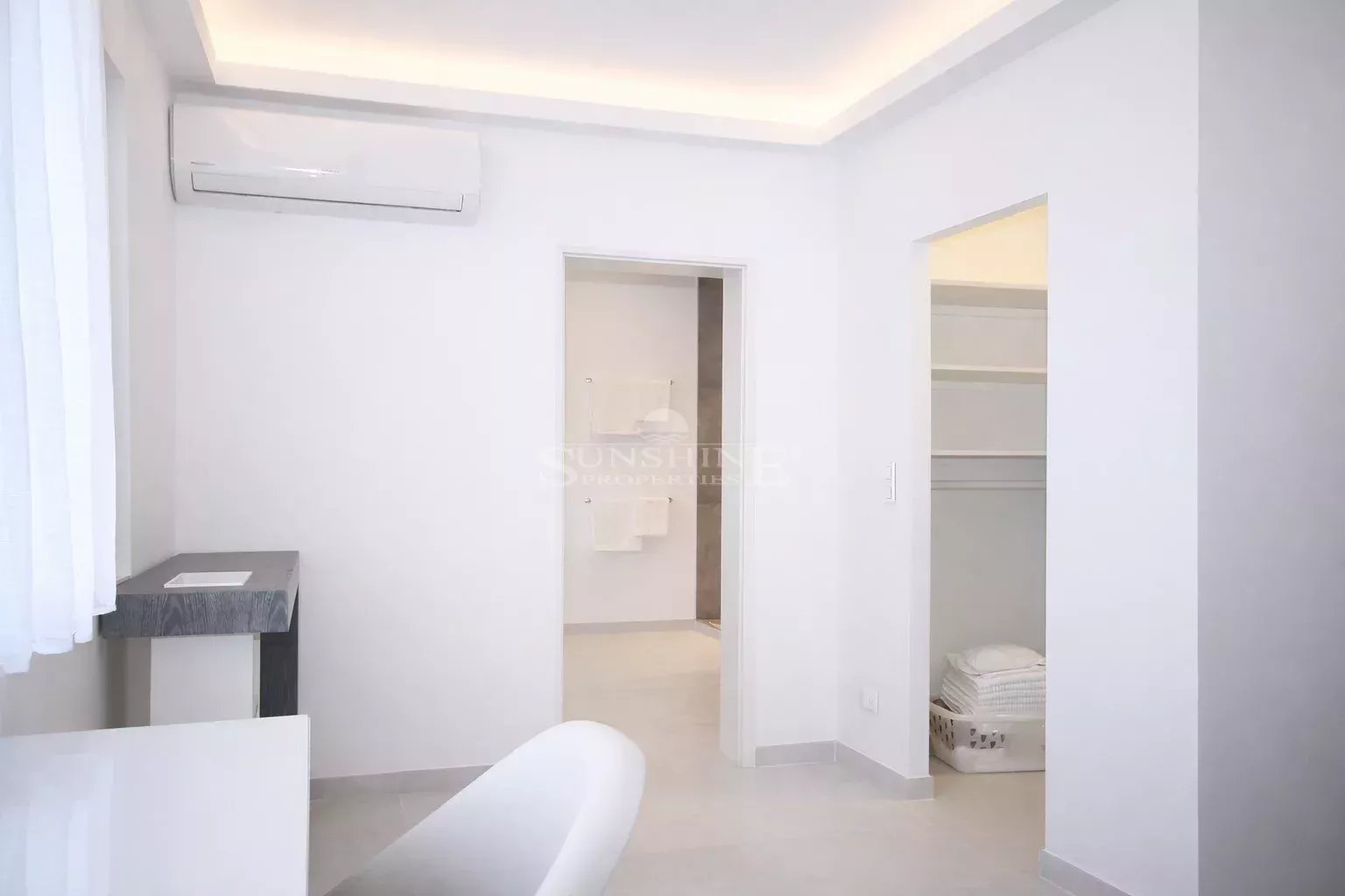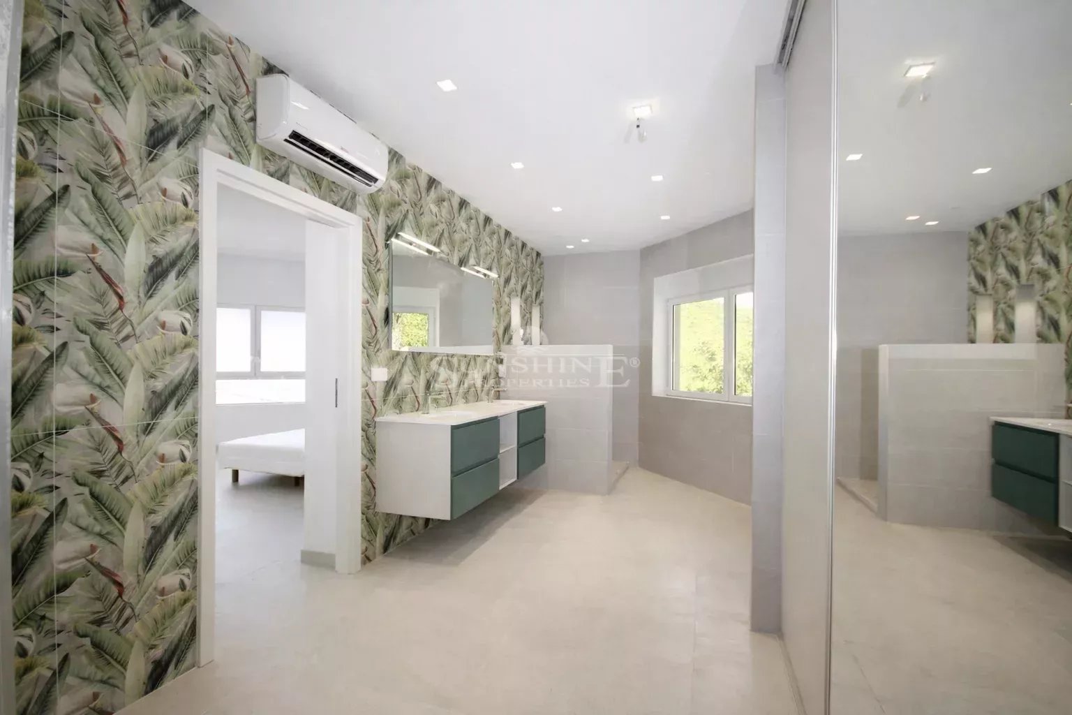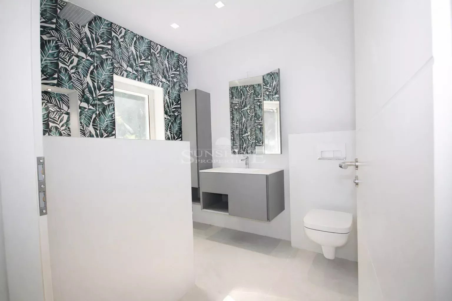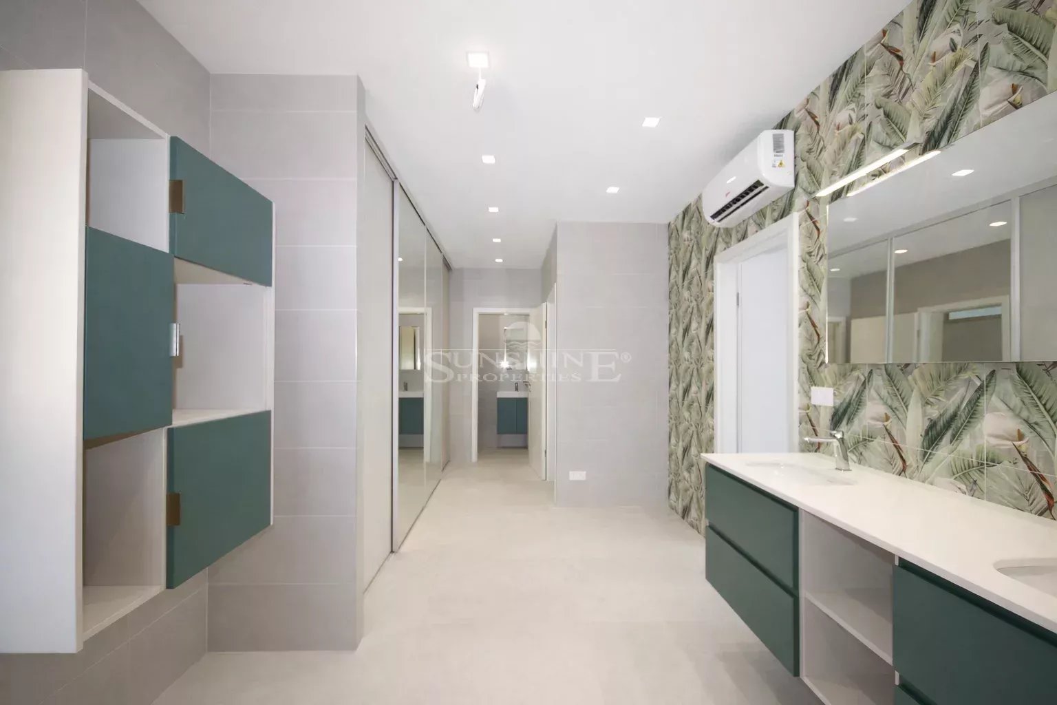 The main villa features 4 spacious bedrooms and 4 elegant bathrooms, complemented by an additional flexible room ideal for a private office, wellness studio, or gym. Expansive open-plan living and dining areas are enhanced by high ceilings and floor-to-ceiling sliding glass doors, creating a seamless flow between indoor and outdoor spaces while filling the home with natural light. Sleek contemporary finishes and soft neutral tones provide a sophisticated, timeless ambiance throughout.