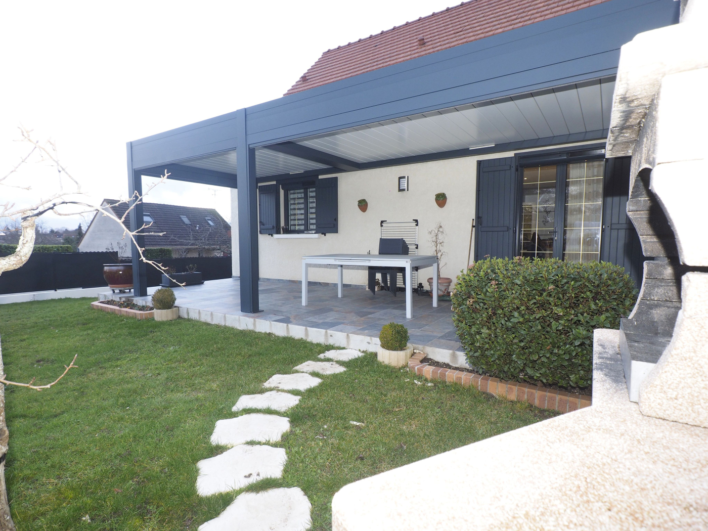 Pergola neuve (lames et stores motorisés, rampe à leds intégrée)