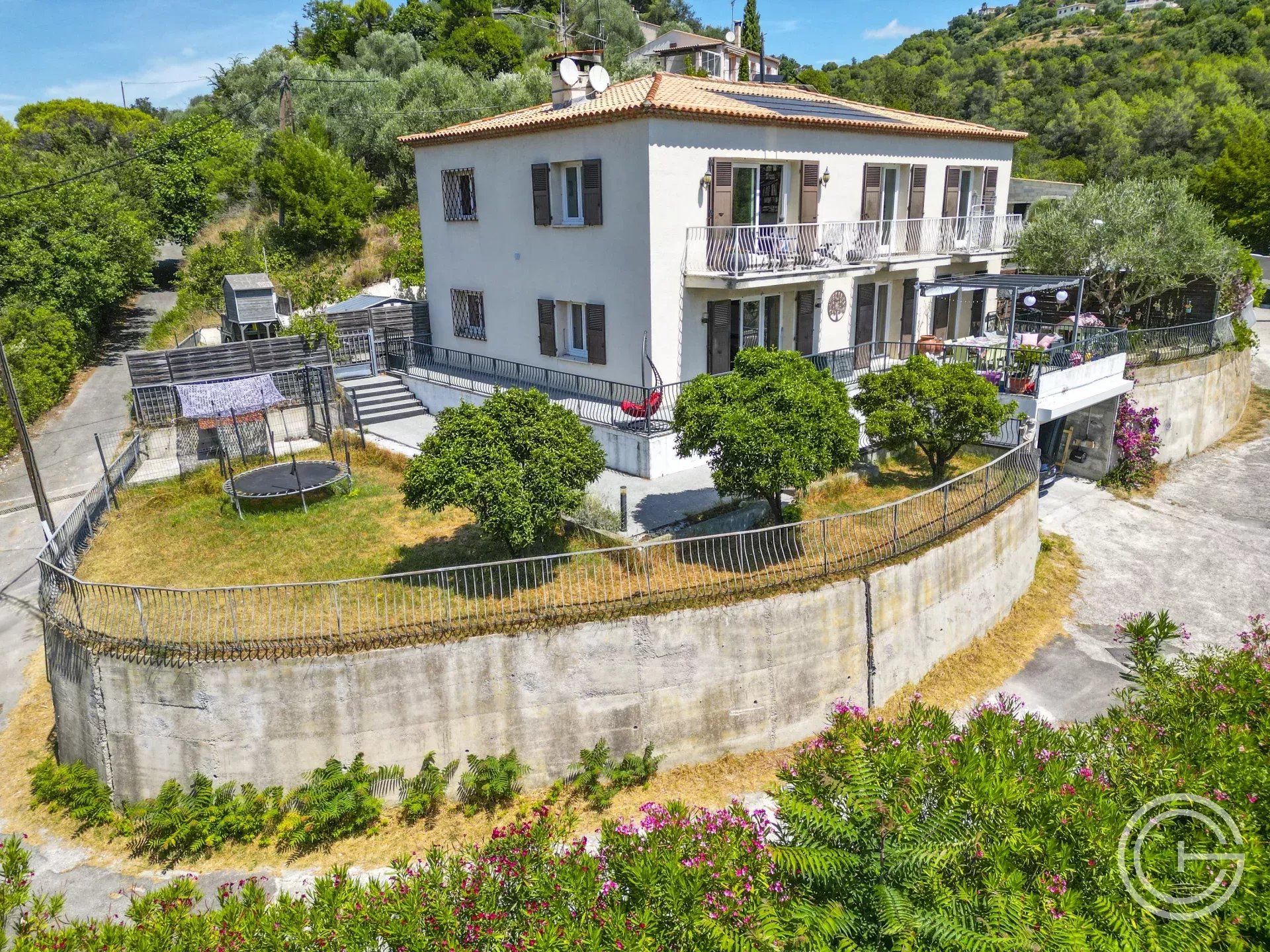 Bas de VILLA 4 pièces 114m² LC (277.30m² au total) Jardin / Terrasse + Grand garage - NICE Saint Pancrace ImmoVendu vous invite à découvrir en EXCLUSIVITÉ ce bas de VILLA sur 2 niveaux : Au rez-de-jardin (114.20m²) : un appartement 4 pièces comprenant : entrée, grande cuisine familiale meublée et équipée de 16m², séjour de 31m², dégagement, WC avec lave-mains, 3 chambres, une grande salle de bains et douche, terrasse et jardin. Au rez-de-chaussée (163,10m²) : un garage avec porte sécurisée, un grand espace de rangement/stockage, une salle de jeux, une chambre noire avec salle de douche et WC (pouvant servir de chambre d'amis), cave à vin, buanderie avec ballon thermodynamique. Le tout totalisant une surface de 277.30m² au sol pour 114.20m² LOI CARREZ. Stationnements extérieurs dans la copropriété. N'hésitez à consulter la visite virtuelle sur notre site. Charges mensuelles : 30 € / Mois comprenant Eau froide au compteur / Assurance immeuble + Revenus panneau solaire déduits. Taxe foncière : 2.103 € Nb de lots : 2 DPE C