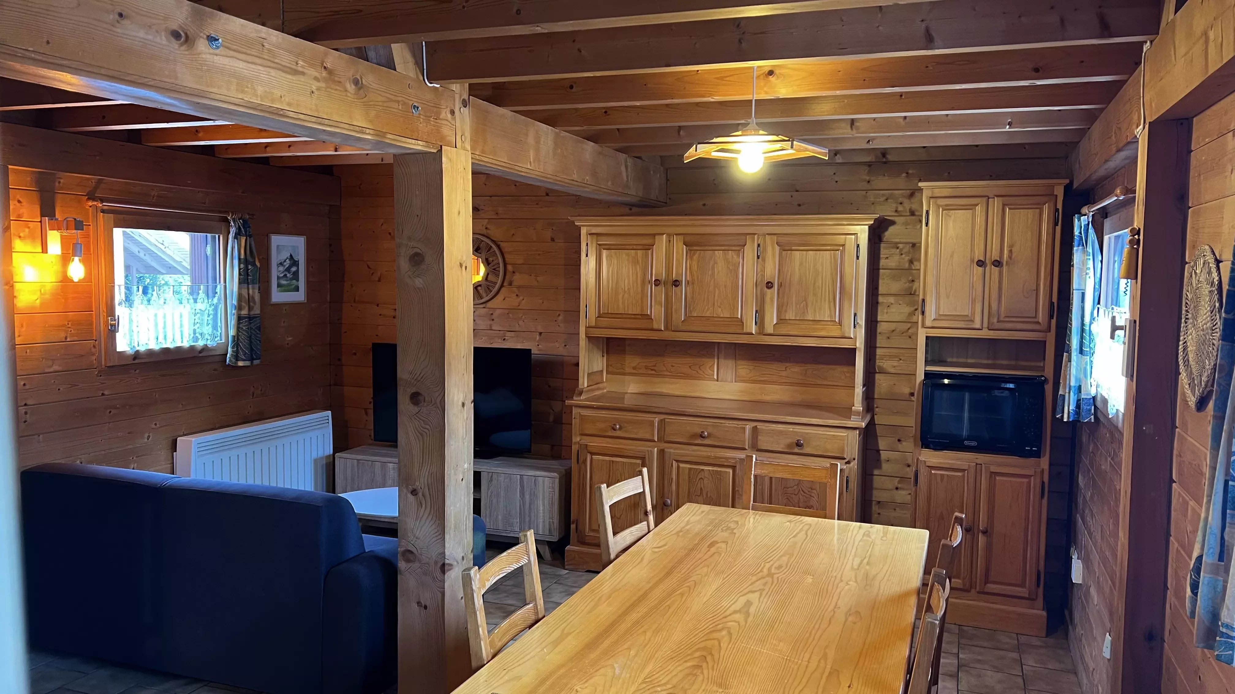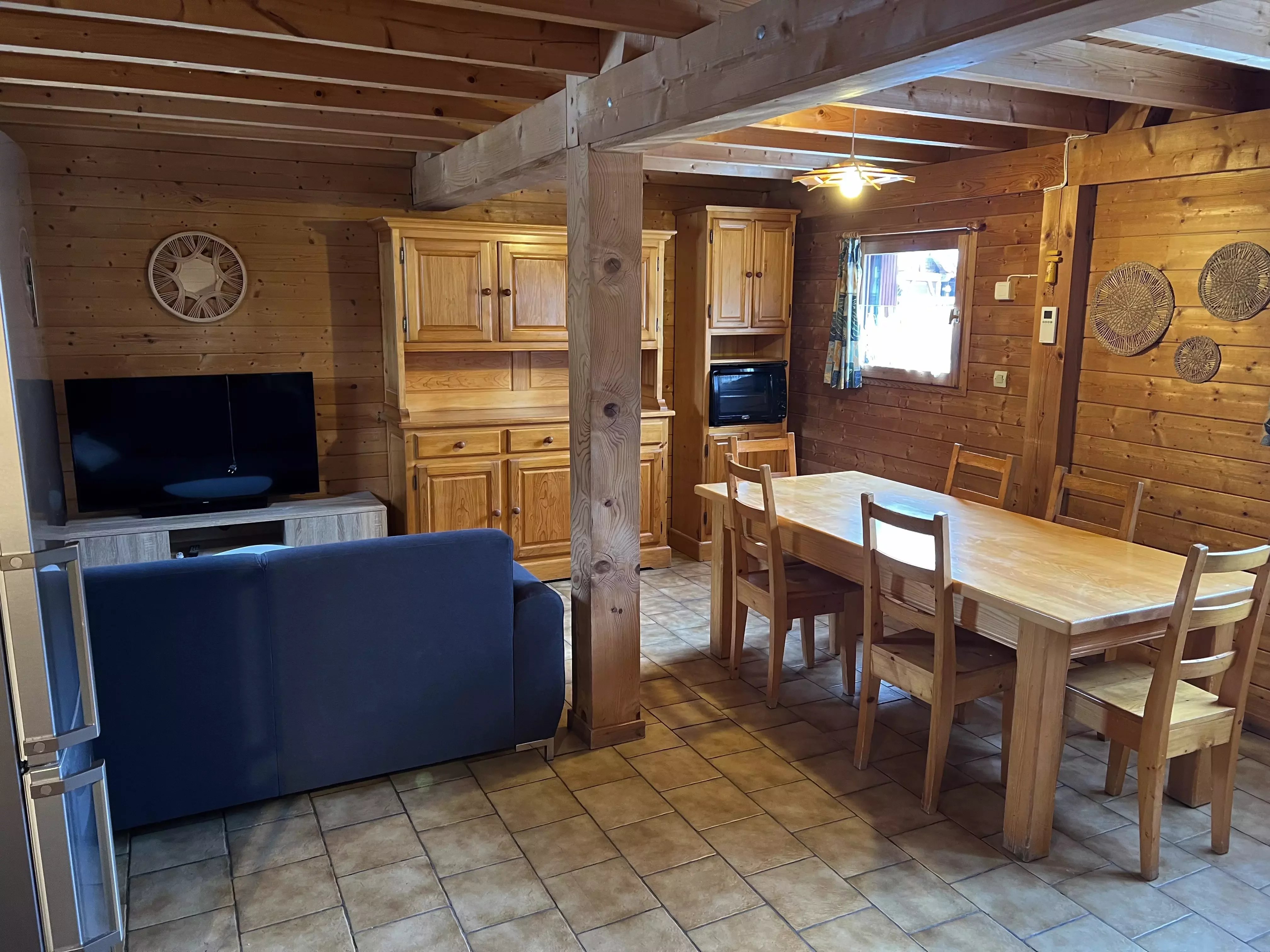 Vous êtes à la recherche d'un petit chalet comme pied à terre en montagne pour en profiter été comme hiver ? Ce chalet situé dans la résidence de tourisme des Hameaux du Giffre se trouve à deux pas du lac bleu, de la boulangerie, restaurants et quelques minutes des remontées du Grand Massif. Il dispose d'une pièce de vie ouverte spacieuse avec une kitchenette récente, une salle de bain rénovée le mois dernier, une chambre double ainsi que deux chambres à l'étage. D'une surface de 43,45m2 loi Carrez avec 27m2 supplémentaire, il est dimensionné pour accueillir confortablement des familles et propose pas mal de stockage avec 4 casier en bois à l'extérieur du chalet. Découvrez le sans tarder !