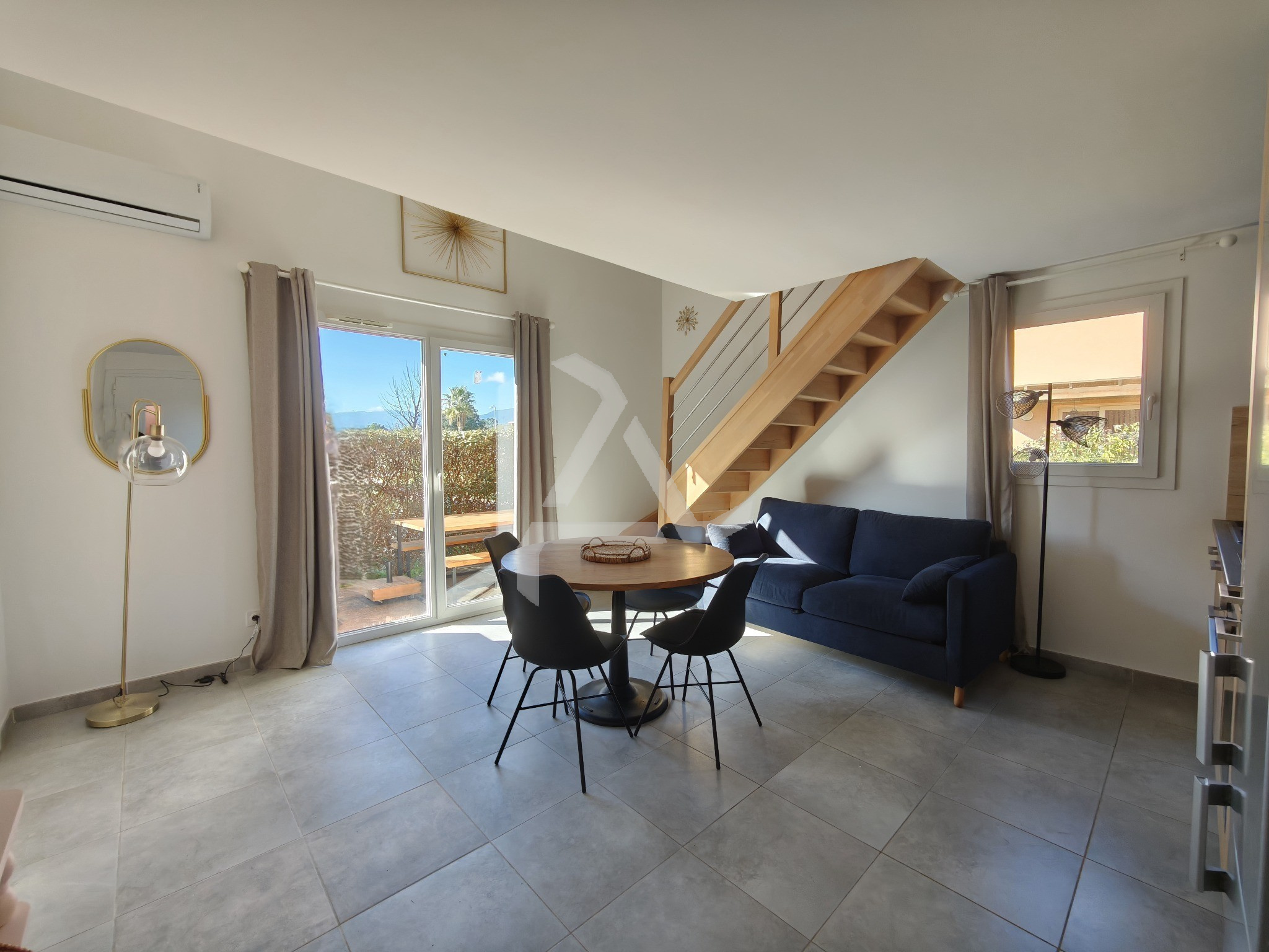 CASA CHA Immobilier® partenaire du réseau Interkab Porto-Vecchio vous propose en EXCLUSIVITÉ à moins de 5 minutes du très agréable village marin de St Cyprien et de ses plages, dans une résidence hôtelière entièrement rénovée et sécurisée, une mini villa T3 en duplex meublée et équipée à neuf et très bien située. Cette dernière profite d'une belle luminosité et d'un spacieux jardinet/terrasse de 37m2. Ce bien est destiné principalement à de la location parahotellière façon AirbnB pro. Ce prix très attractif comprend la cession des parts sociales de la société nouvellement créée par son propriétaire, le remboursement des comptes courants d'associés et les honoraires agence.