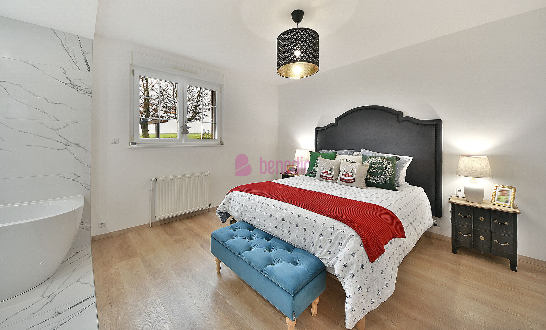 Benedic Immobilier est fier de vous présenter en exclusivité cette superbe propriété de charme située à BAZONCOURT, 10 min du Technopôle et autoroutes et 20 min de l'hyper centre de Metz. Rare sur le secteur, cette maison familiale de caractère séduit dès le premier regard. Son architecture singulière, unique dans la région, mêlant pierres naturelles, volumes généreux et une élégante tour lui confère un charme intemporel. Implantée sur un magnifique écrin de 3190m2 en partie constructible, la maison offre un cadre de vie privilégié, verdoyant et paisible. Une piscine couverte et chauffée complète harmonieusement l'ensemble, permettant d'en profiter la majeure partie de l'année. Entièrement rénovée avec des matériaux de qualité et dans le souci du détail, cette demeure allie le cachet de l'ancien au confort moderne. Chaleureuse, lumineuse et parfaitement entretenue, elle est clé en main et vous offre : - au RDC, un très bel espace de vie composé d'un vaste salon-séjour de plus de 50m2 avec rotonde et cheminée, une cuisine spacieuse et de belle qualité et suite parentale avec salle de bain privative au design contemporain - à l'étage, deux chambres, un dressing, une salle d'eau et un élégant bureau sublimé par la charpente apparente de la tour En annexes, vous disposerez notamment d'un shoesing / buanderie / cellier et d'un vaste garage. La maison bénéficie de prestations techniques modernes, garantissant un confort thermique à l'année grâce à sa pompe à chaleur pour le chauffage central et la climatisation. La décoration est soignée, les finitions irréprochables, l'ensemble dégage une atmosphère chaleureuse et raffinée. Il me tarde de vous faire découvrir ce bien coup de coeur, idéal pour les amateurs de calme recherchant une propriété unique à quelques minutes des commodités. A très bientôt, Jean-Pierre (4.98 % honoraires TTC à la charge de l'acquéreur.) Jean-Pierre FISCHER (EI) Agent Commercial - Numéro RSAC : - .
