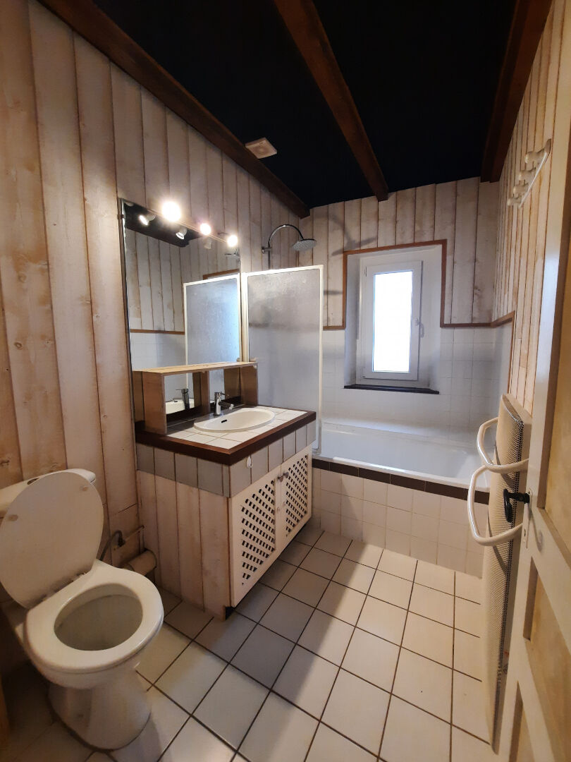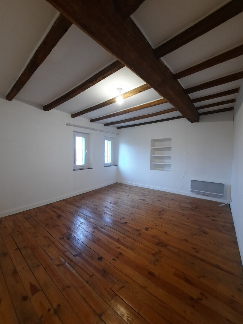 Maison de ville de 101 m² avec terrain clos de 50 m² environ. Cuisine aménagée ouverte sur le séjour de 45 m² avec cheminée, 2 chambres, salle de bains avec WC, grand garage/cuvage. A découvrir ! Disponible le 08 avril 2026.