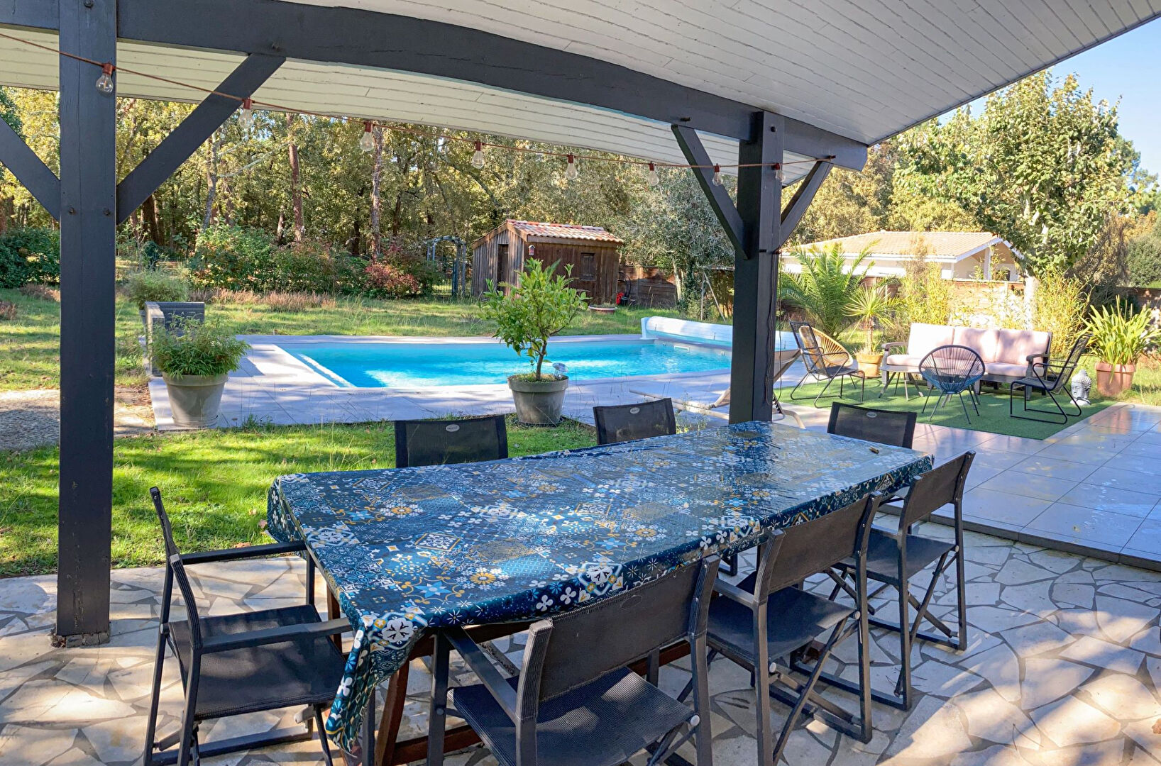 Maison de type 6 dans un secteur ultra calme au bord de la forêt, Accès forêt. Proche des écoles, et de la gare. Villa composée en rez de chaussée, un salon/salle à manger, un WC, un salon, une cuisine, une buanderie et à l'étage 4 chambres, une salle de bain avec un WC et une suite parentale avec WC. Parcelle de plus de 1 150 m². Une piscine de 8x4 chauffée compléte le bien. Mandat 2569. (3.96 % honoraires TTC à la charge de l'acquéreur.)