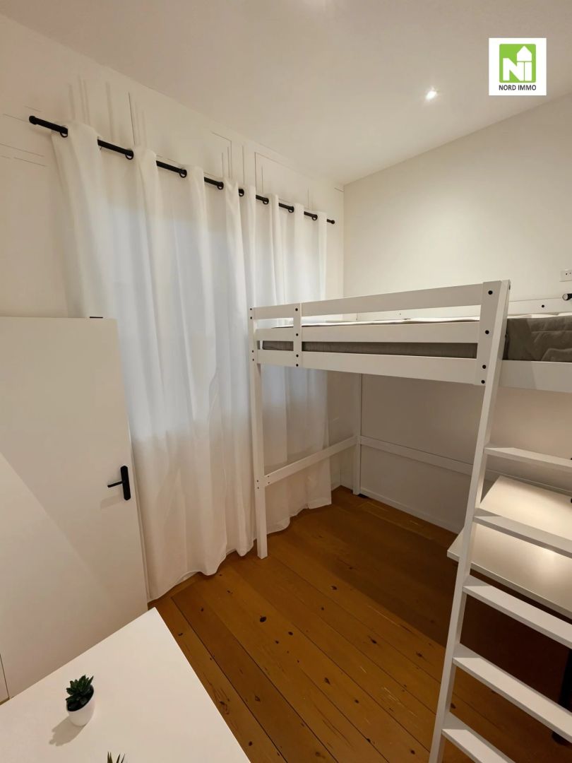 Appartement T3 - 60m2 - Nord Immo vous propose à la vente en exclusivité cet appartement idéalement située rue de la Digue à Lille, à proximité direct des écoles de la Citadelle et du centre de Lille. Lappartement situé en rez de chaussée dune petite copropriété se compose dune belle pièce de vie lumineuse avec parquet ancien, cheminée , moulures, une cuisine équipée séparée (plaques de cuisson, hotte, four). Deux chambres, ou possibilité de créer une seul grande chambre, une salle de bain (double vasque, douche, WC, sèche serviette) Pour les amoureux du charme de lancien. Hauteur sous plafond 3m60. Idéal étudiants / Investissement locatif Syndic Bénévole Charge de copropriété 80 euros / mois (eau inclus) (3.04 % honoraires TTC à la charge de l'acquéreur.)