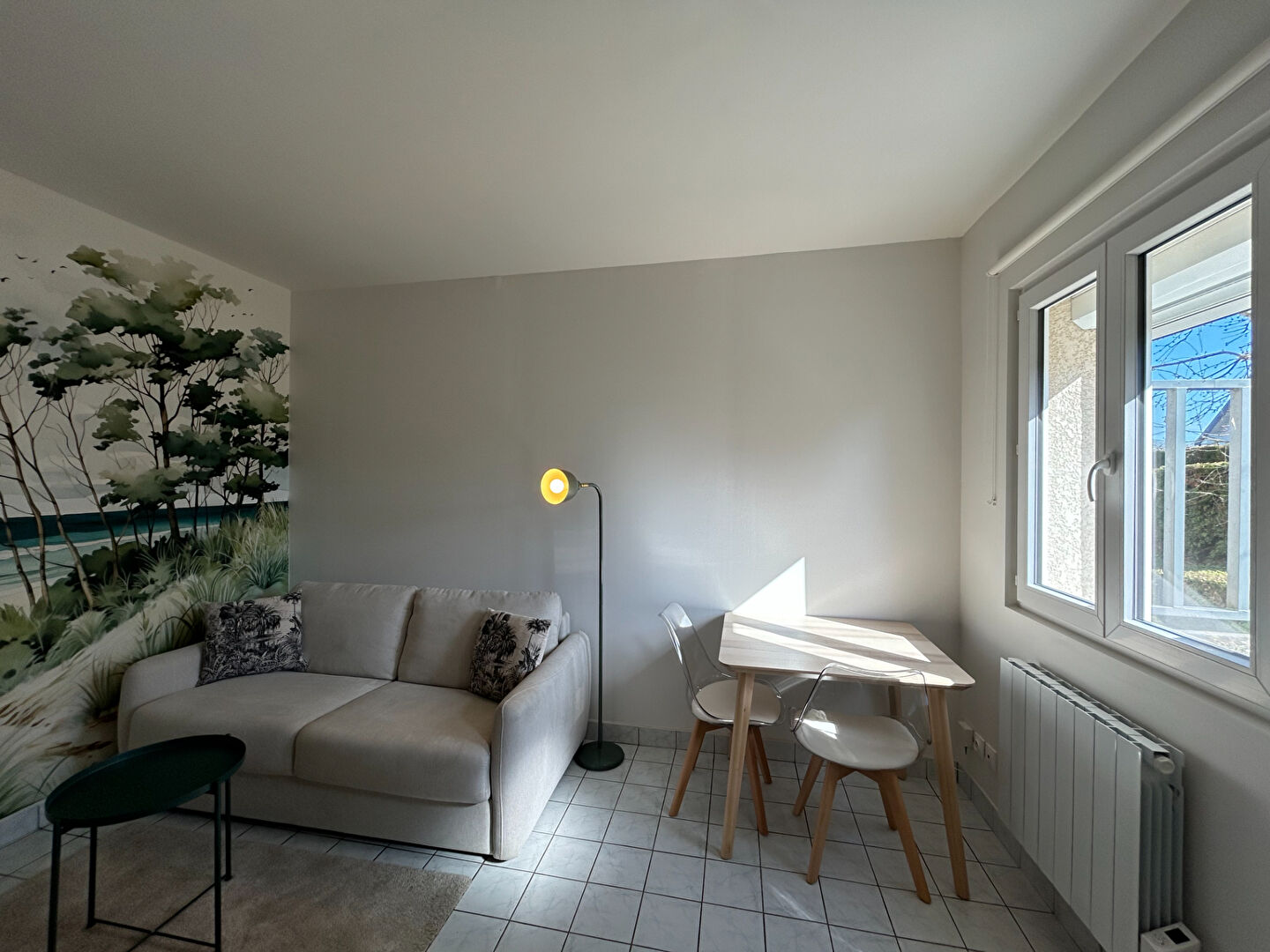 A proximité immédiate de Reims, dans le village de Taissy, au rez-de-chaussée d'une petite copropriété, venez découvrir ce studio entièrement meublé. Il se compose d'un séjour / pièce de vie lumineux avec rangements, d'un coin cuisine aménagé et équipé, ainsi que d'une salle de douche avec WC. Une petite cour privative et une place de stationnement aérienne viennent compléter ce bien. Chauffage et eau chaude individuels électriques - Fenêtres PVC double vitrage. Disponible de suite. Taissy - 62 rue de Sillery