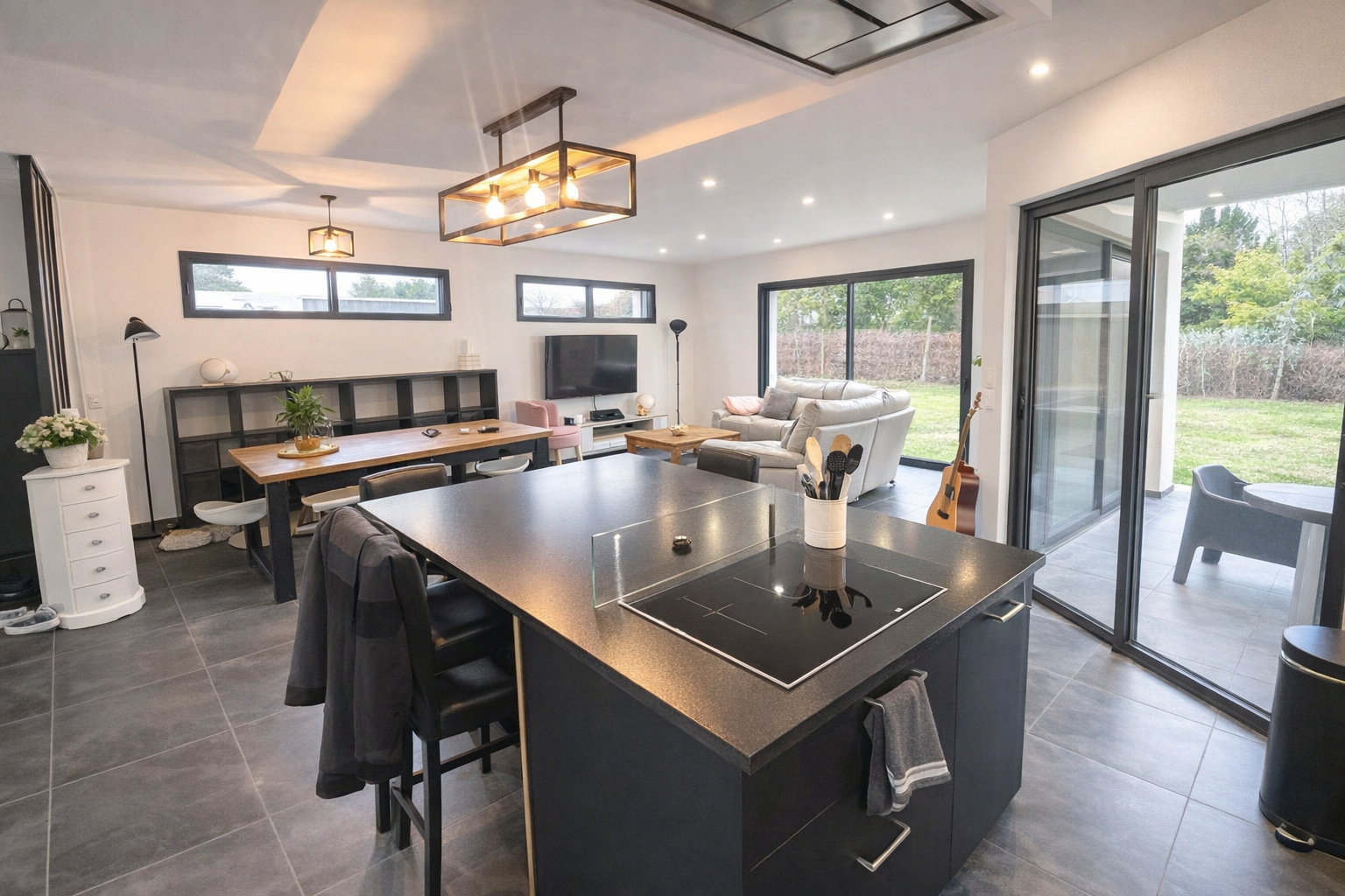 NOUVEAUTÉ DONZACQ IMMO. A seulement 2 minutes de l'entrée de Capbreton, sur la commune recherchée de Bénesse-Maremne, venez découvrir cette superbe villa contemporaine de 2023, d'une surface de 116 m² habitables, réalisée avec soin par des artisans locaux et vendue clé en main. Dès l'entrée, vous serez séduit par une magnifique pièce de vie de 55 m², baignée de lumière grâce à ses larges baies vitrées, sublimée par une cuisine moderne et high-tech, idéale pour recevoir. La partie nuit se compose de 3 chambres, dont une suite parentale avec salle d'eau privative, WC et dressing, ainsi qu'une seconde salle d'eau, un WC indépendant et un cellier fonctionnel. Côté confort, la maison bénéficie de prestations de qualité : chauffage au sol électrique, climatisation réversible, et une excellente performance énergétique (DPE A / A). Un double garage isolé de 36 m², attenant à la maison, offre un fort potentiel d'aménagement en studio indépendant (arrivées prévues). Implantée sur une parcelle plate, cette villa permet l'installation d'un couloir de nage, très en vogue, pour un cadre de vie résolument moderne et élégant. Commerces et l'entrée de l'autoroute à proximité. Un bien rare sur le secteur, à découvrir sans tarder. Honoraires à la charge de l'acquéreur : 4,93 % (4.93 % honoraires TTC à la charge de l'acquéreur.)